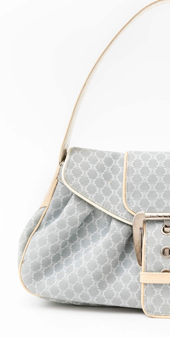 - This spacious Celine triomphe shoulder bag is the perfect piece to wear everyday! She'll match with your fave pair of denim jeans and can fit all of your essentials including phone, key, wallet, sunnies, lippie, and way more!