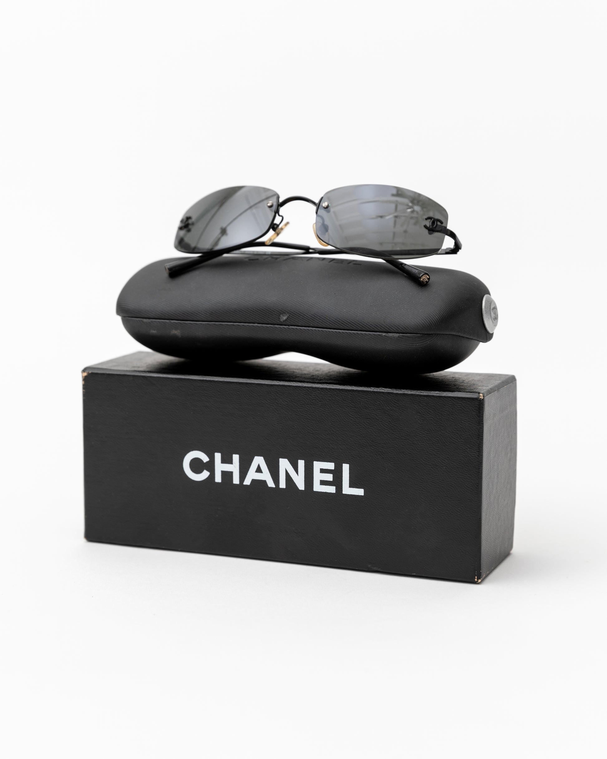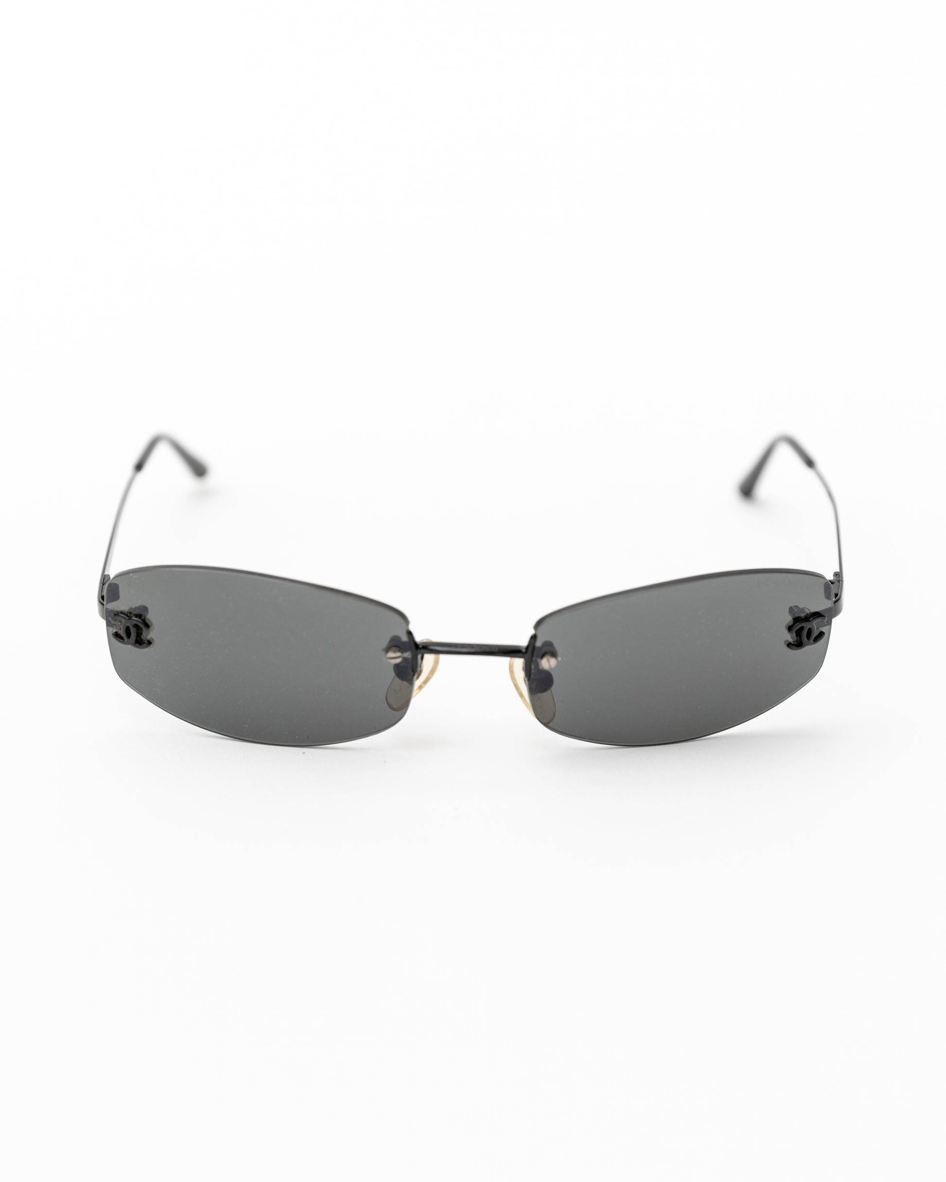 - This rare pair of sunnies is seen on Bella Hadid and Kendall Jenner. It features black lenses and frames with CC logo on the sides.