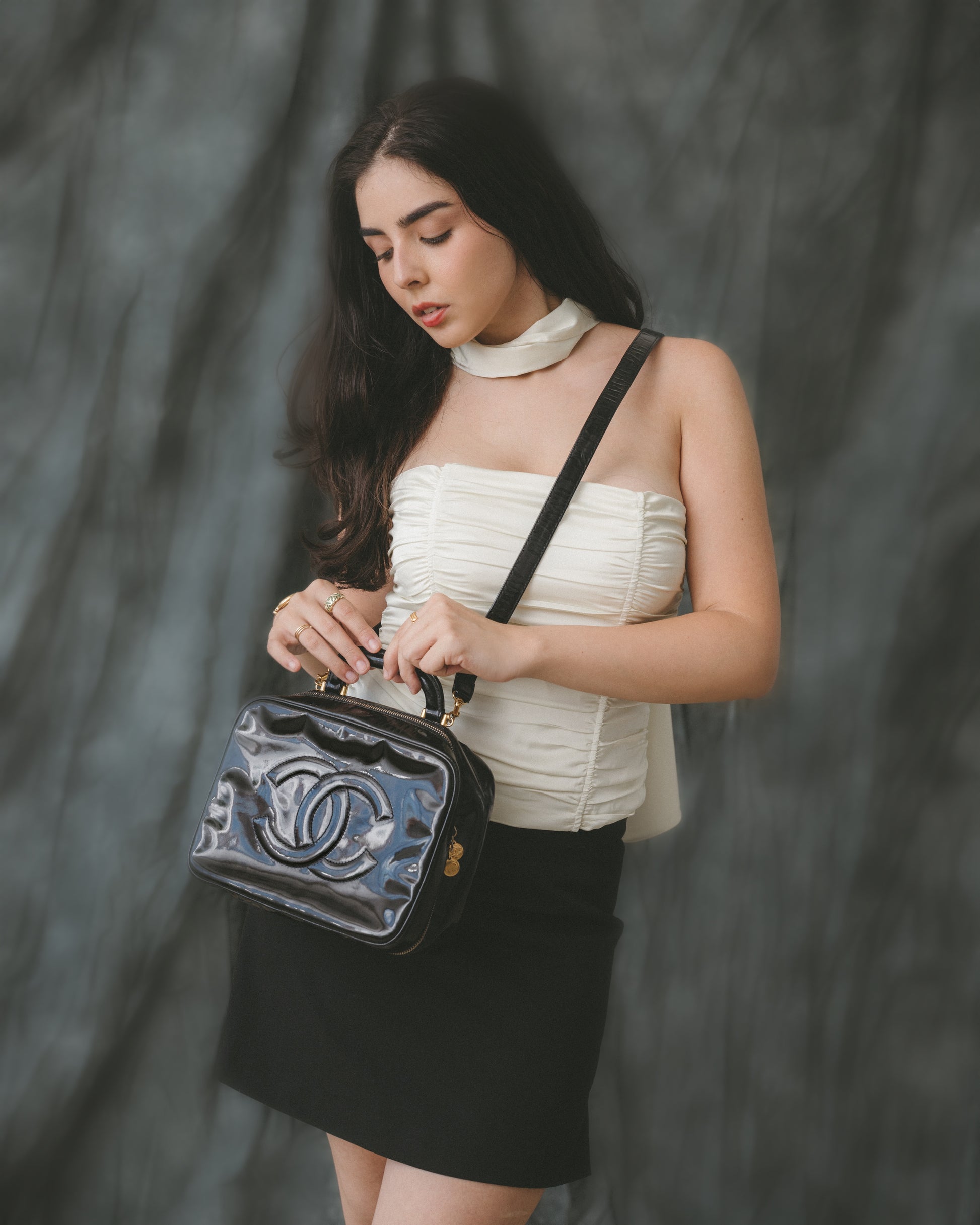 - This it girl approved bag is from 1997! Features the Chanel logo stitching on the front and the most stunning 24k gold Chanel CC charms on the zipper pull. The bag also has its original crossbody strap which allows you to wear it multiple ways.