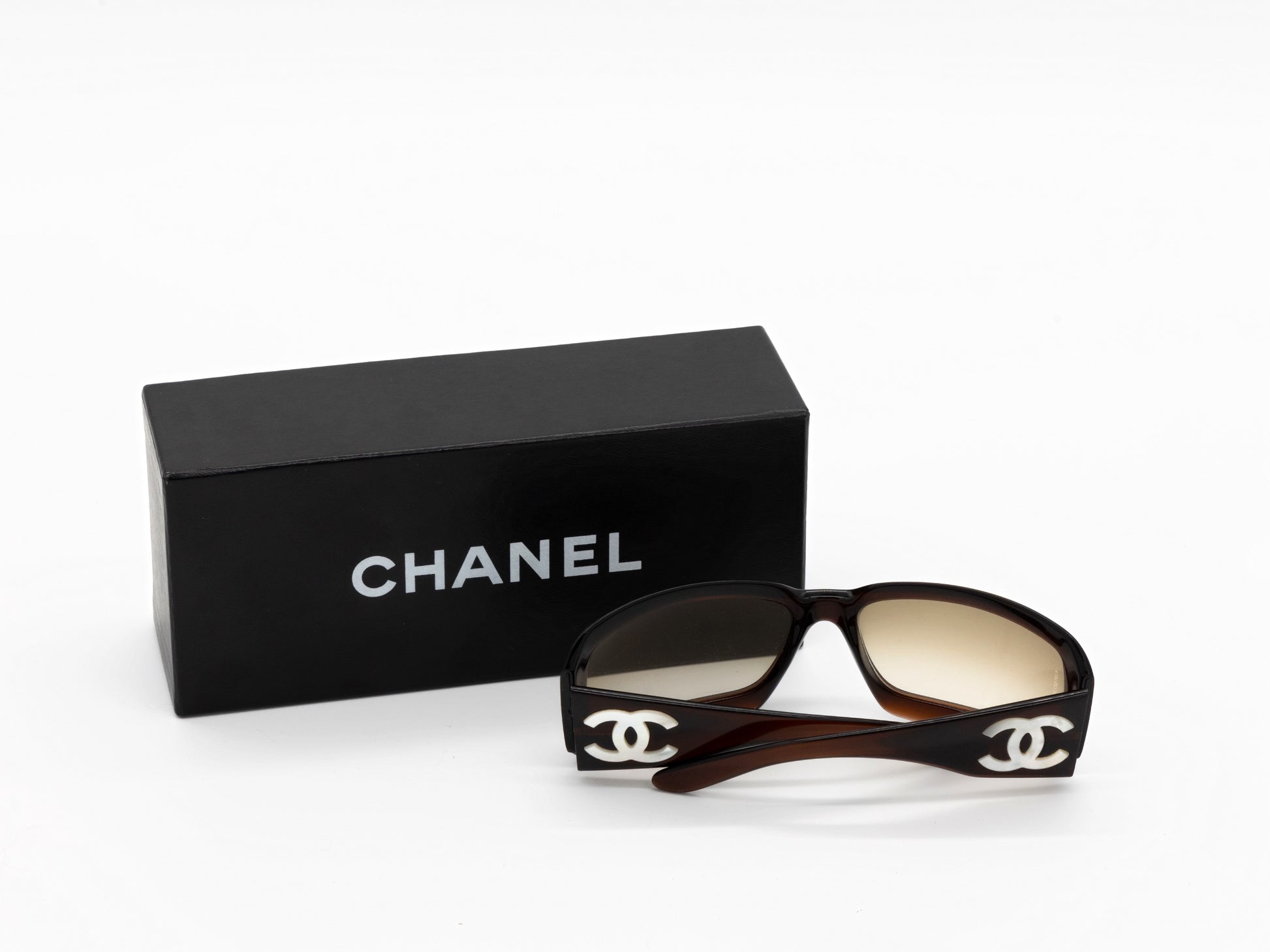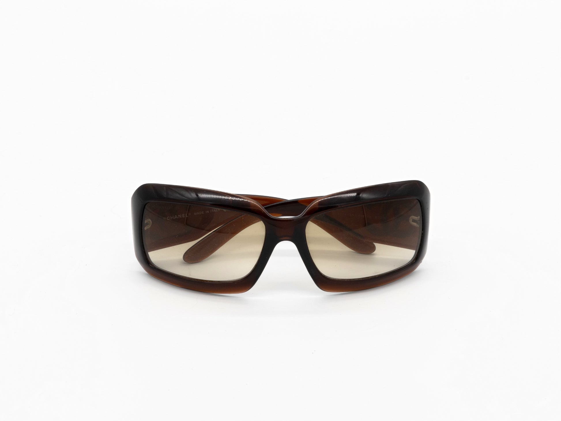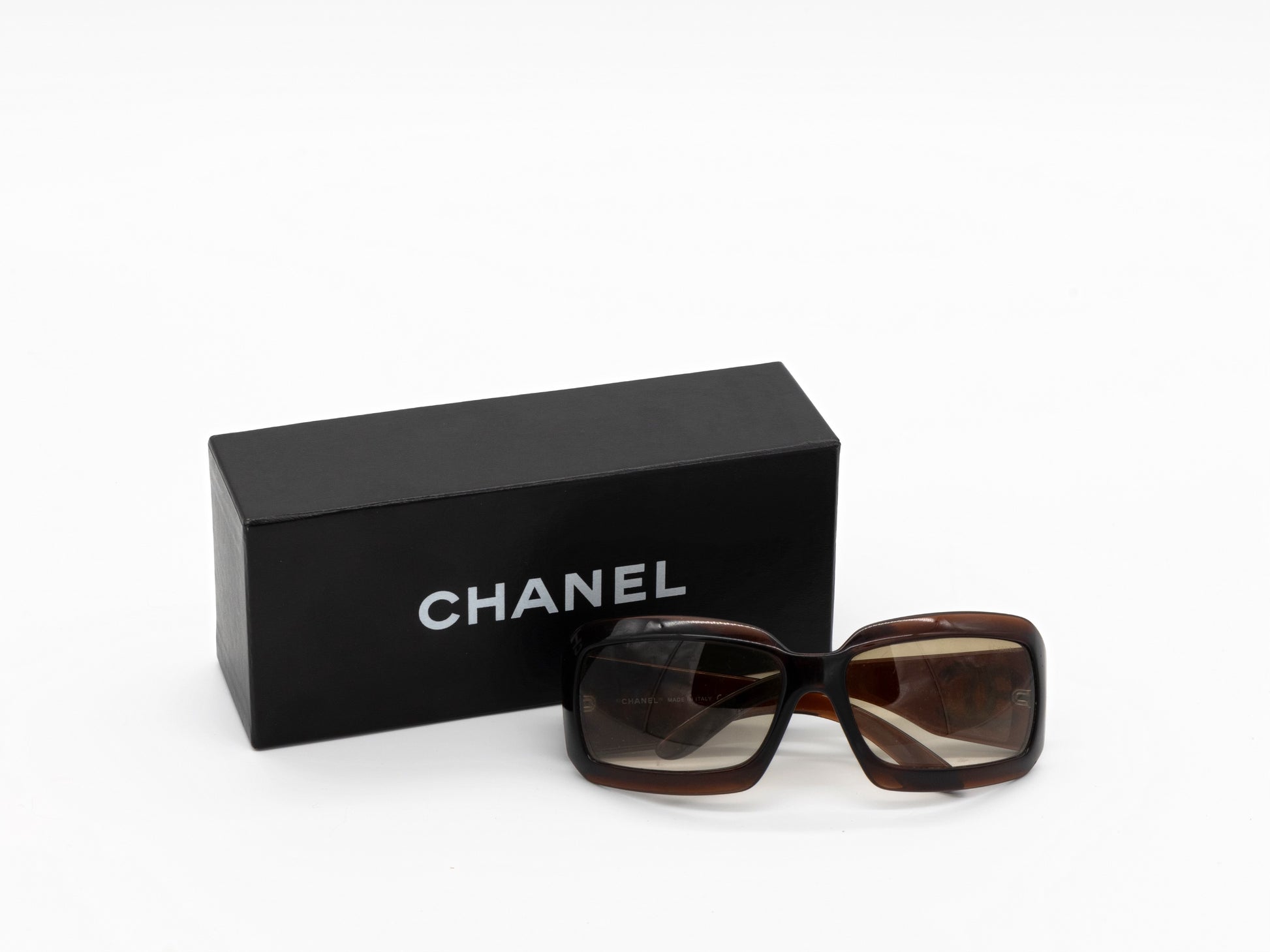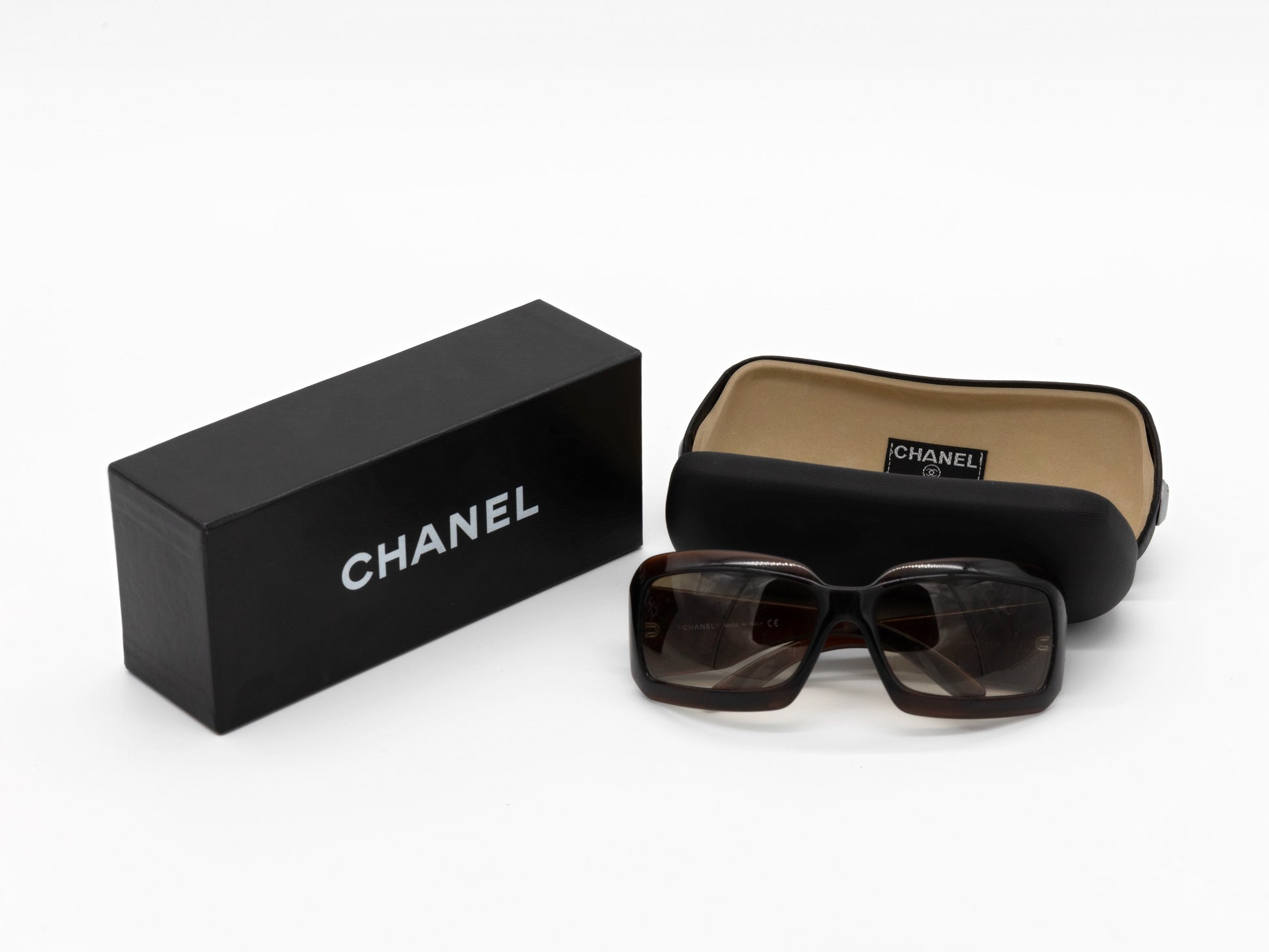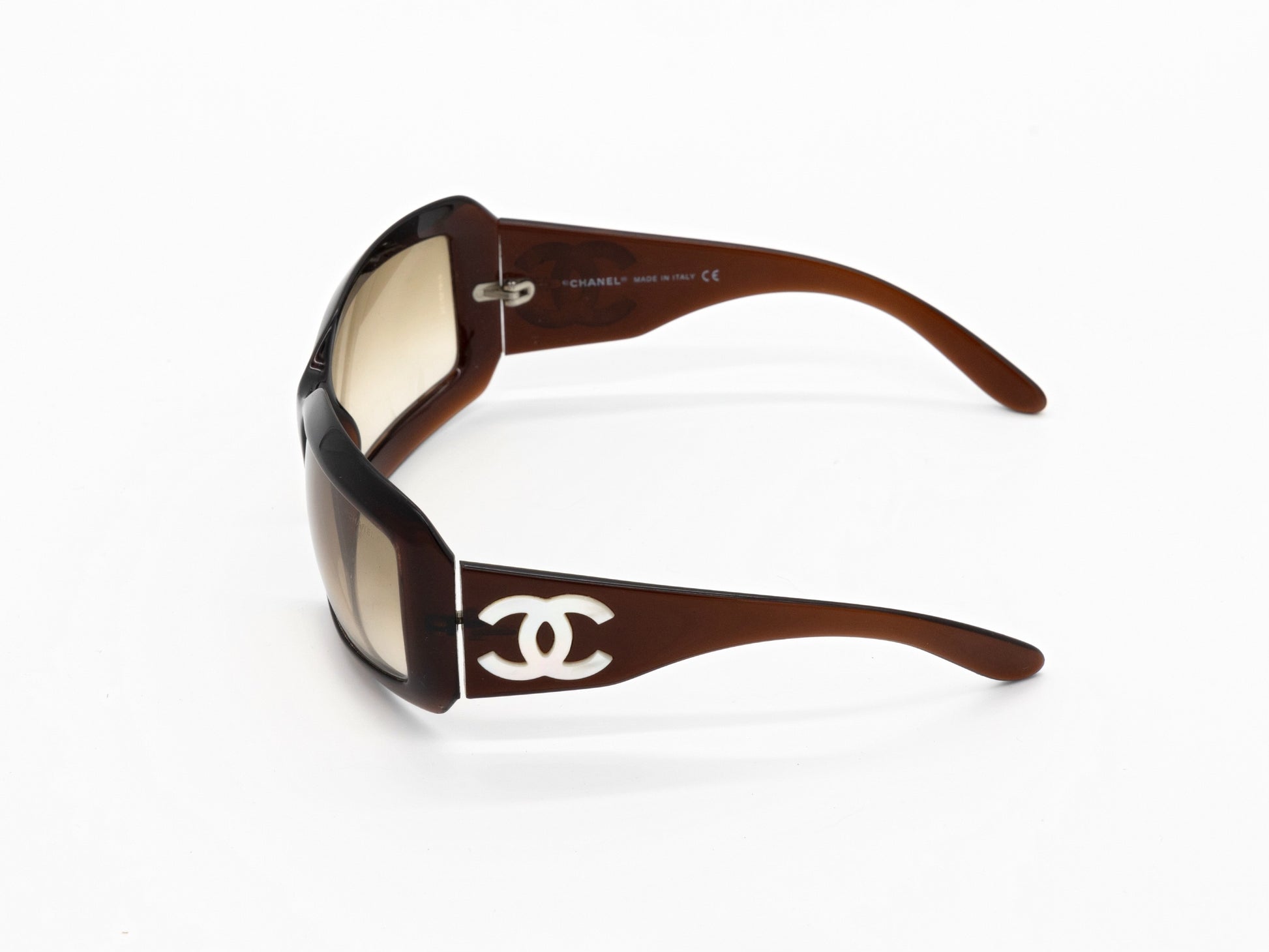 - Brown frames and lenses with stunning freshwater pearl CC detailing on sides.