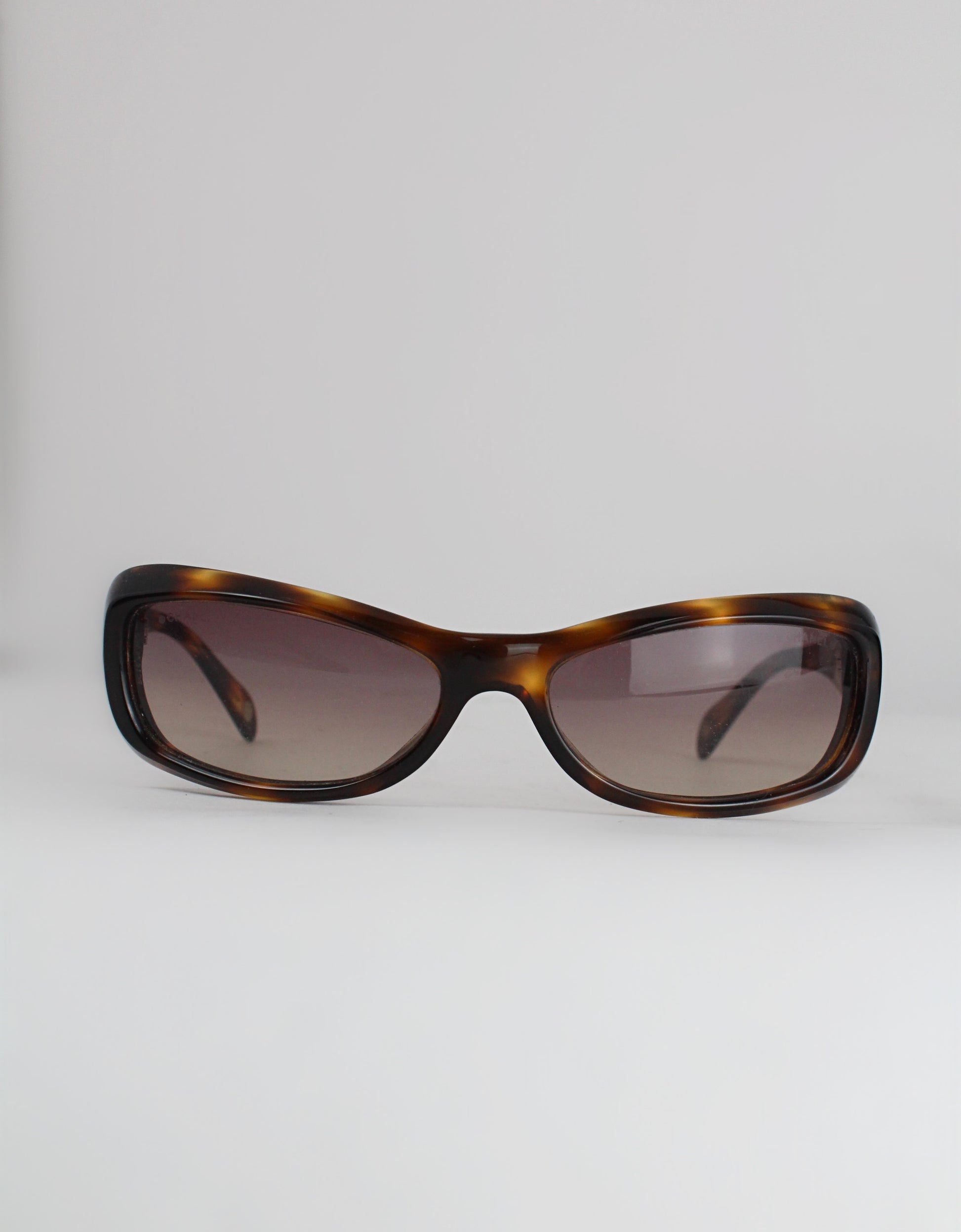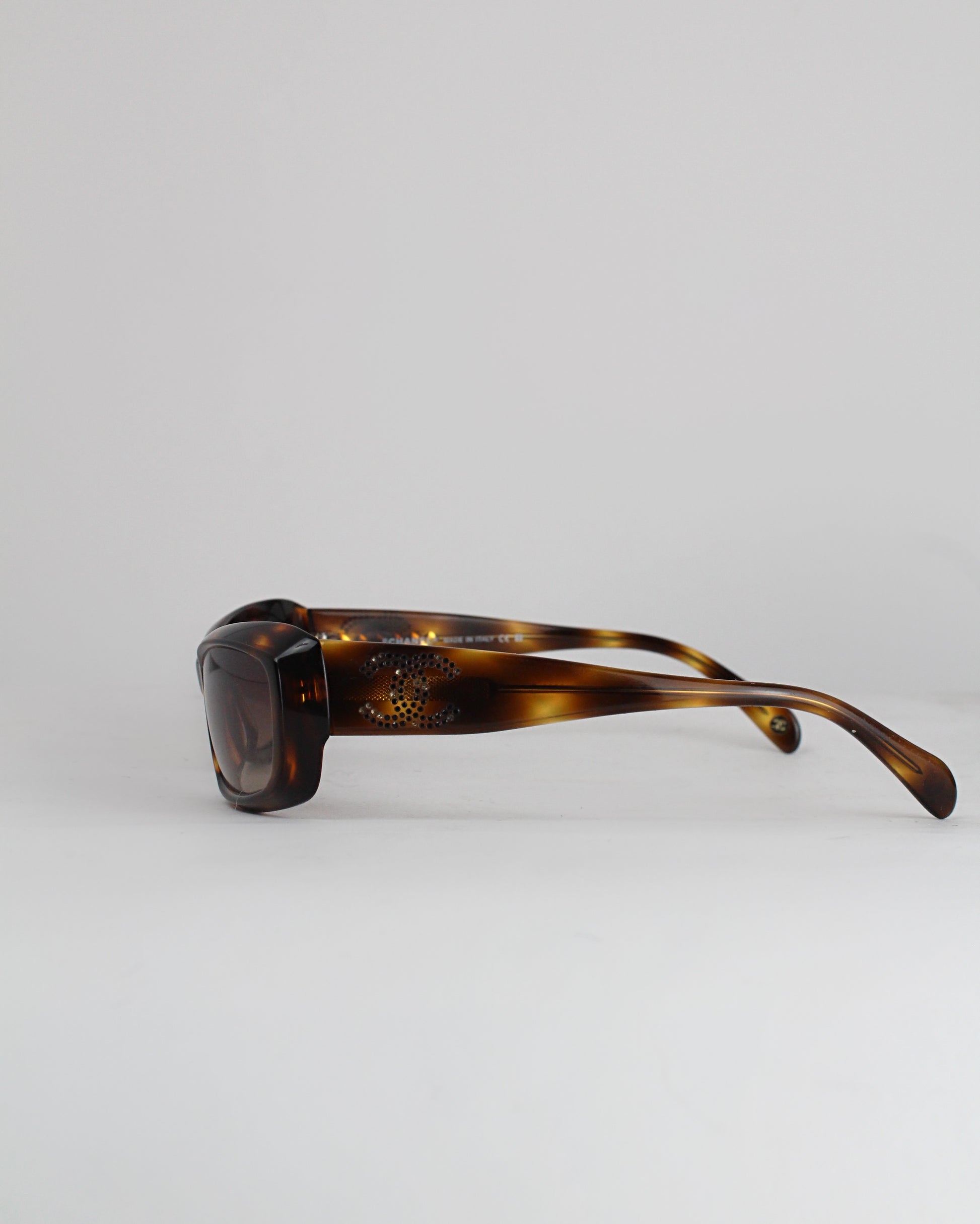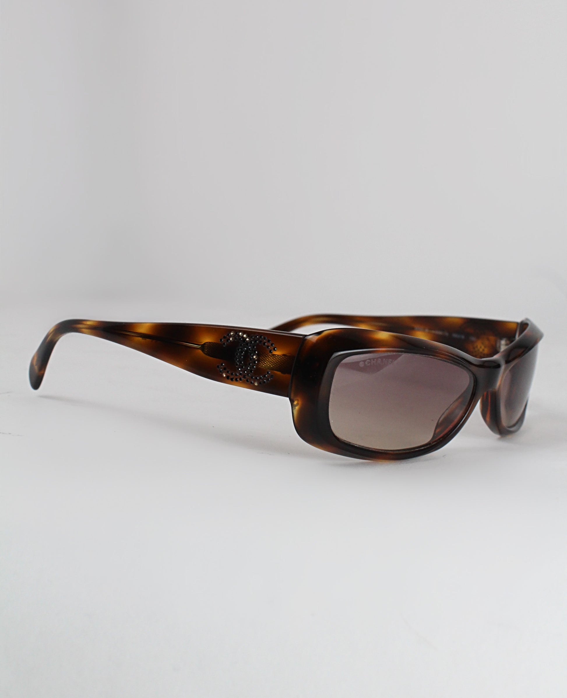 - Brown tortoise frames and lenses with black rhinestone detailing on sides!