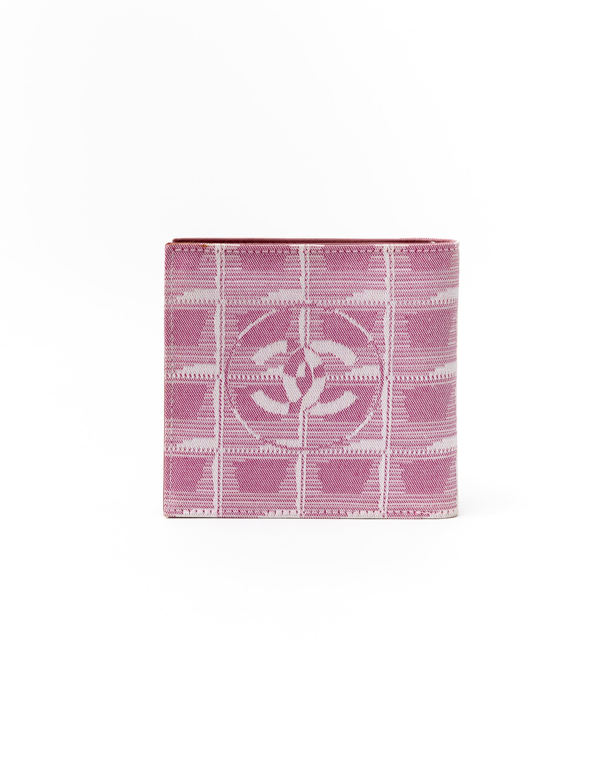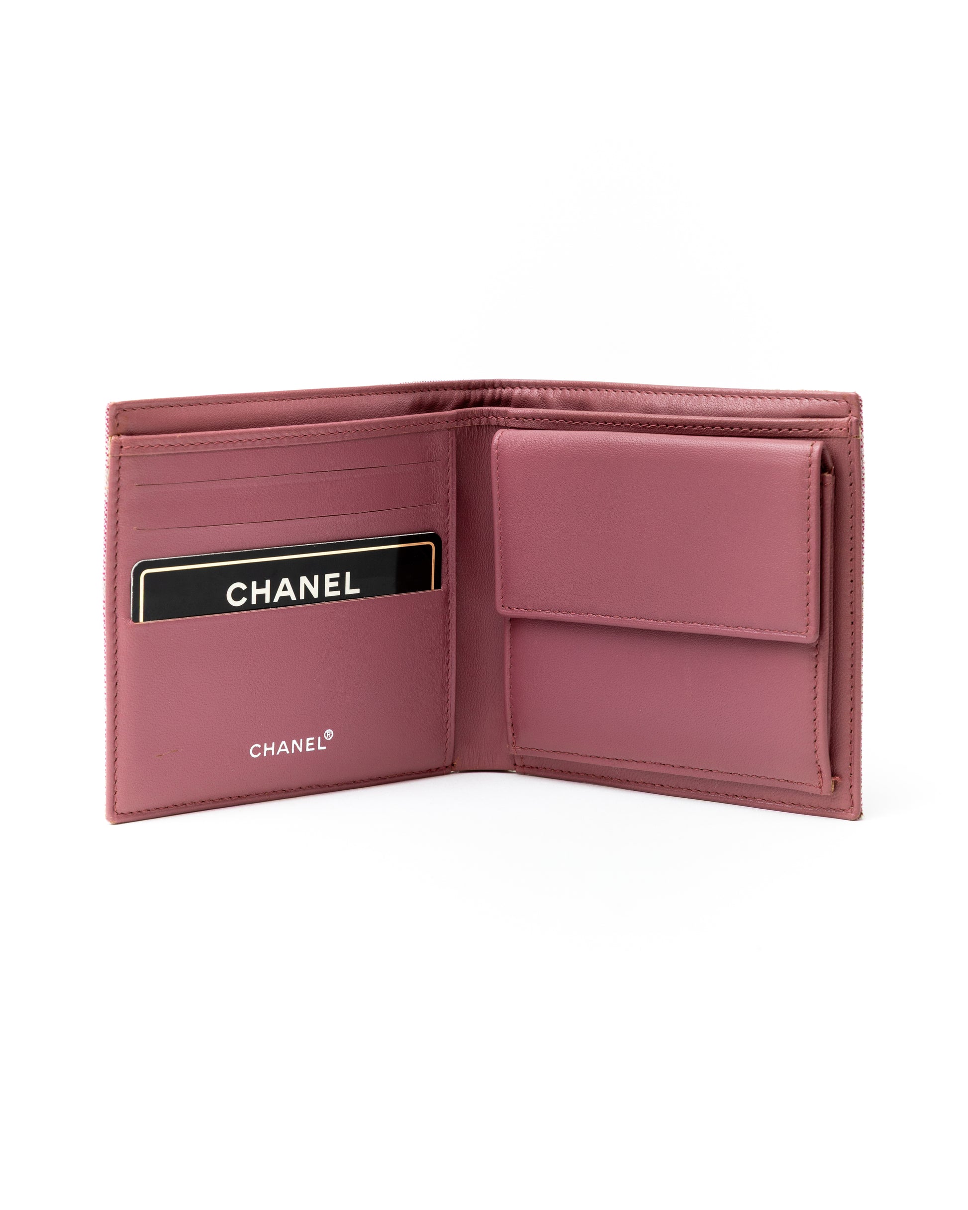 - Bi-fold Chanel wallet in a stunning pink canvas print with a beautiful lambskin leather interior.