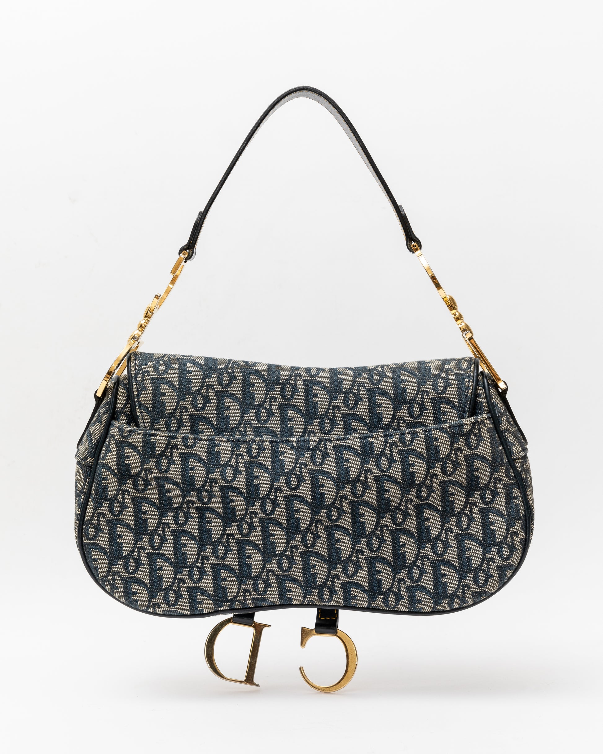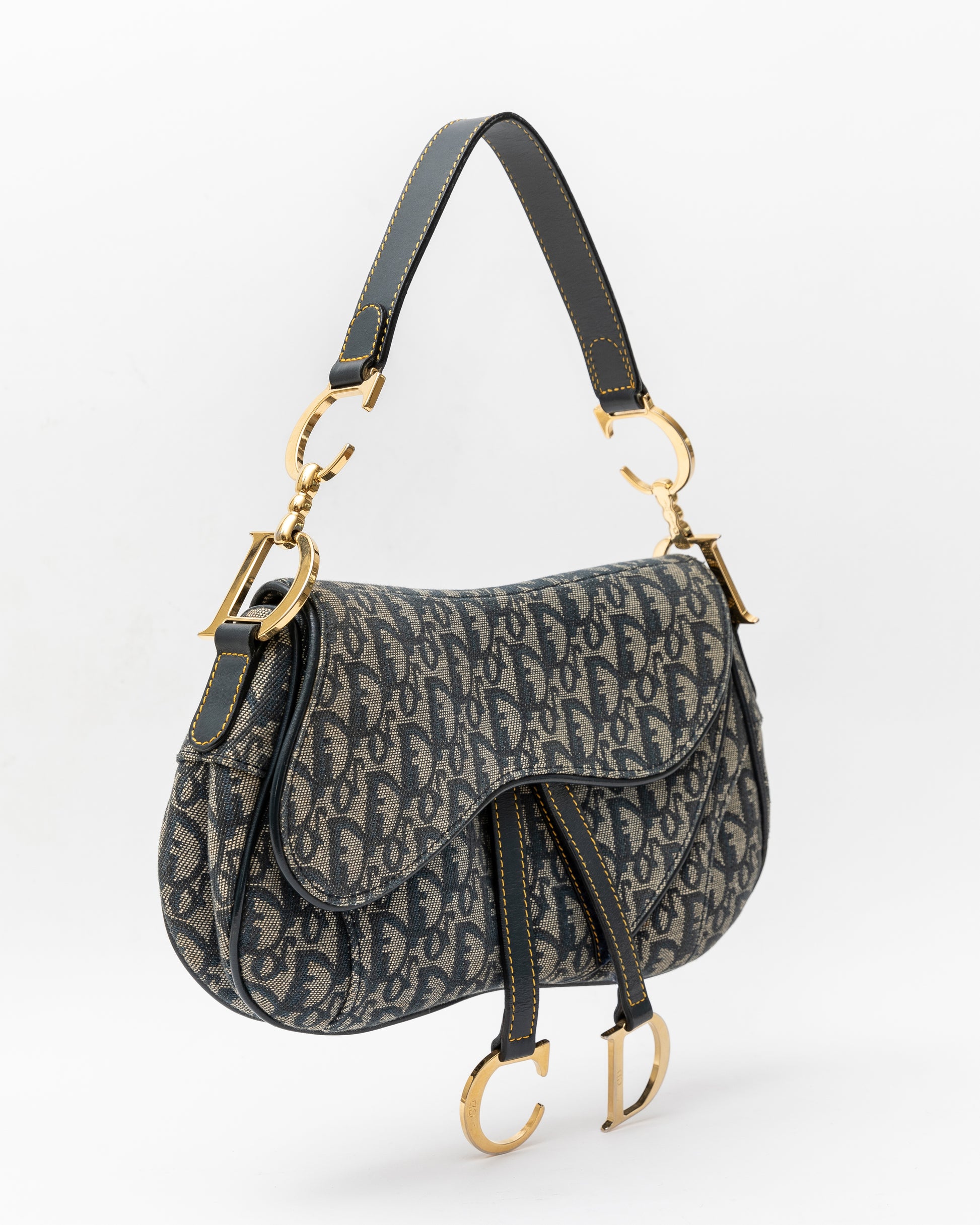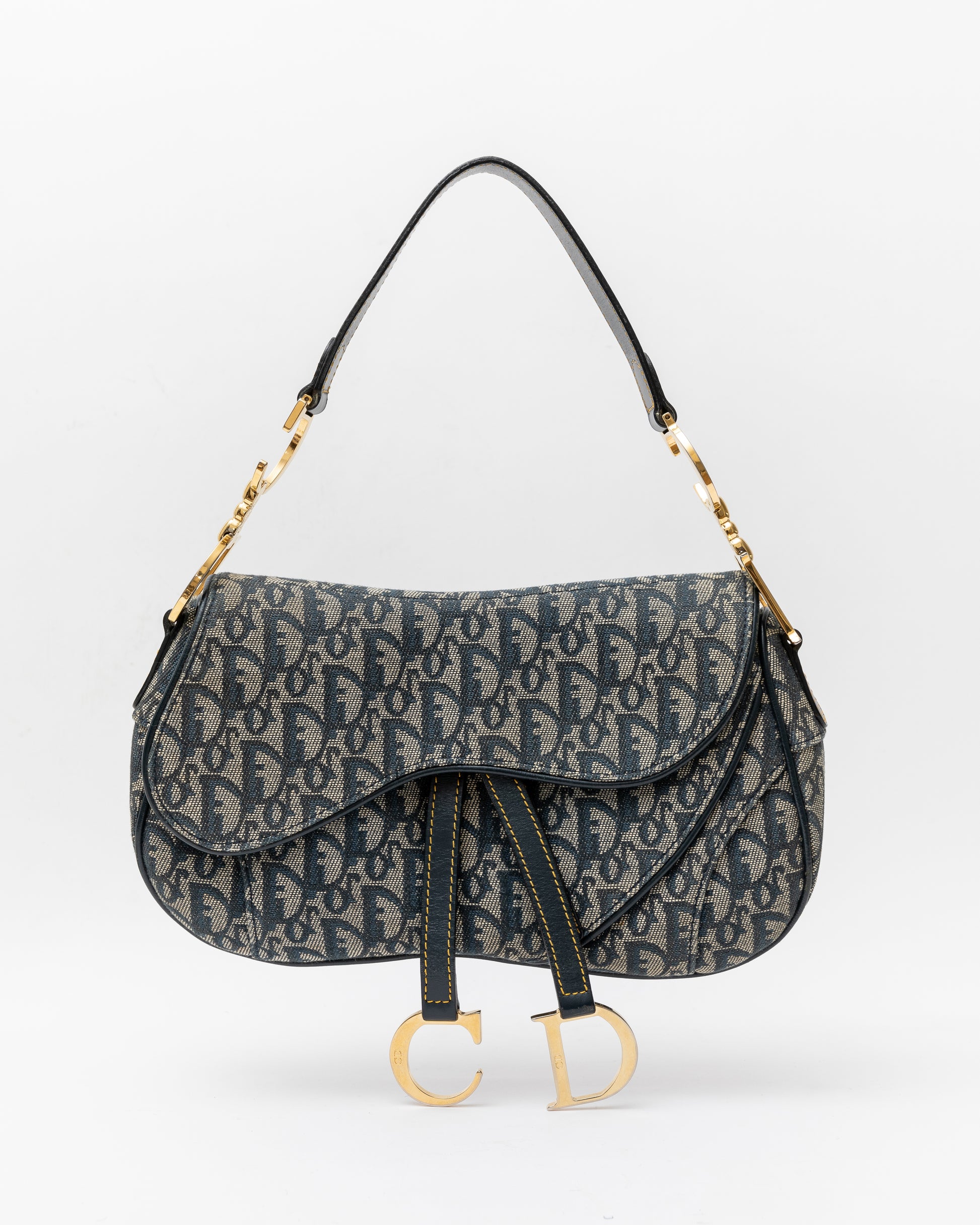 - FINALLY bringing the iconic and classic Dior DOUBLE saddle bag to the shop. Oblique Trotter canvas mixed with gold hardware makes this an extremely rare find. This Carrie Bradshaw approved staple also features a spacious nylon interior with zippered pocket which allows for easy cleaning if needed.