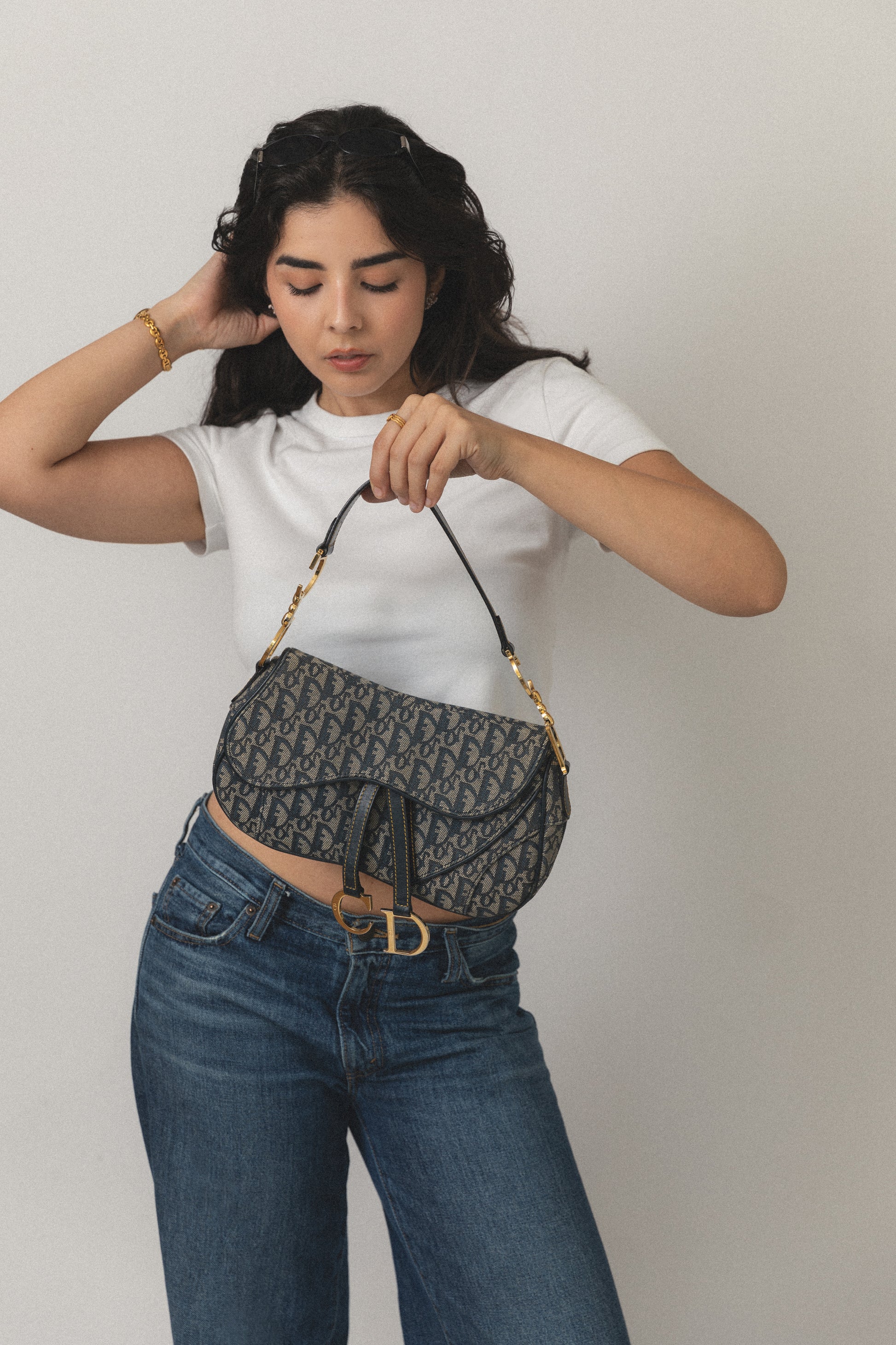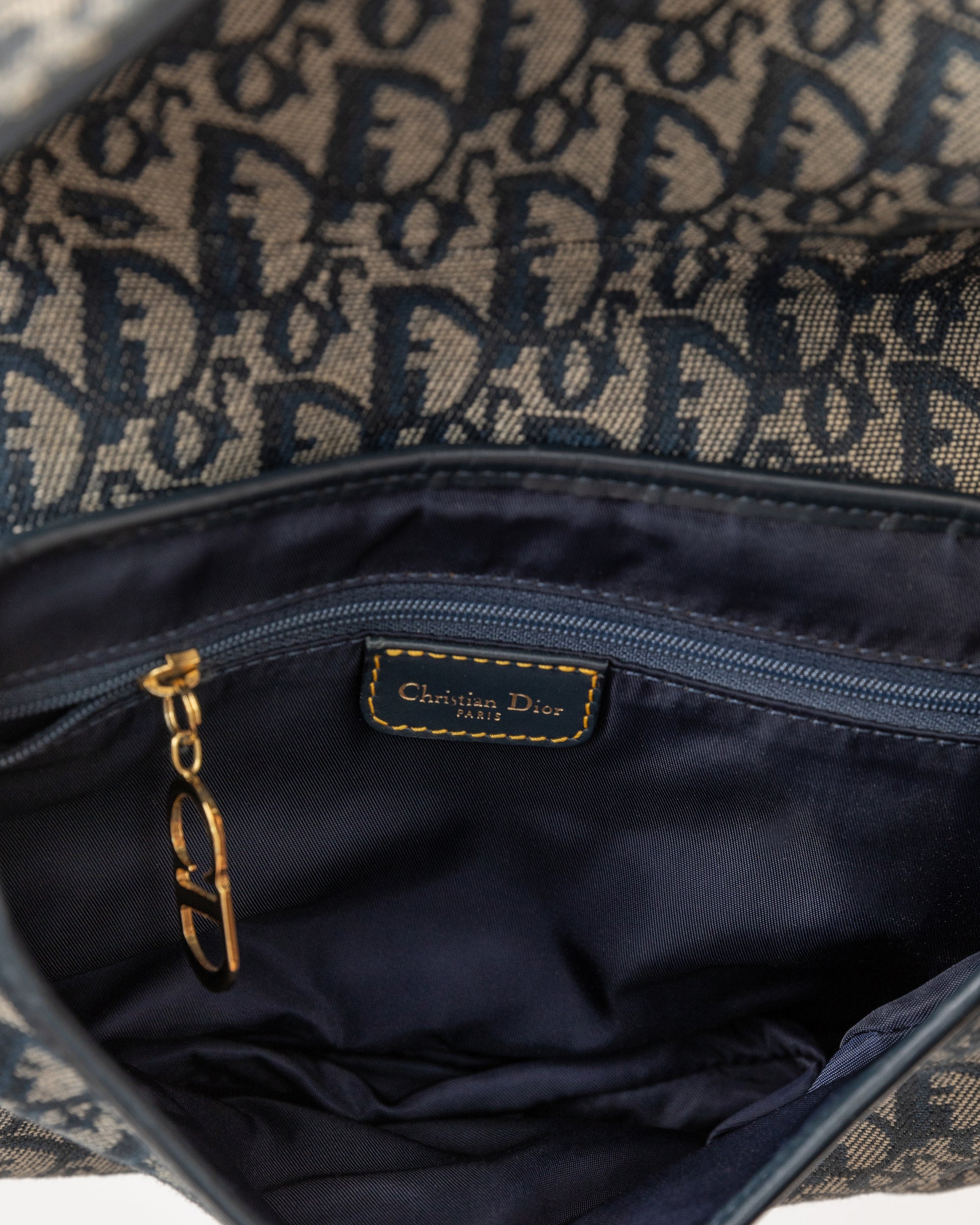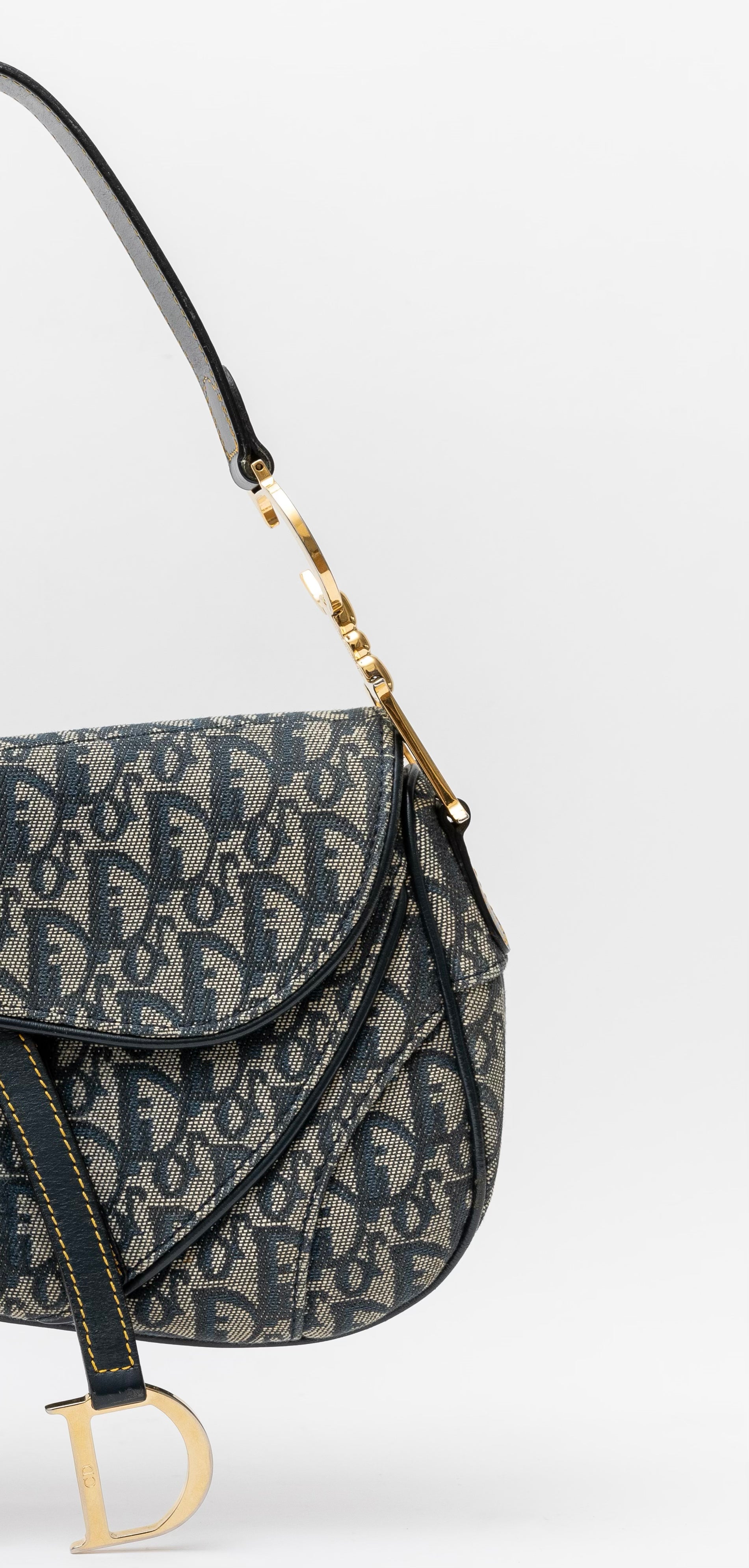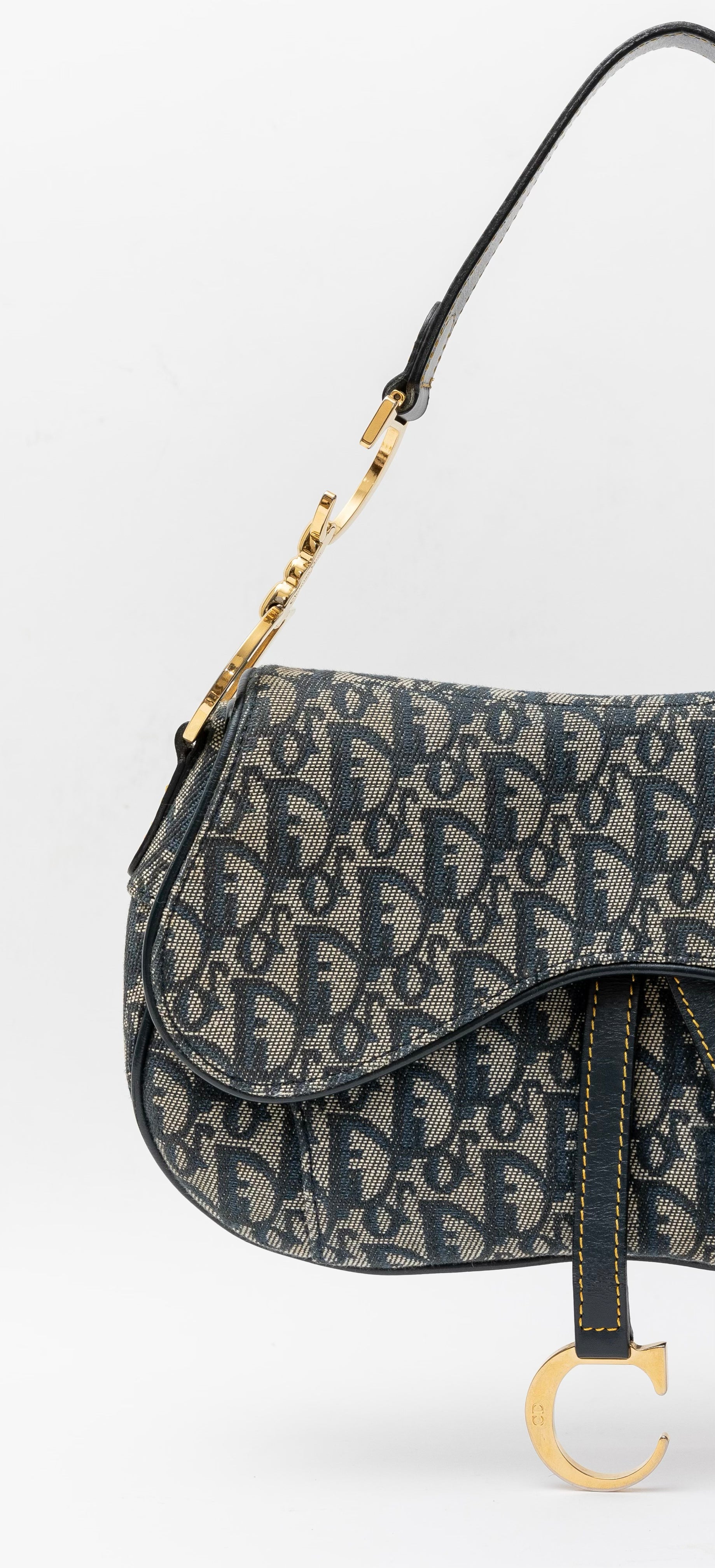 - FINALLY bringing the iconic and classic Dior DOUBLE saddle bag to the shop. Oblique Trotter canvas mixed with gold hardware makes this an extremely rare find. This Carrie Bradshaw approved staple also features a spacious nylon interior with zippered pocket which allows for easy cleaning if needed.