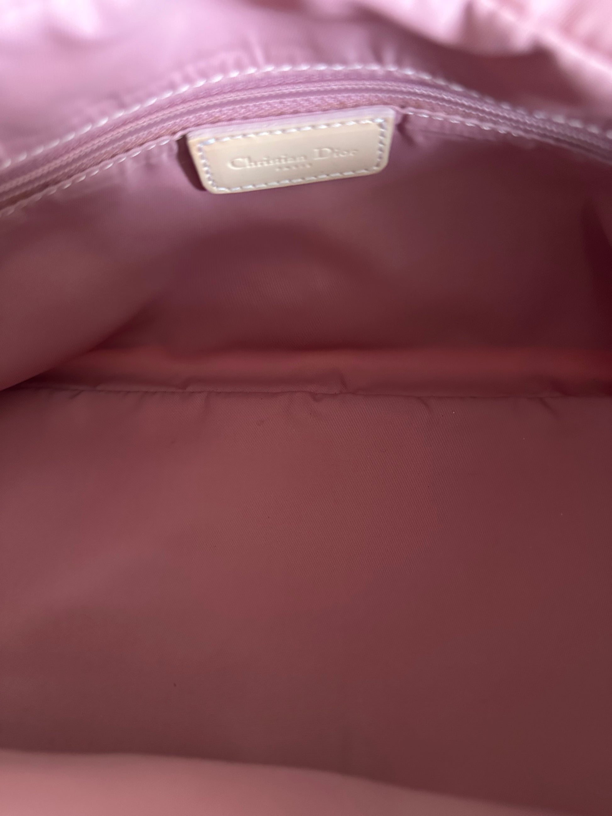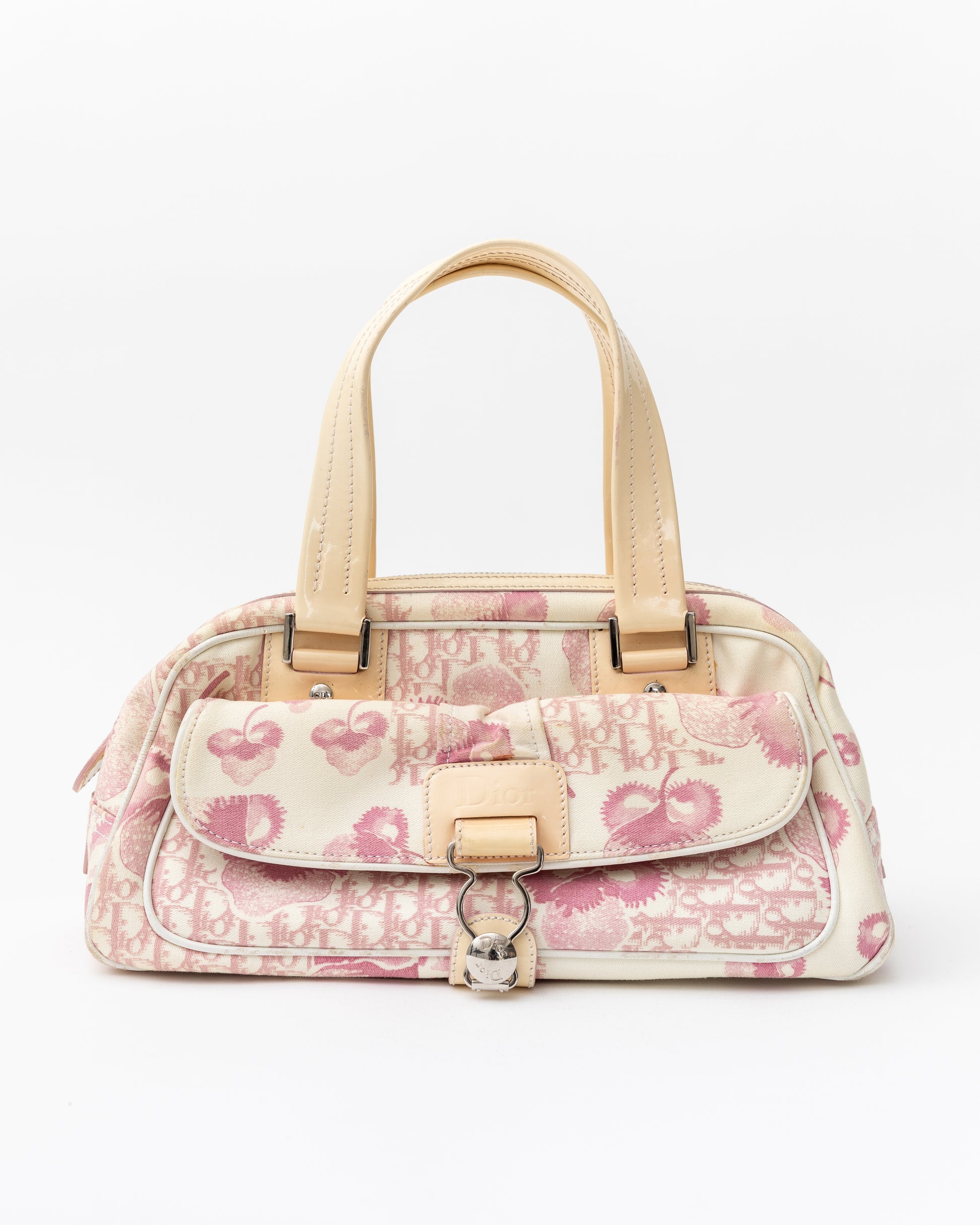 - This extremely rare bag from the girly collection features pink Dior monogram with cream patent leather trimming. What makes her unique is the ultra rare floral accents which were only designed on a limited amount of bags.