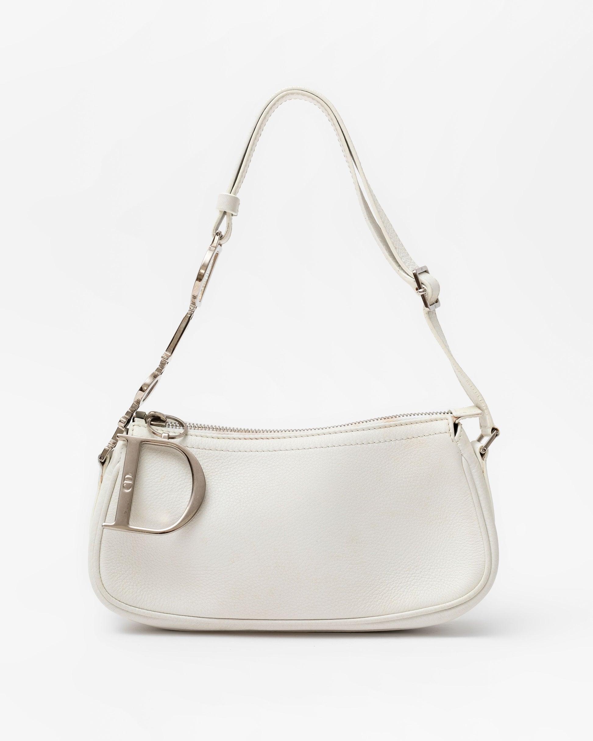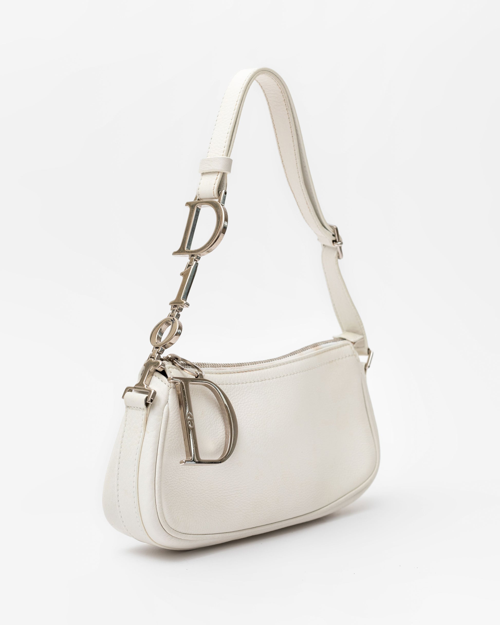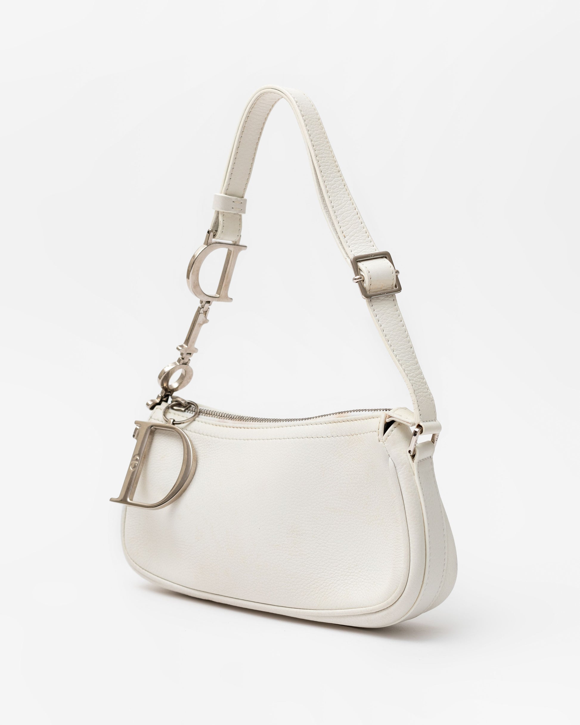 White pebbled leather with incredible Dior silver plaque detailing and large “D” charm.