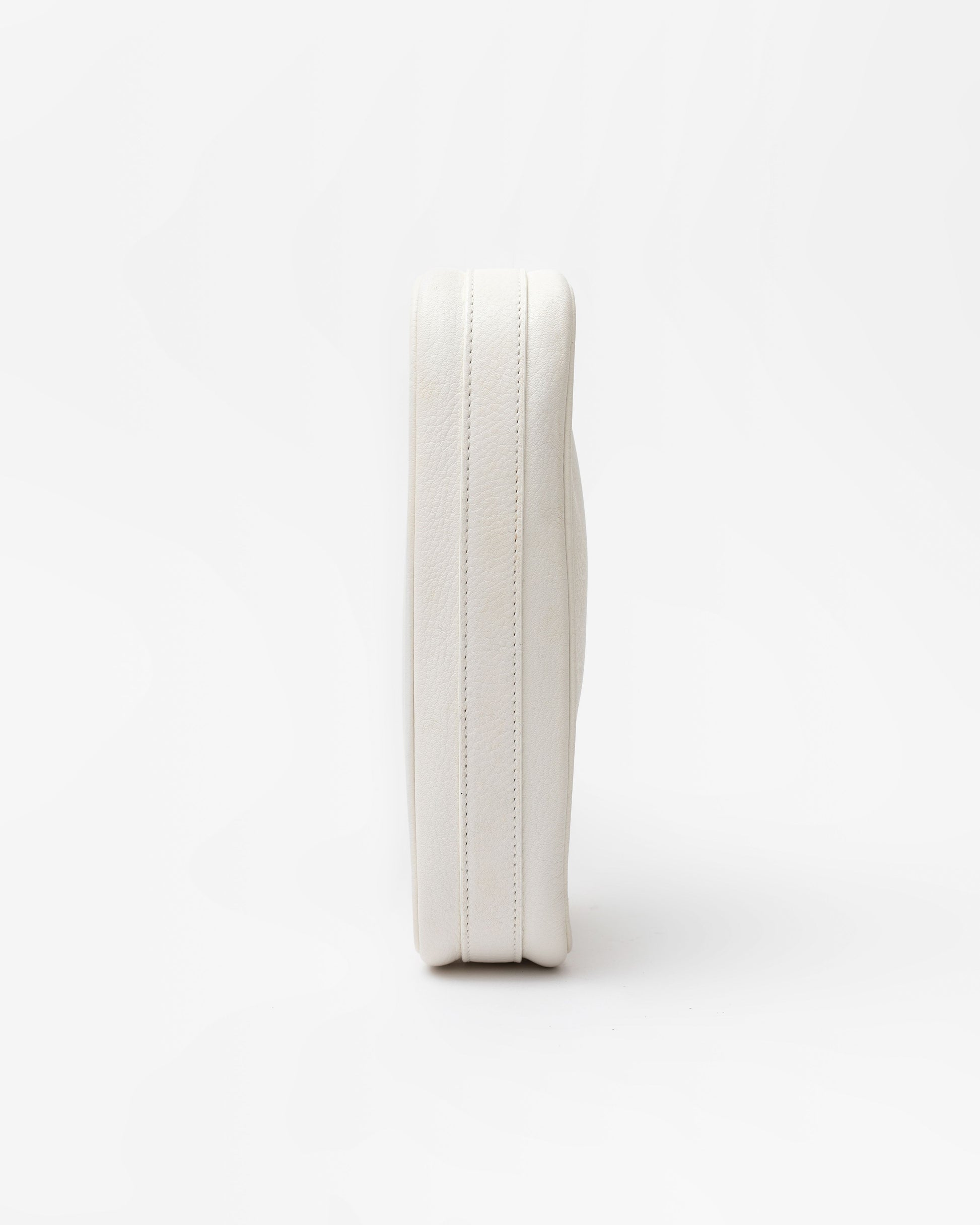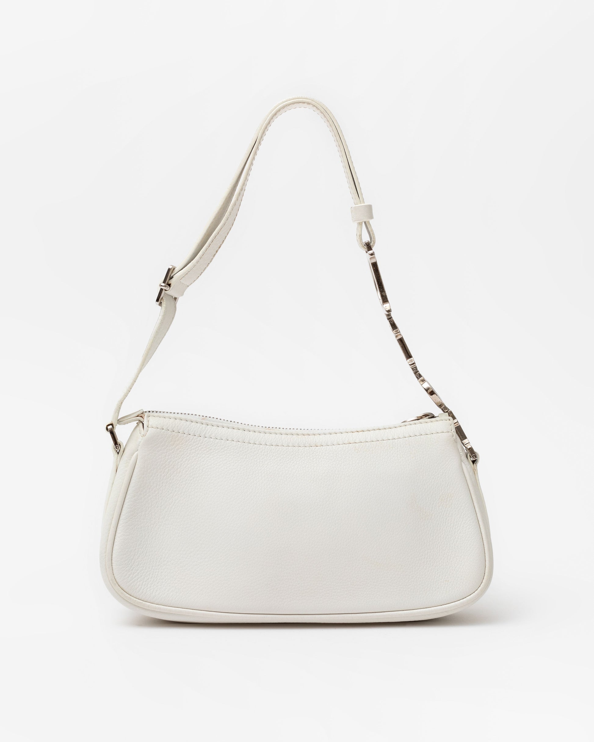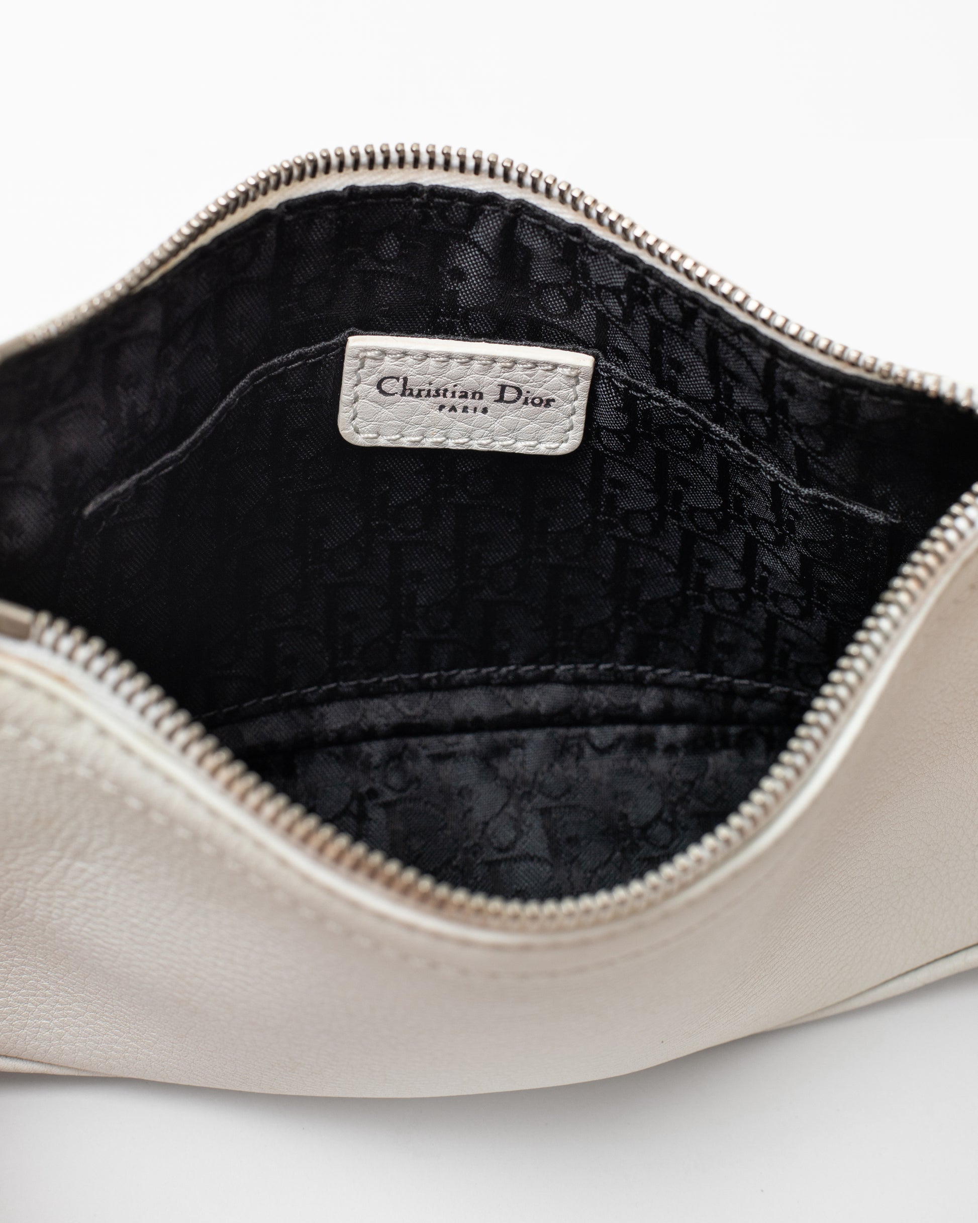White pebbled leather with incredible Dior silver plaque detailing and large “D” charm.