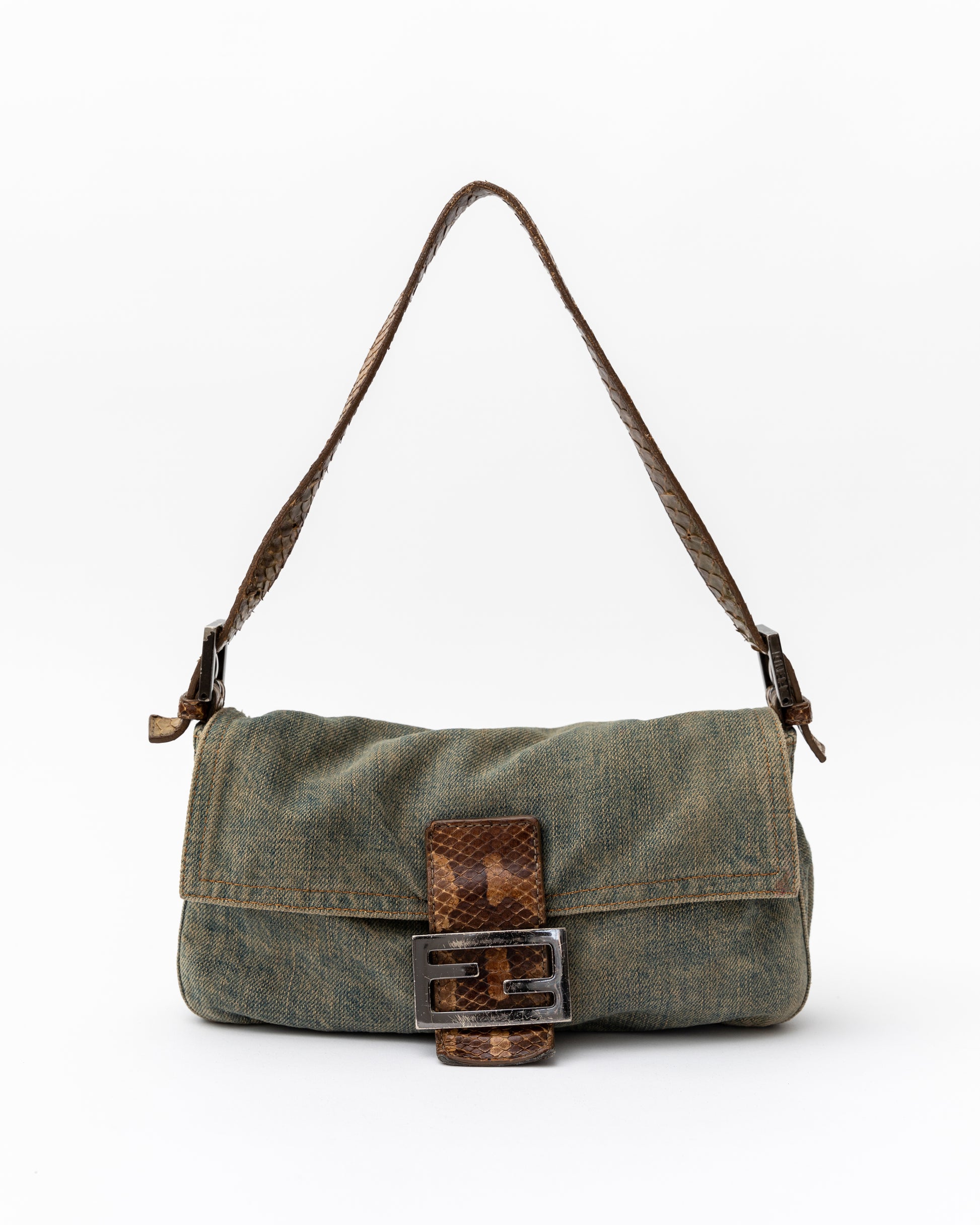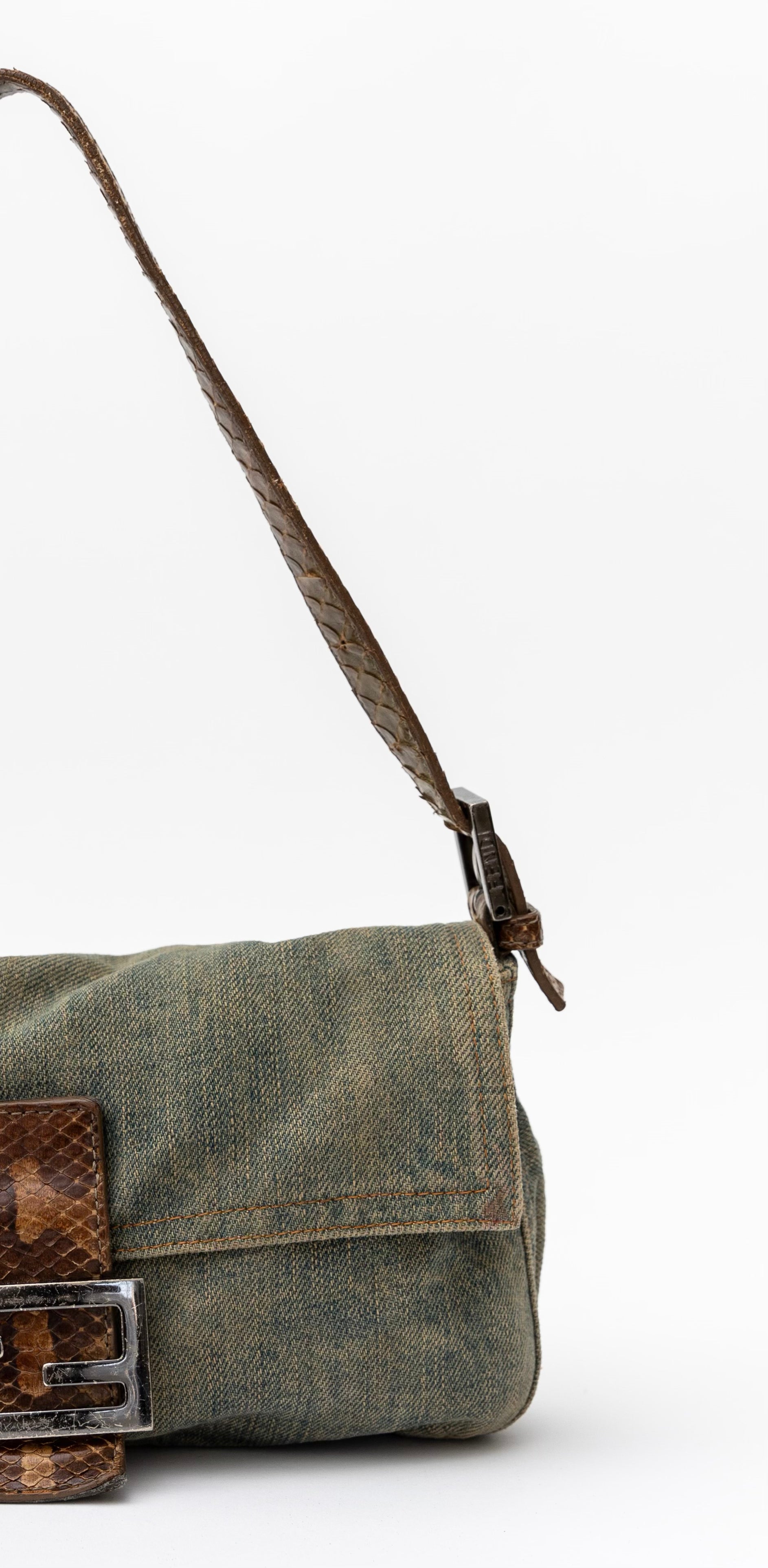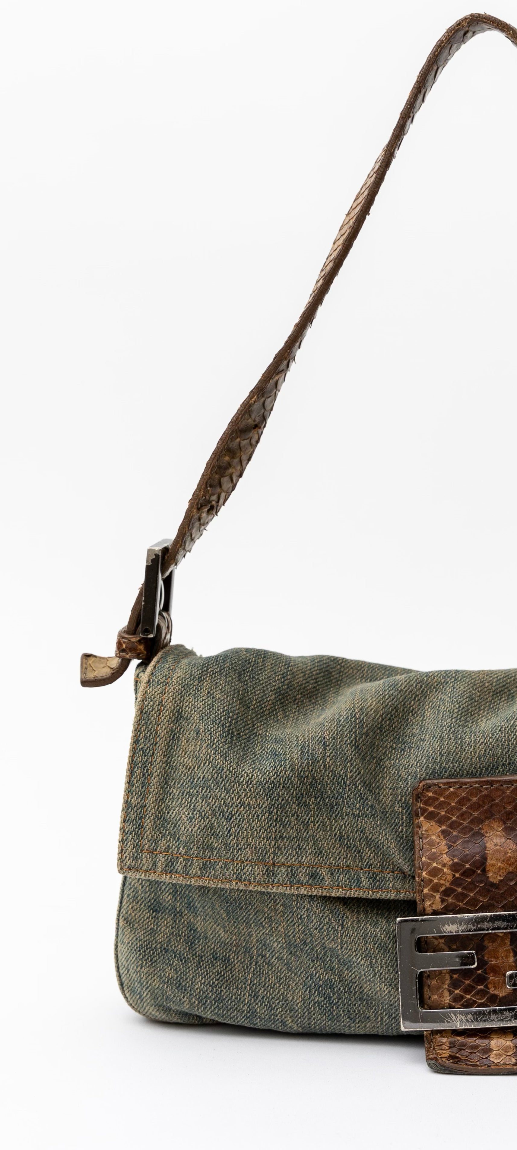 Fendi Denim Snakeskin Baguette