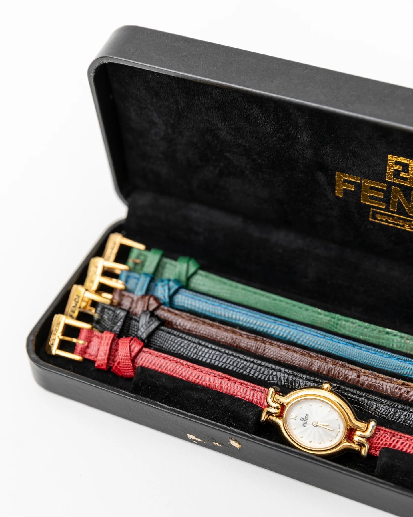- INCLUDES: Fendi watch, 5 leather straps, watch case.