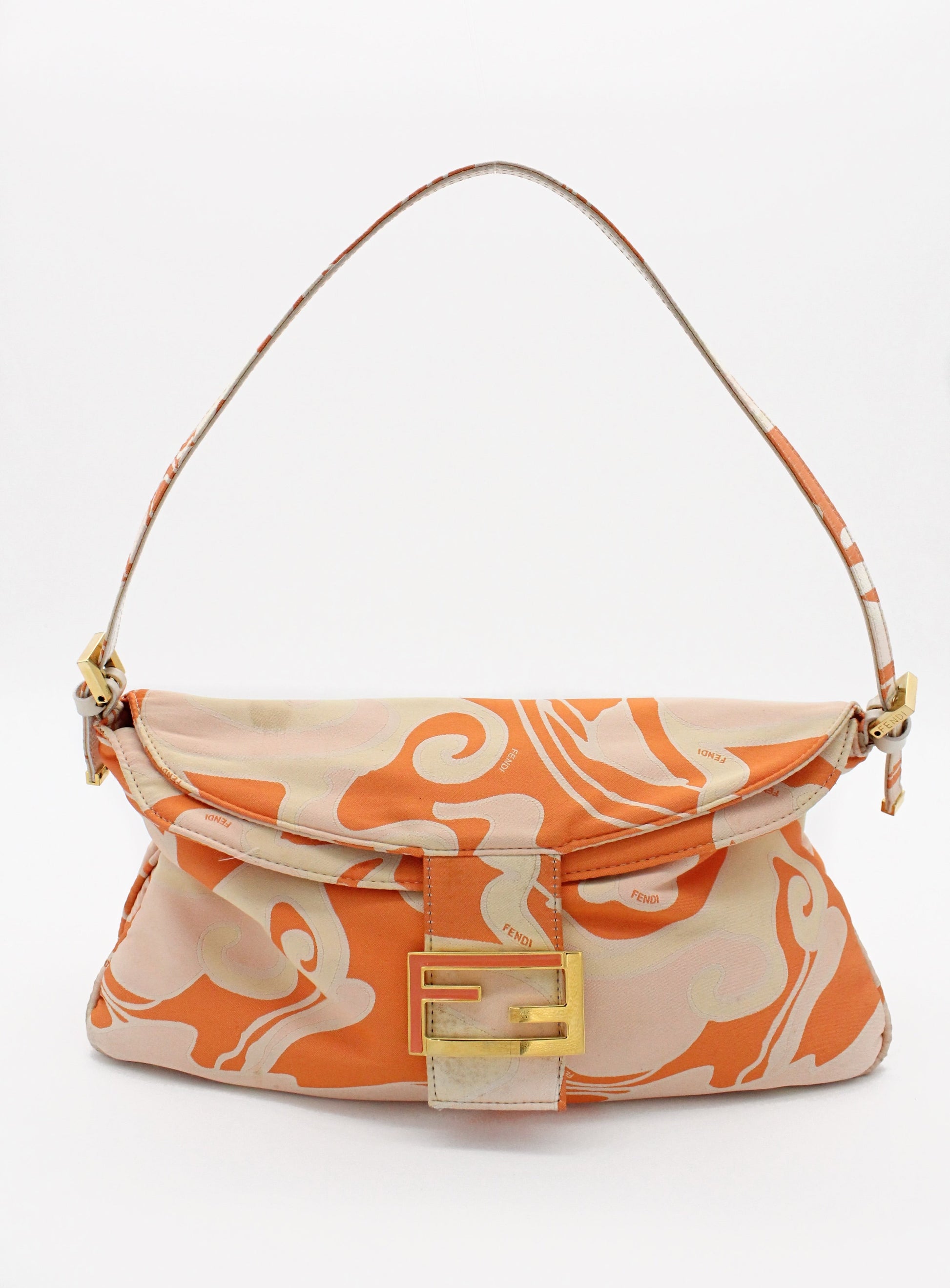 Fendi Orange Swirl Psychedelic Silk Baguette