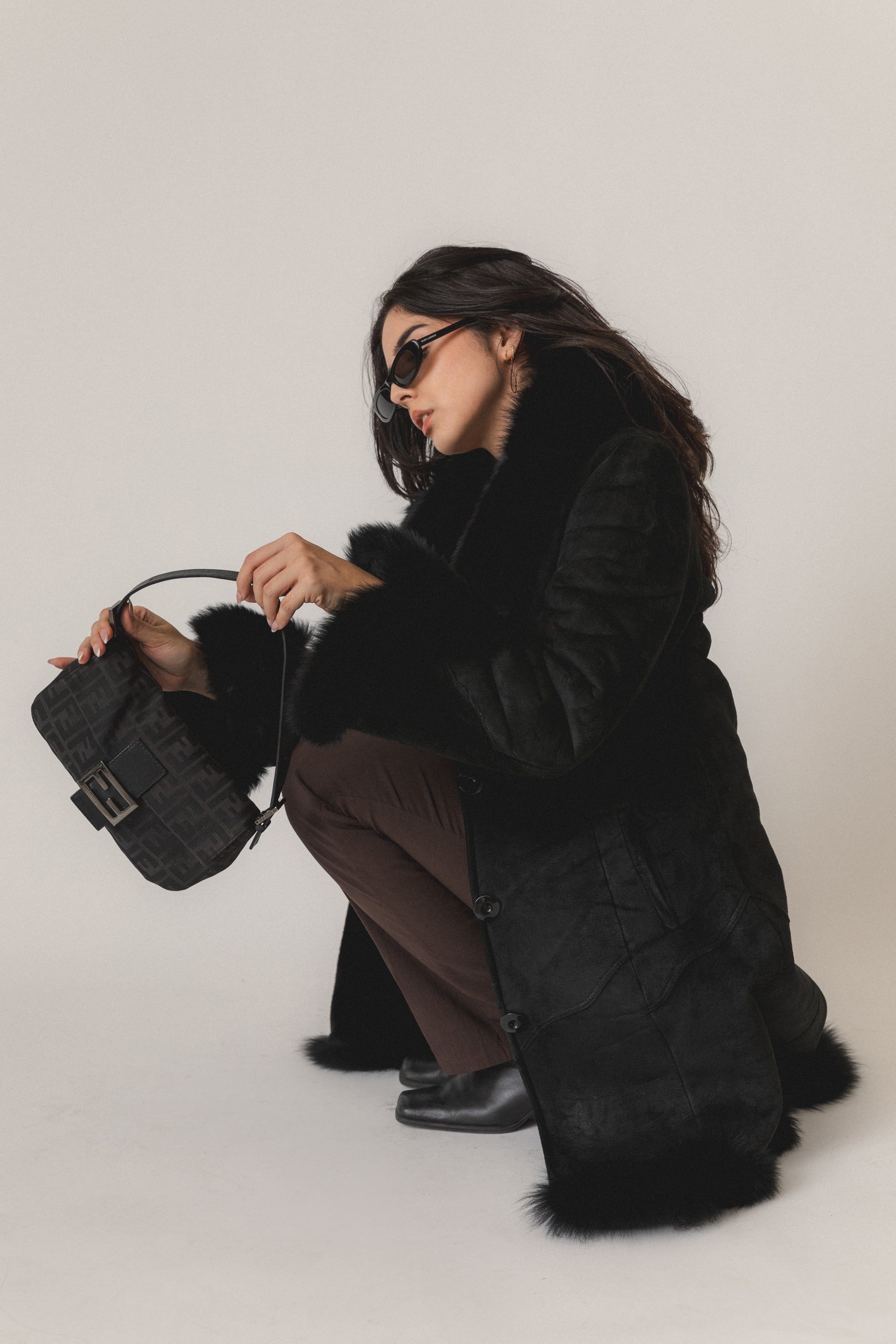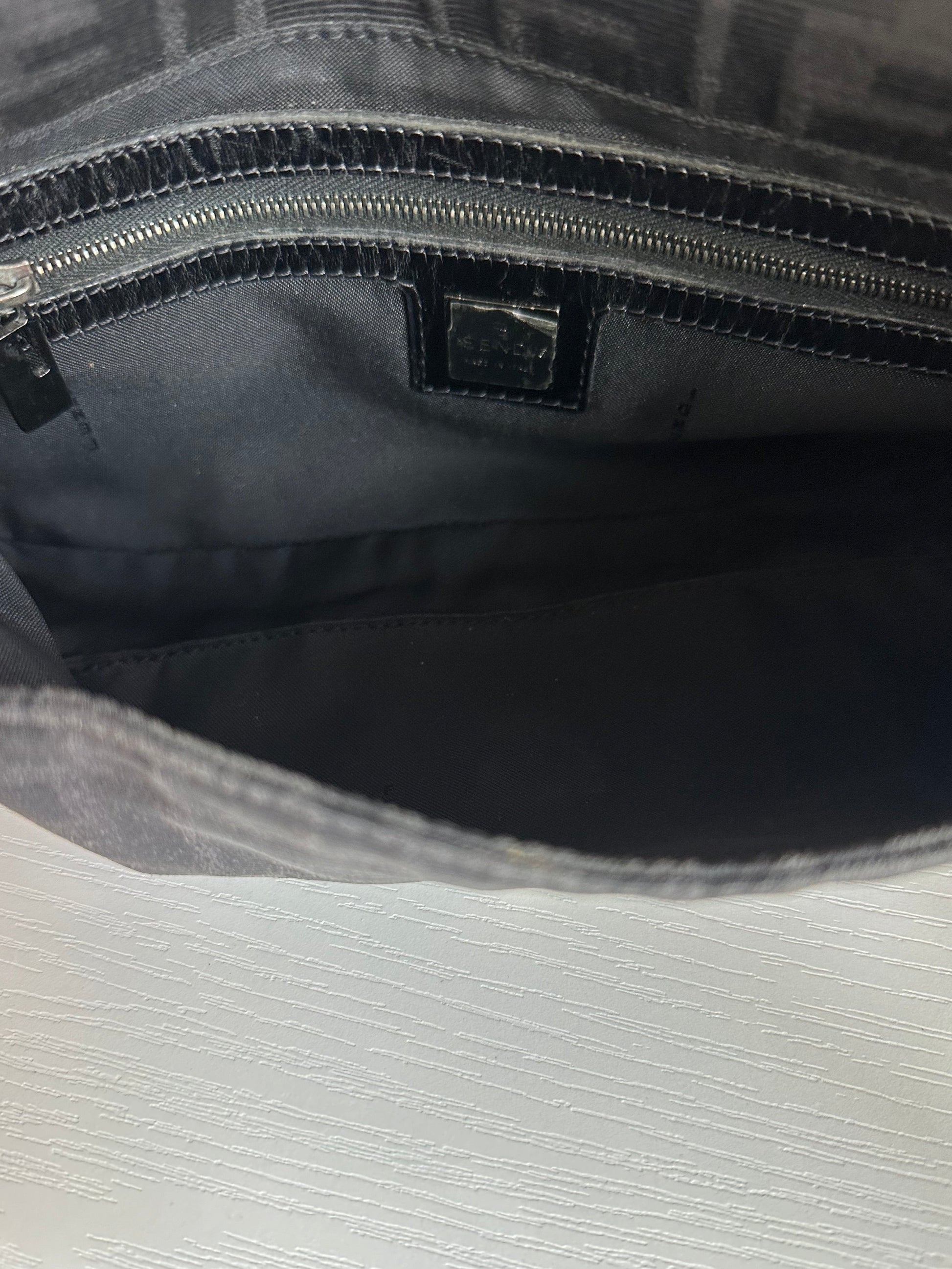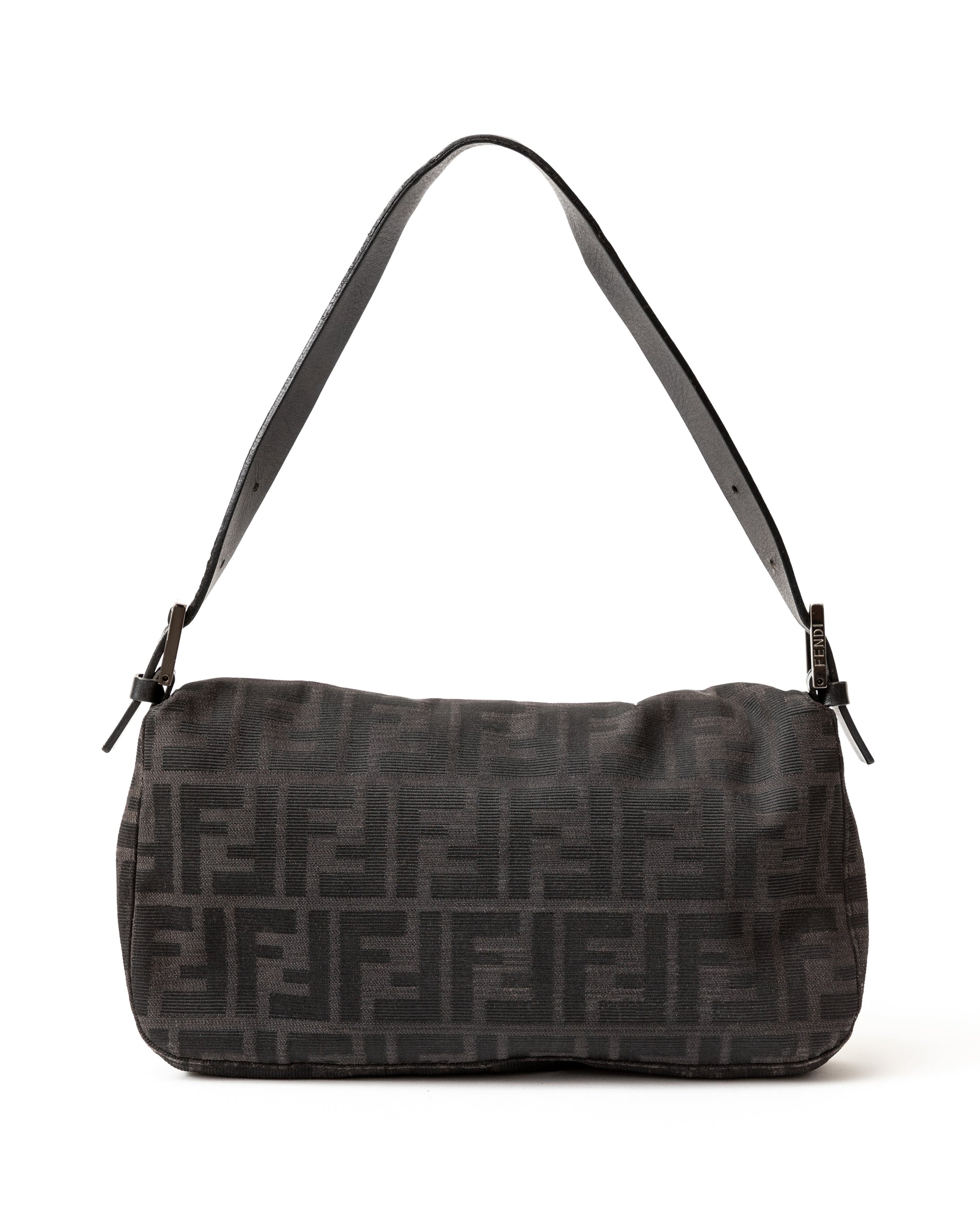 - This Carrie Bradshaw approved staple features RARE black Zucca monogram with black leather detailing and adjustable strap in excellent shape. Still has the protective plastic sticker on the inside silver plaque!