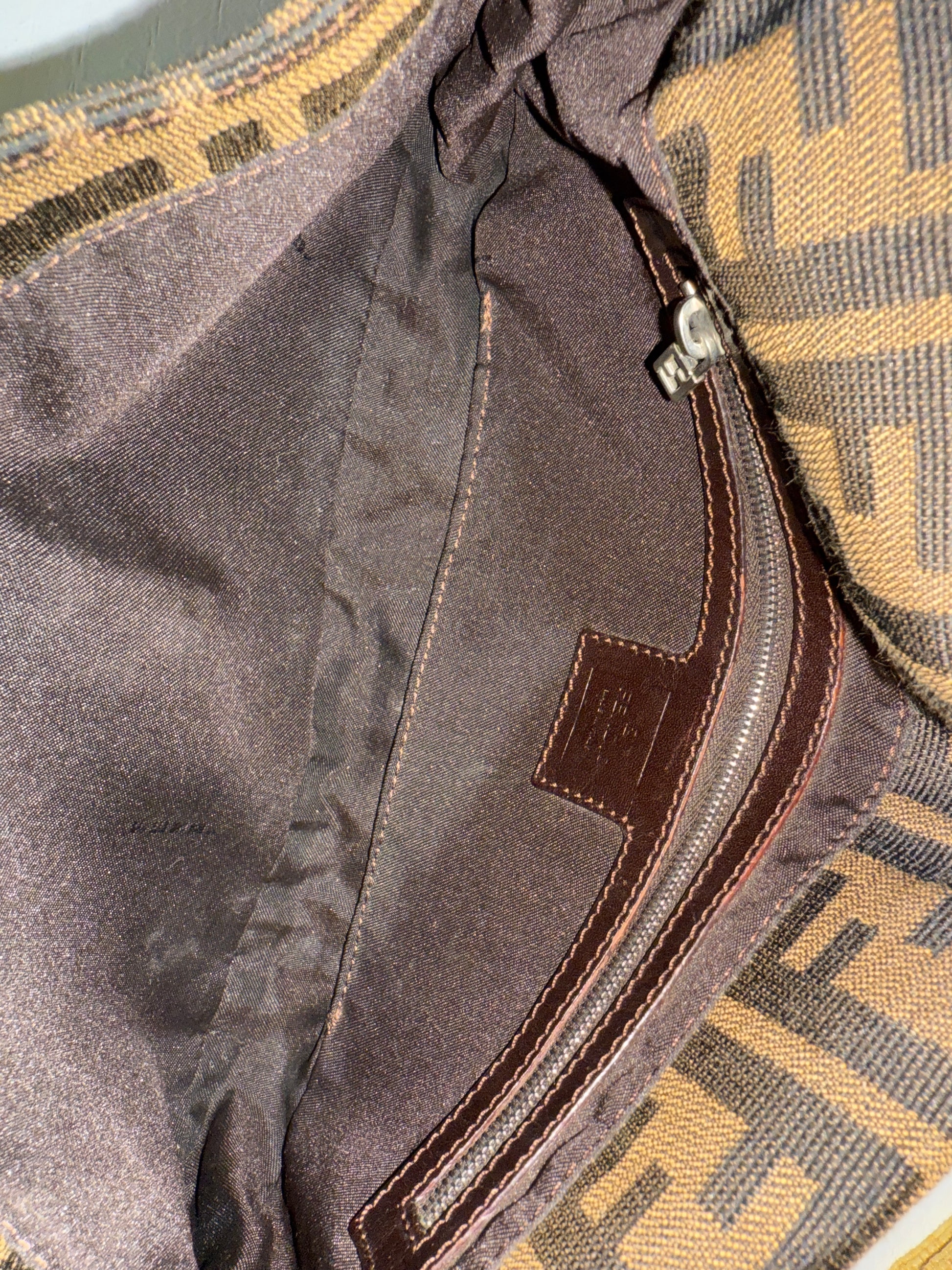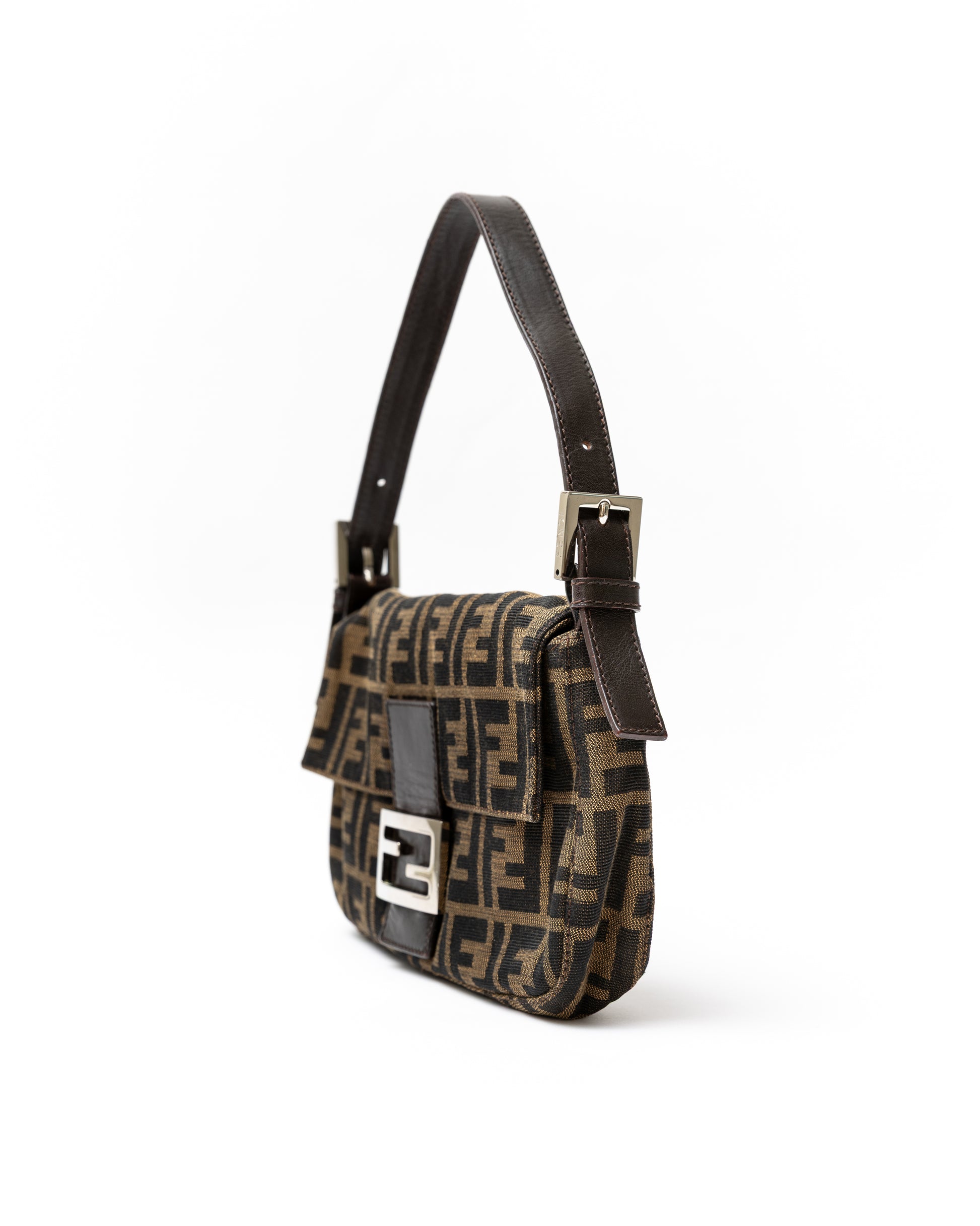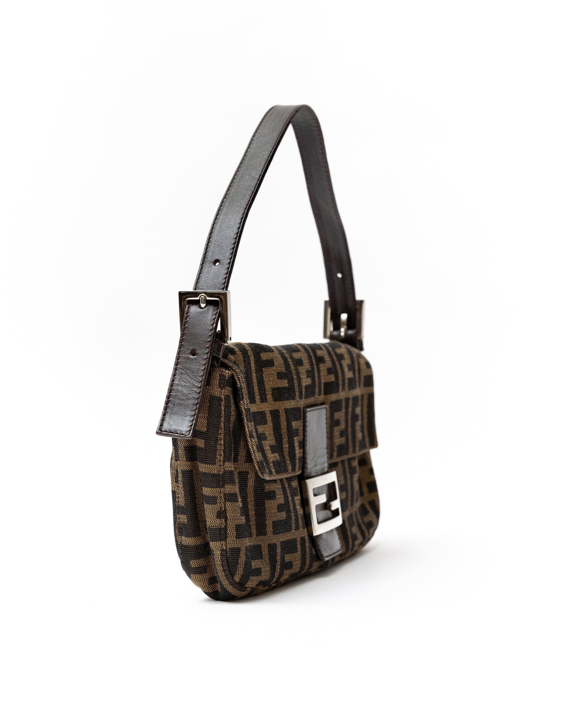 - This Carrie Bradshaw approved staple features RARE black Zucca monogram with black leather detailing and adjustable strap in excellent shape. Still has the protective plastic sticker on the inside silver plaque!