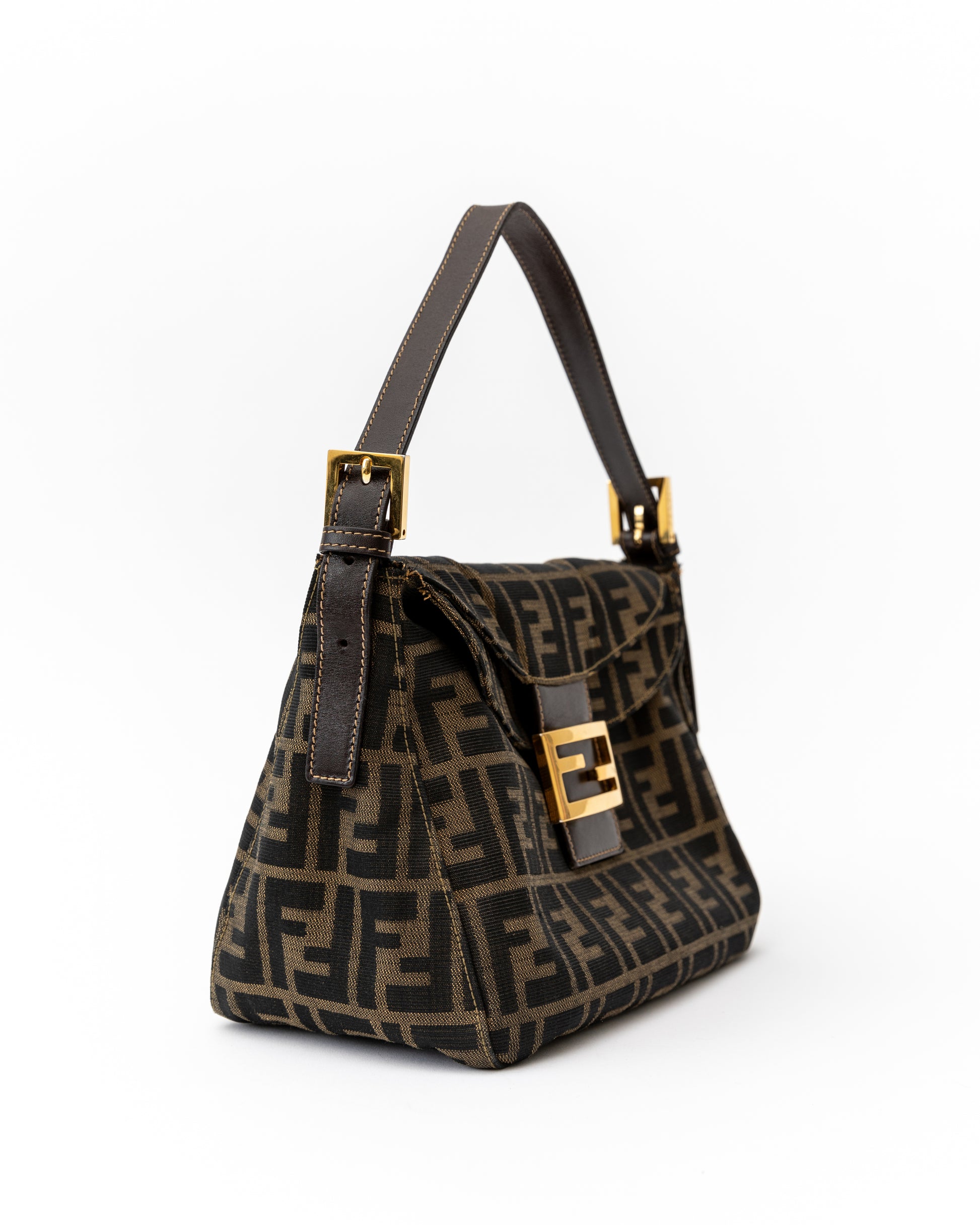 - This classic Fendi Zucca baguette features rare gold hardware and a unique double flap exterior - Carrie Bradshaw would definitely approve for strutting around the city in the spring and summer months.