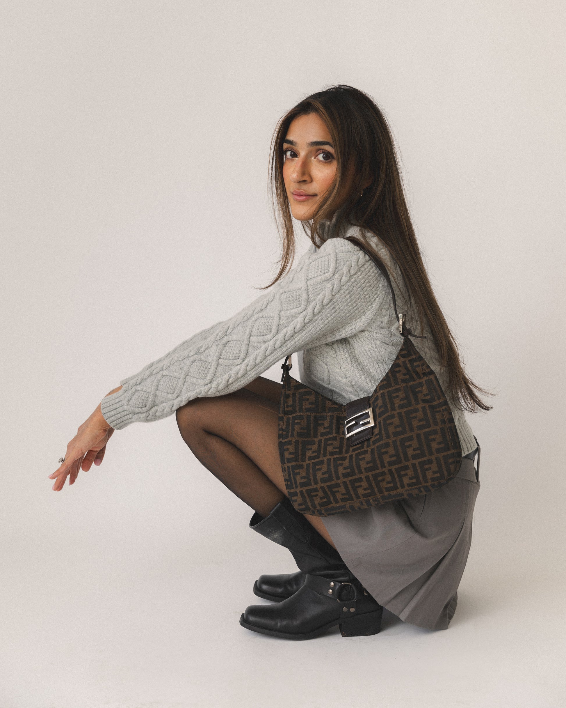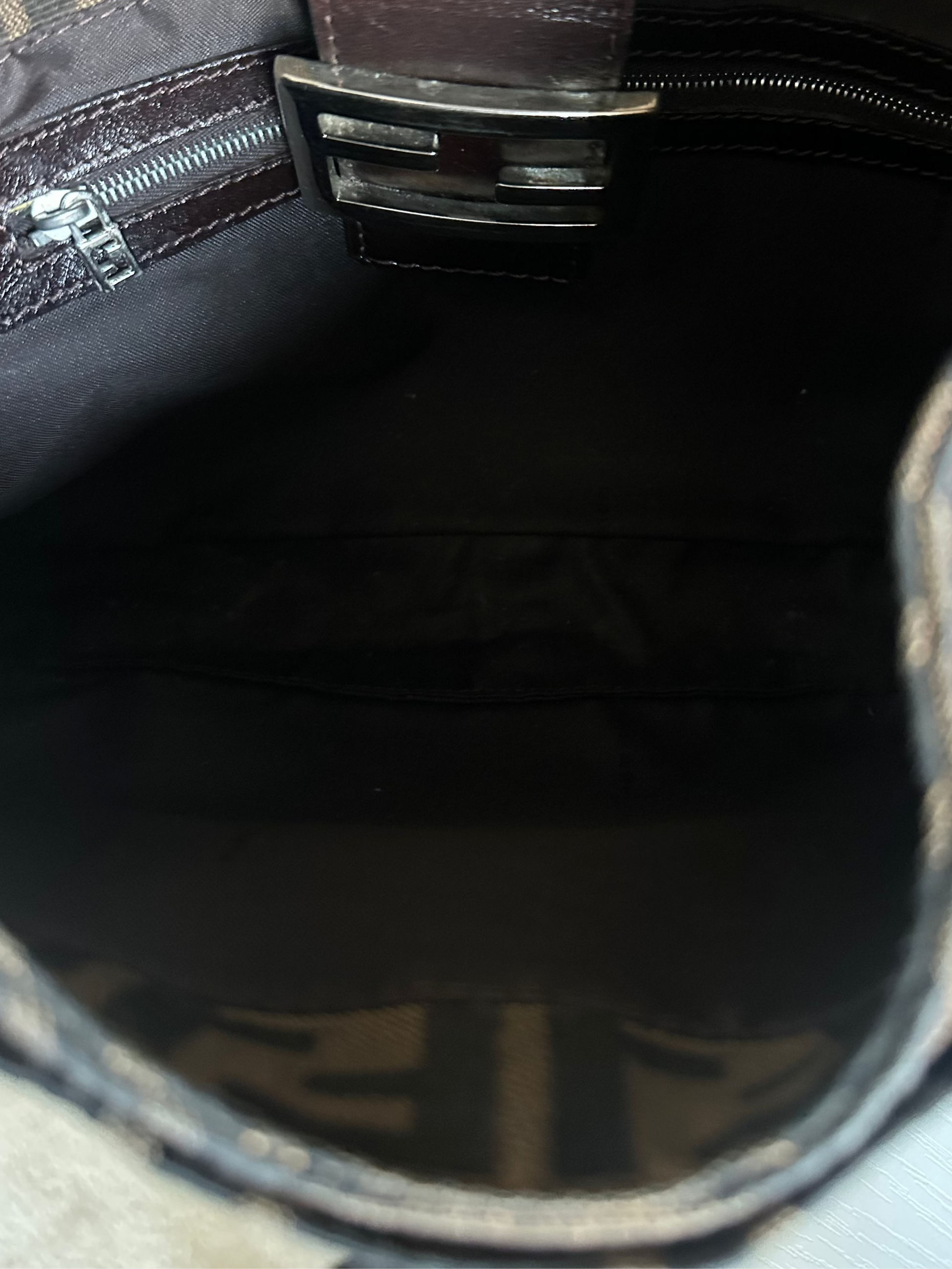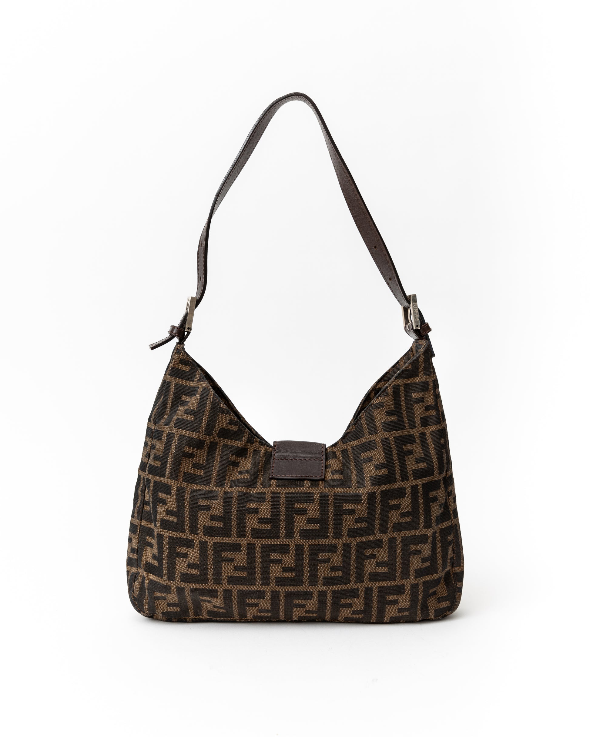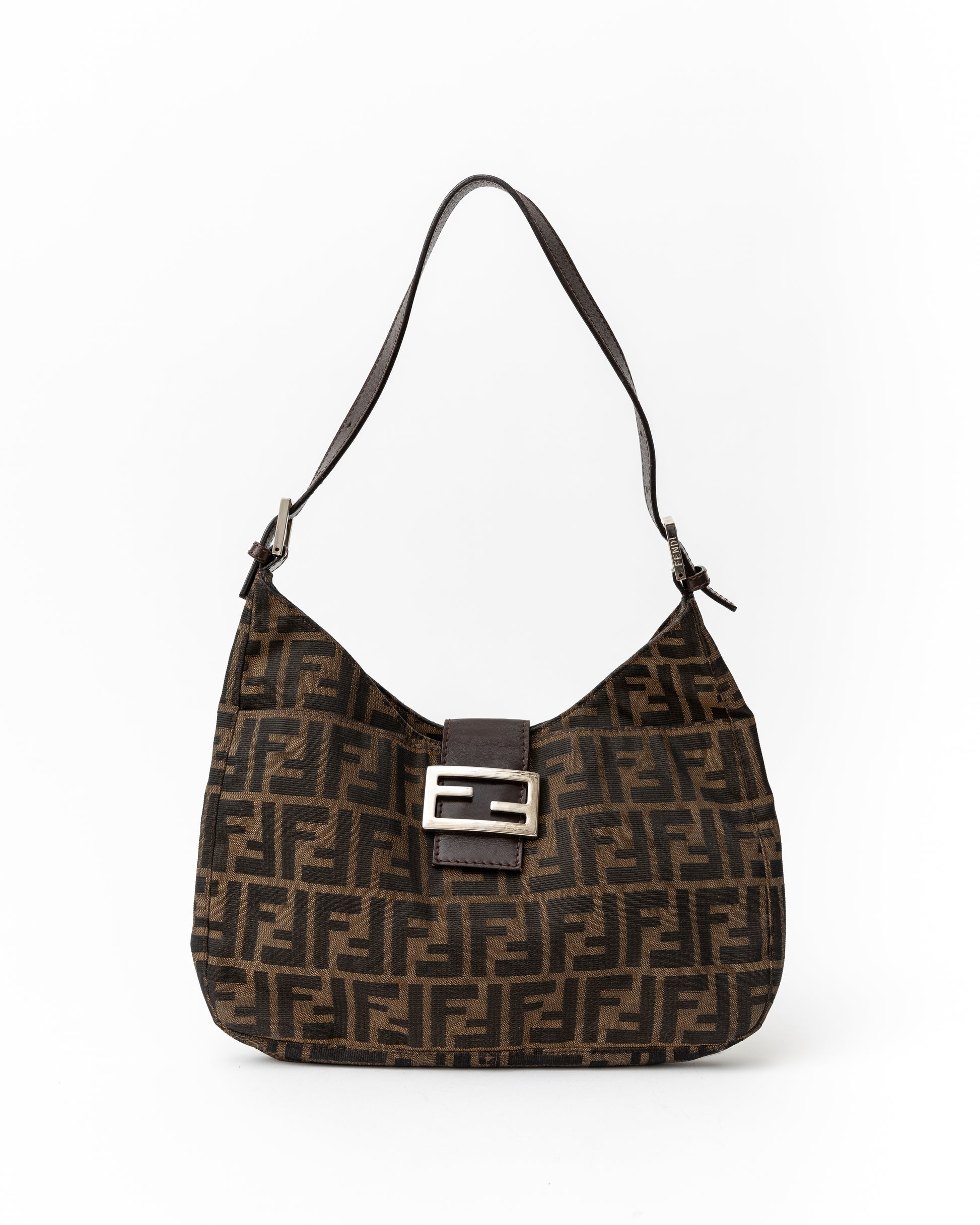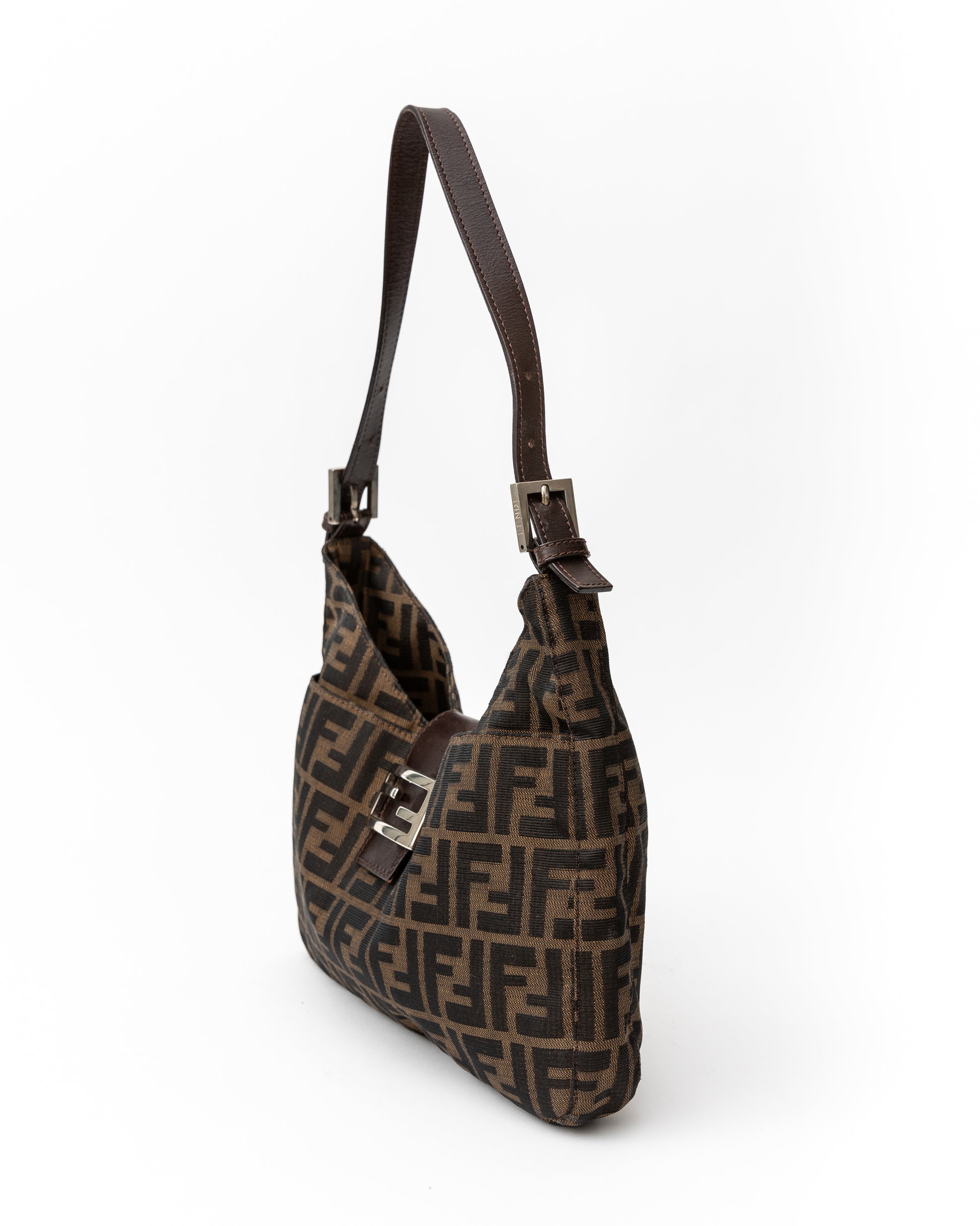 - A classic bag for the girl on the go - this Fendi Zucca shoulder bag features an adjustable brown leather shoulder strap and the classic zucca canvas which matches with any outfit.