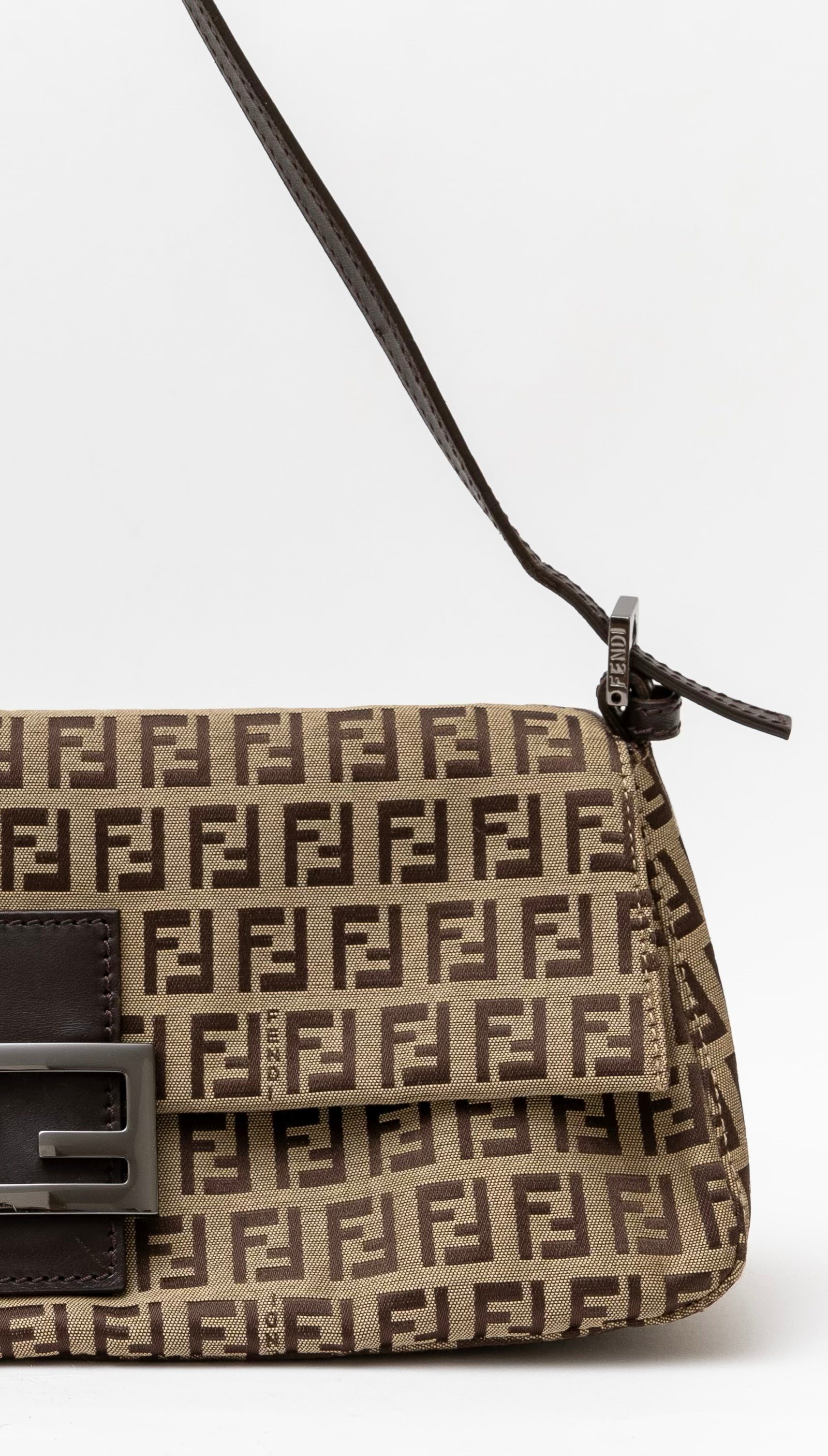 - This Carrie Bradshaw approved Fendi baguette with tan and brown canvas and brown leather trimming is the perfect bag for strutting around the city this fall season.