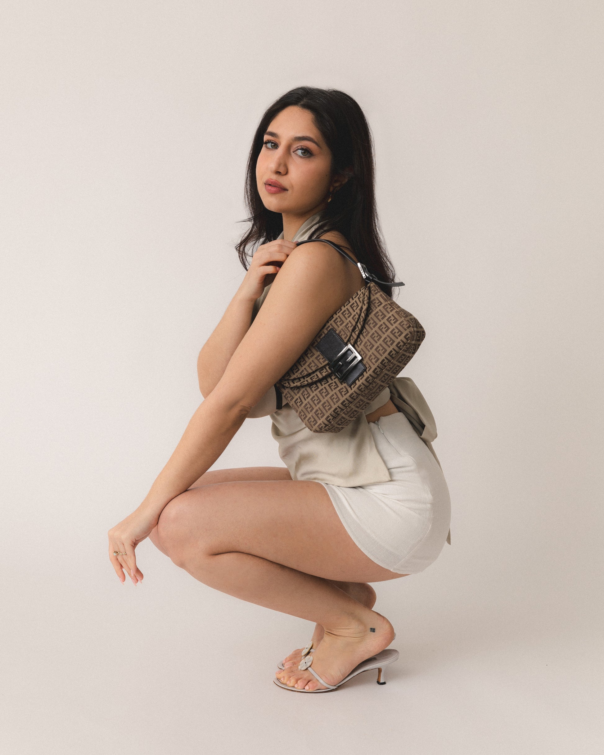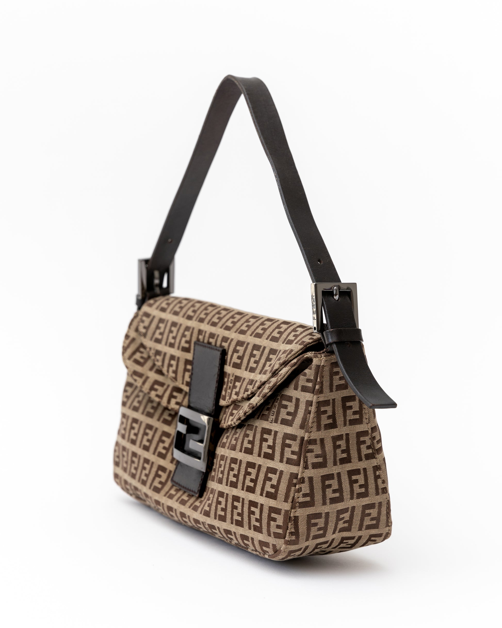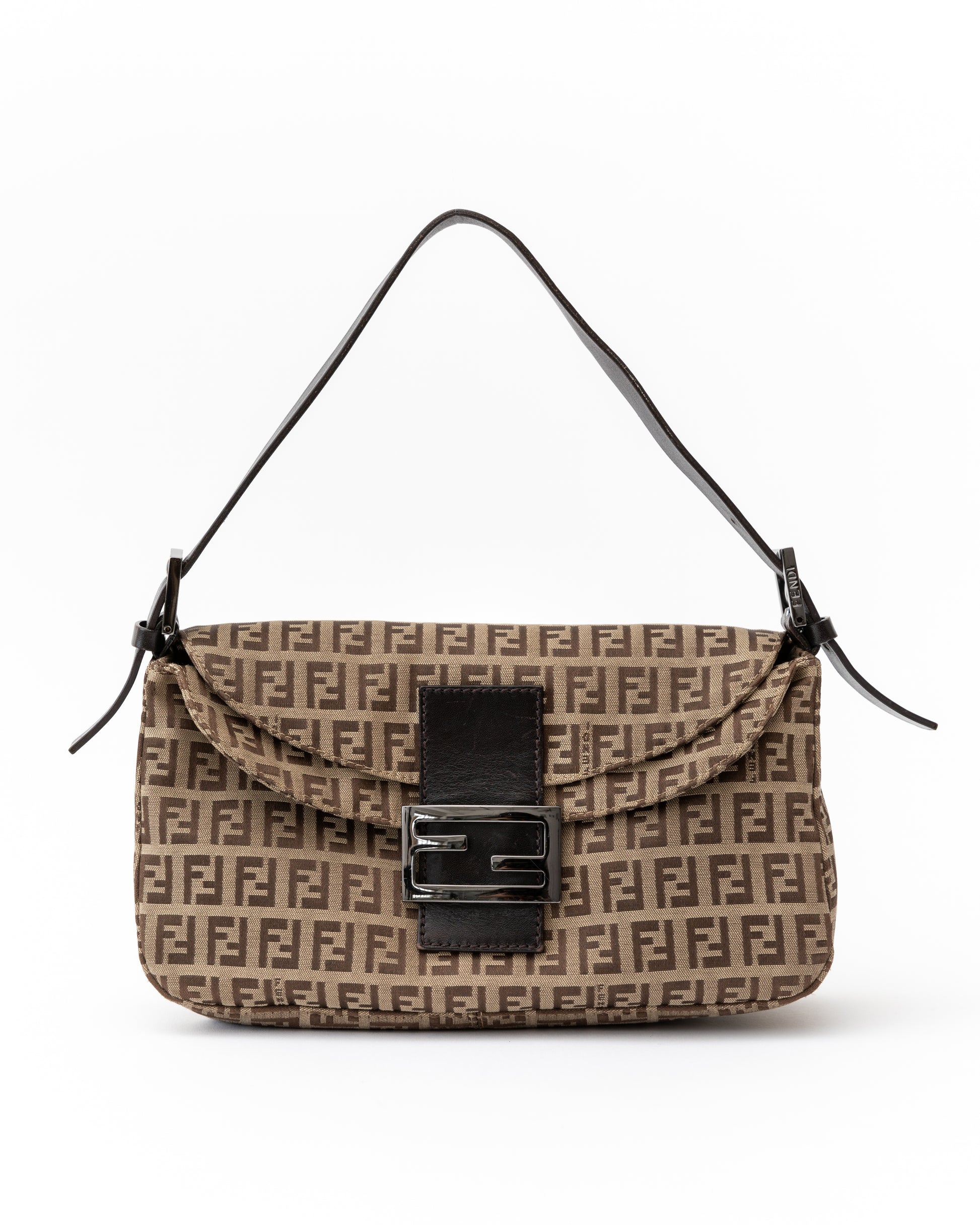 - This Carrie Bradshaw approved Fendi baguette with tan and brown canvas and brown leather trimming is the perfect bag for strutting around the city this spring and summer season.