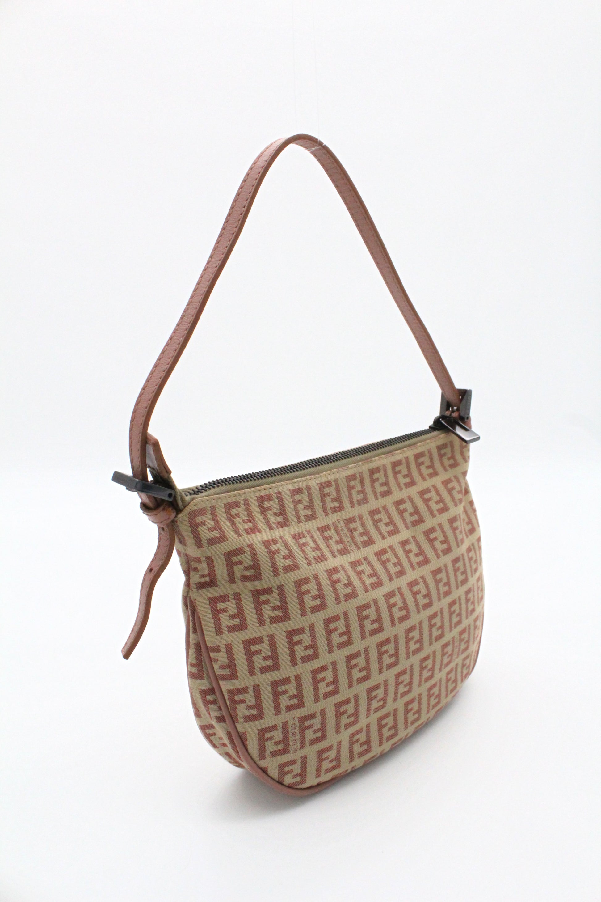 - Adorable pink Fendi zucchini canvas with pink leather trimming. Silver hardware.