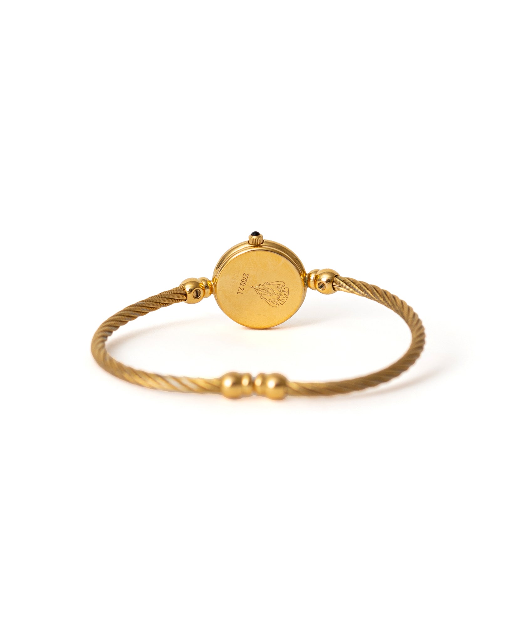 This vintage 90s gold gucci watch is the perfect accessory for everyday wear with its versatile twist rod clasp (can be adjustable), elegant gold engraving and chic mother of pearl face.
