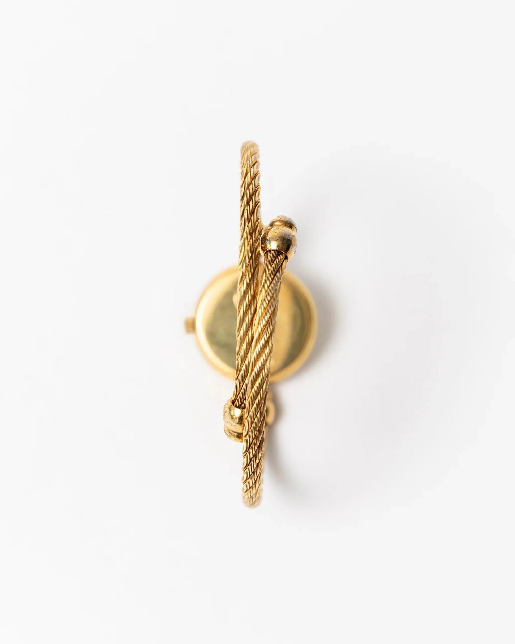This vintage 90s gold gucci watch is the perfect accessory for everyday wear with its versatile twist rod clasp (can be adjustable), elegant gold engraving and chic mother of pearl face.