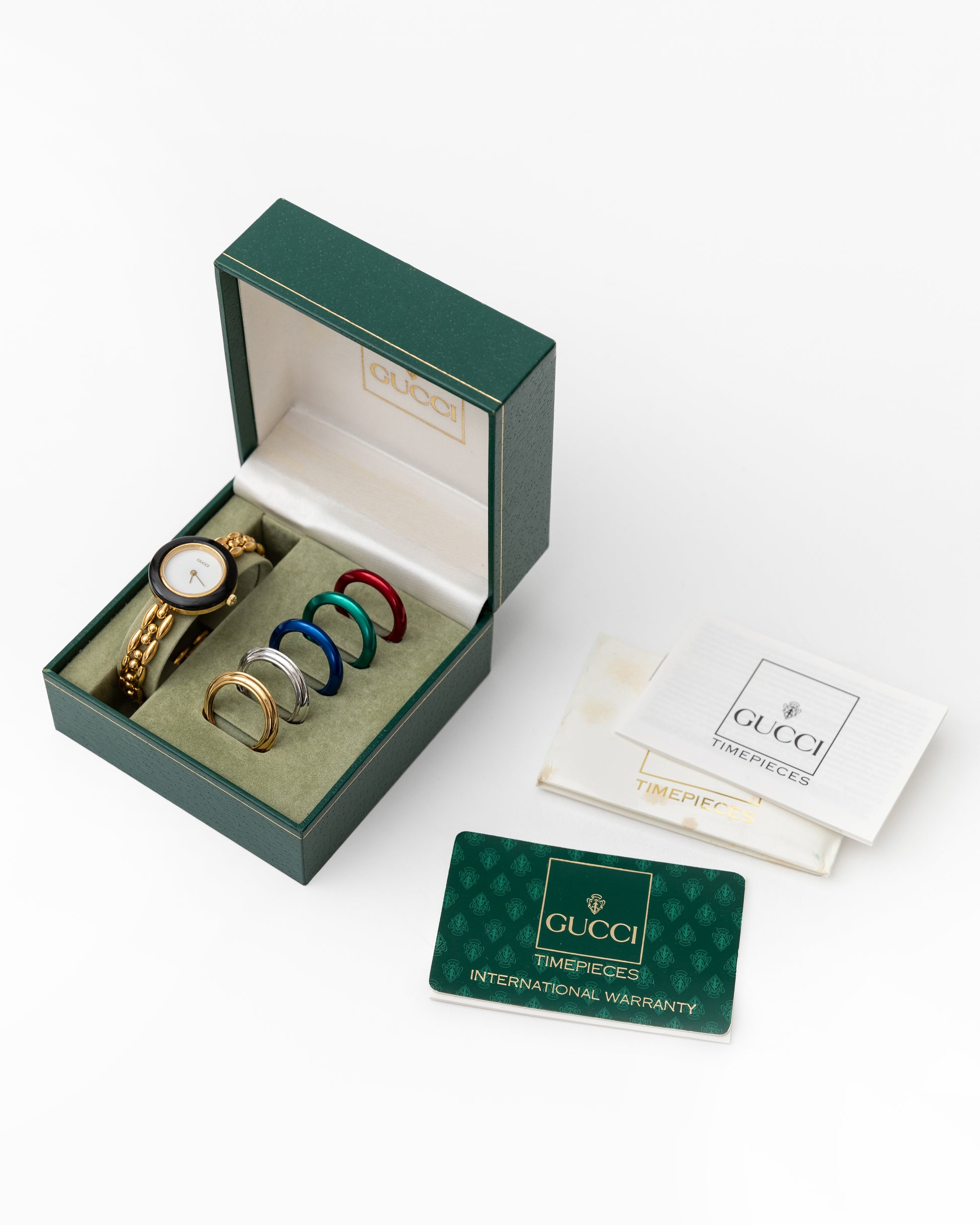 - INCLUDES: Gucci box, 6 bezels, original care cards.