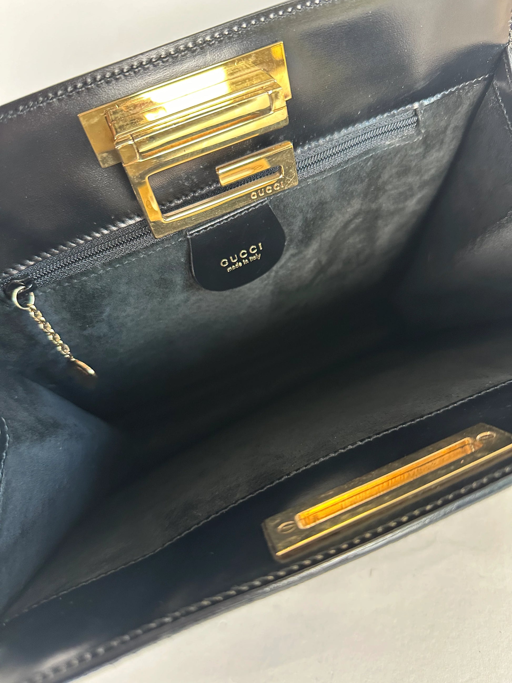 The suede black interior is spacious and has a zippered pocket with an adorable Gucci charm.
