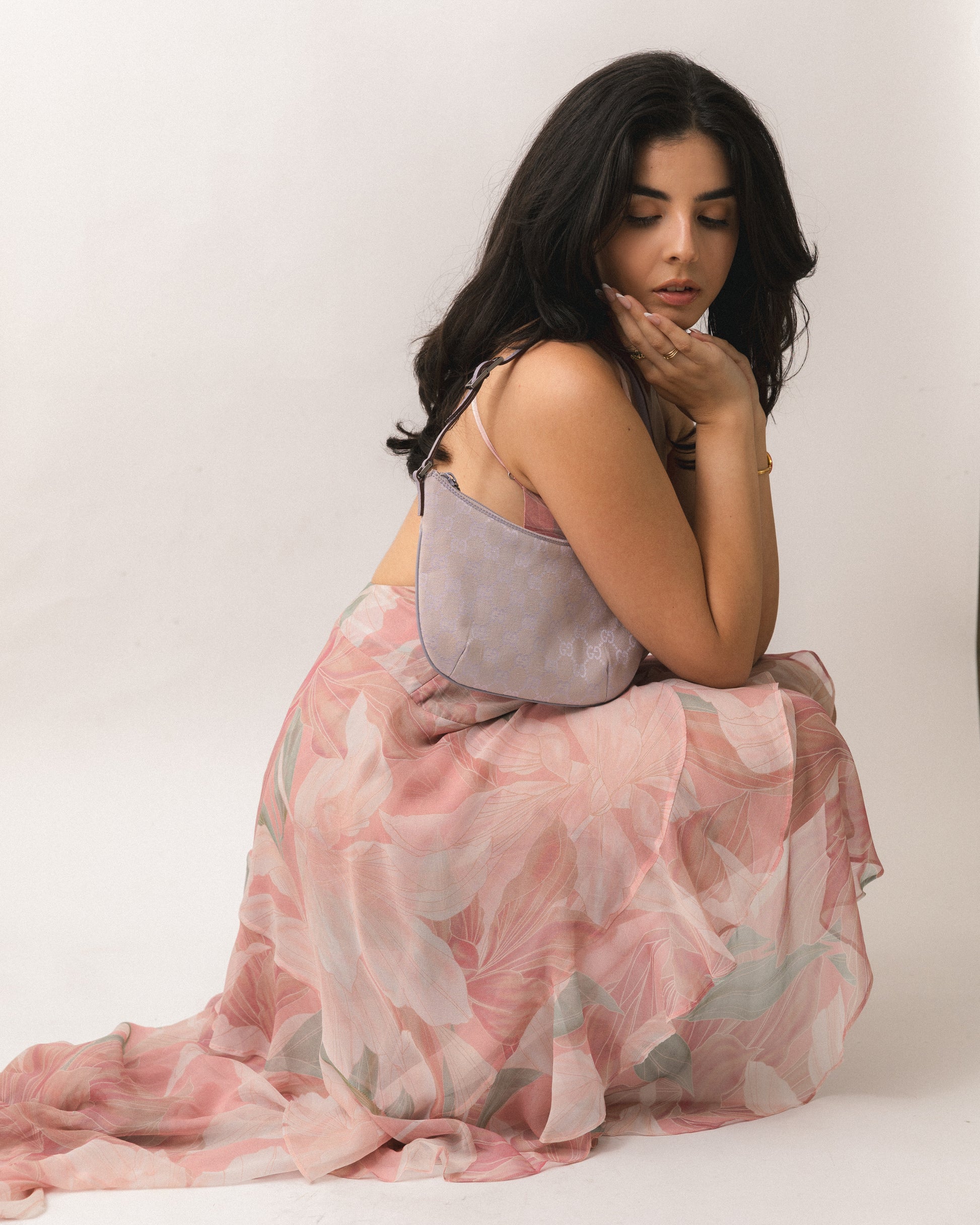 - This chic pochette is the cutest addition to your spring bag collection. The light purple is subtle, but adds variety to any wardrobe.