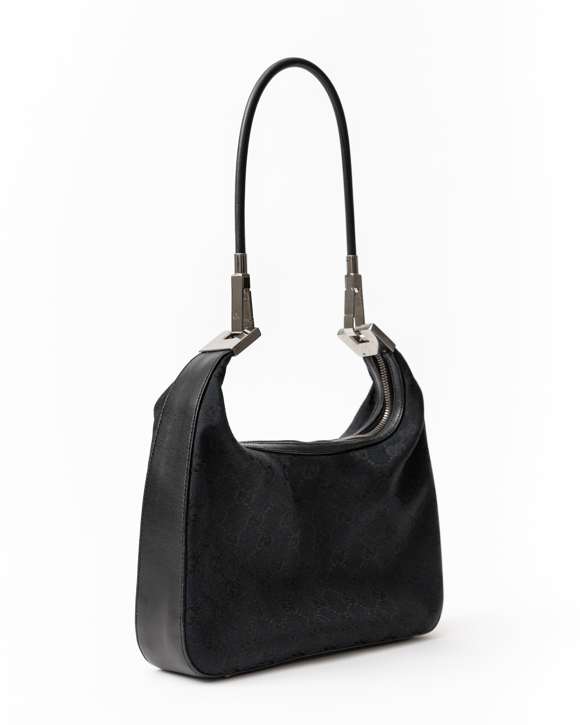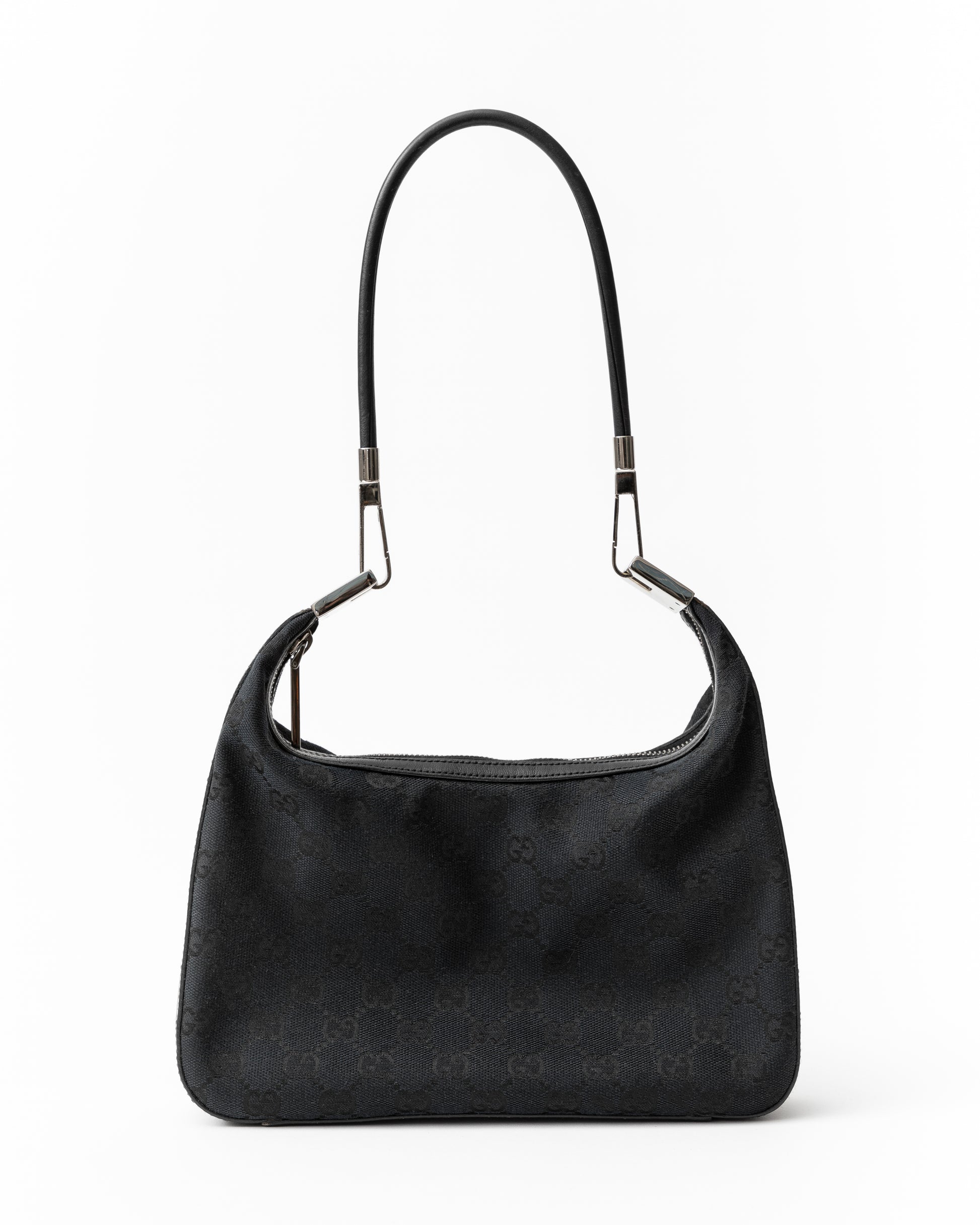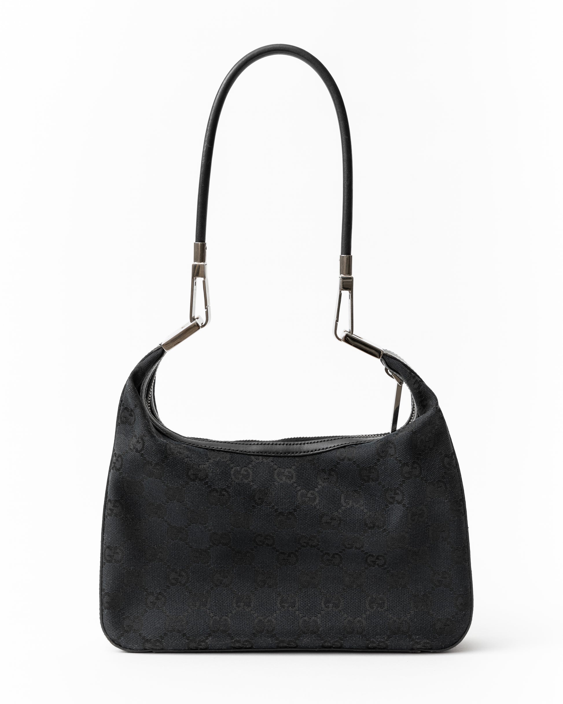 - Unique silver Gucci clasp detail on the leather shoulder strap allows the strap to be removed.