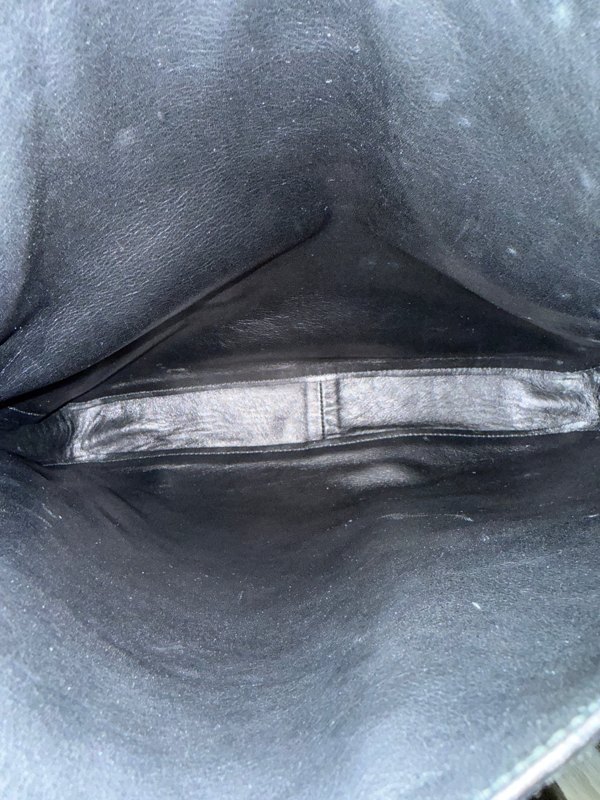 Tom-Ford era, black monogram GG suede with silver-tone hardware and black leather interior.