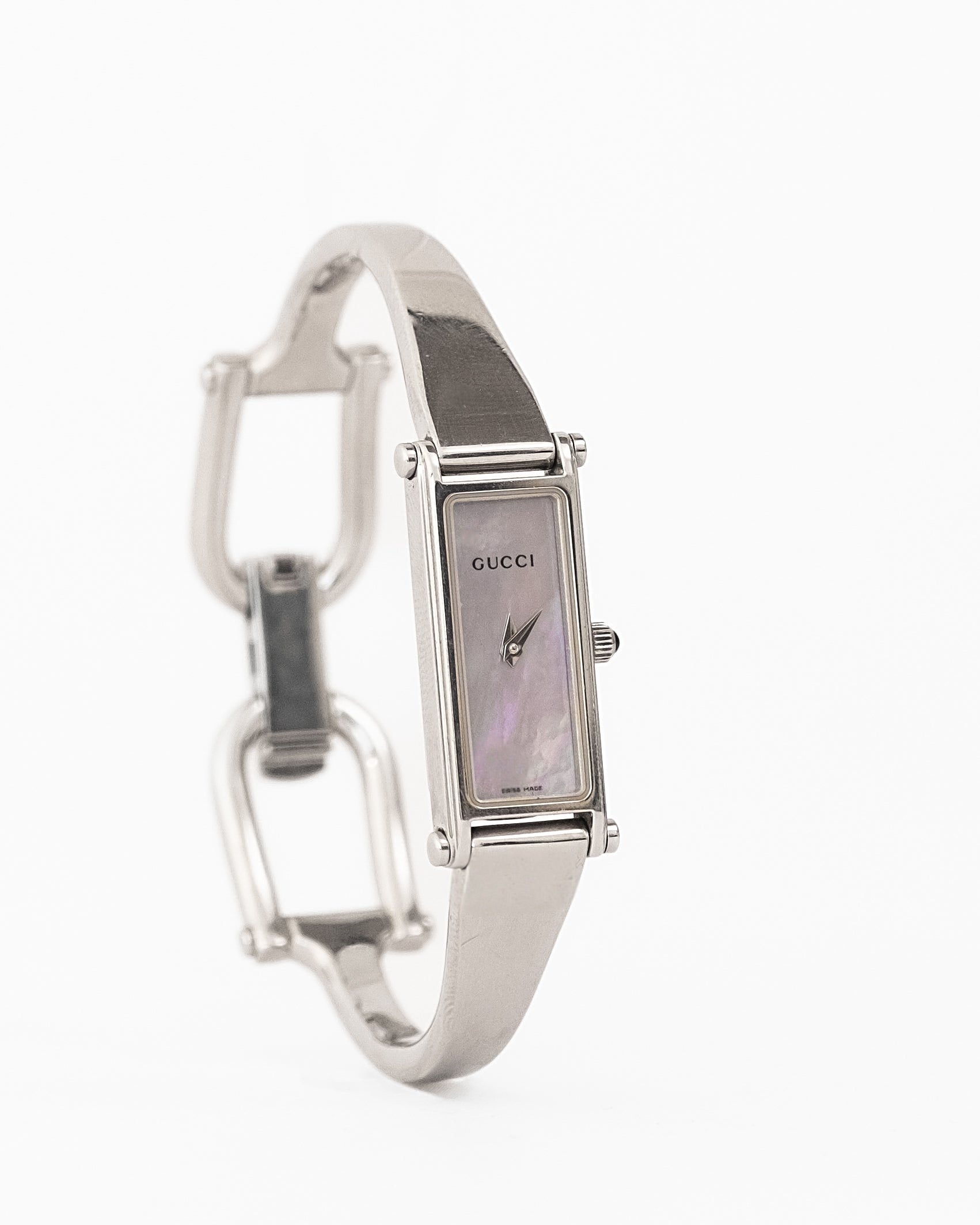 Gucci Silver Horsebit Pearl Watch