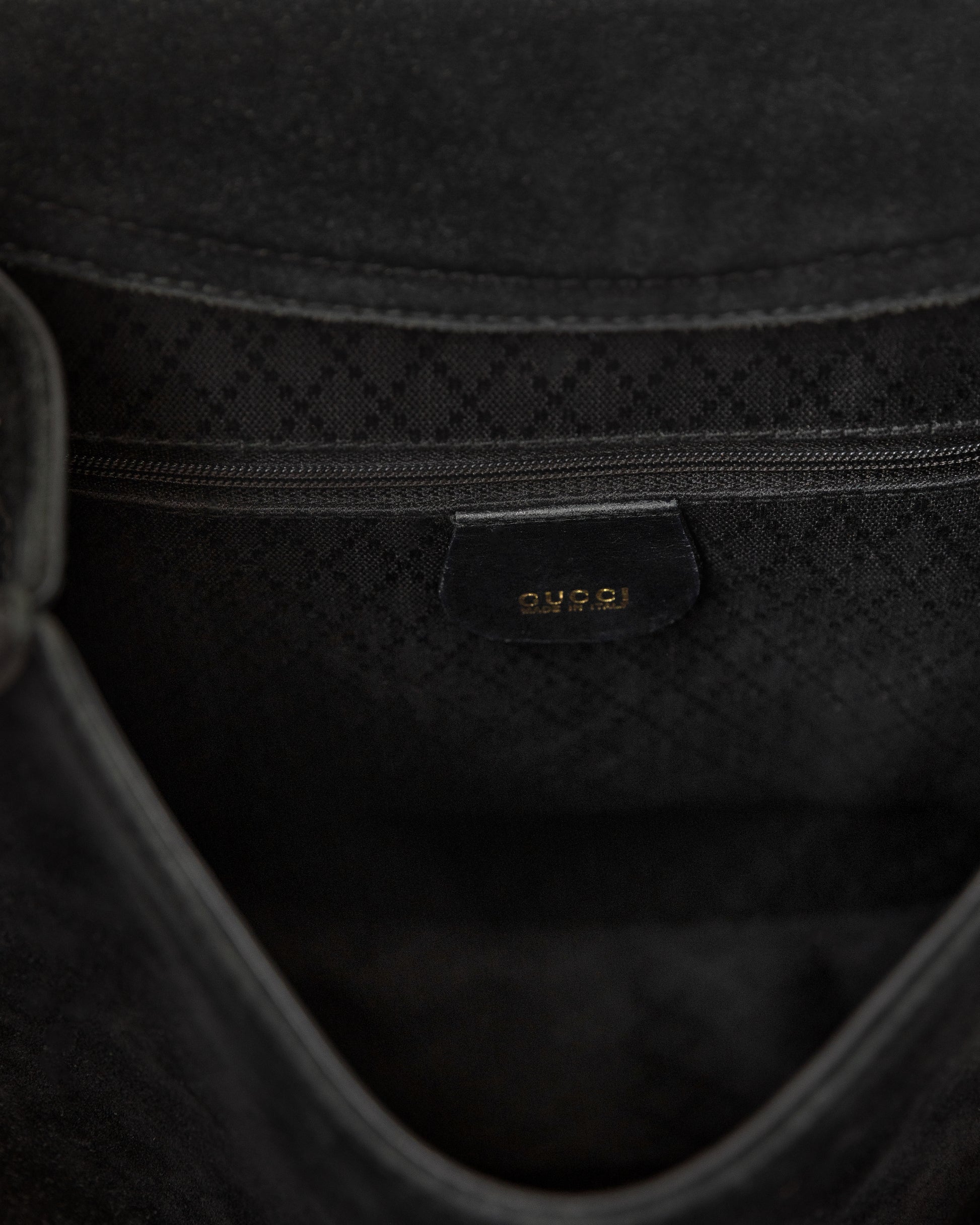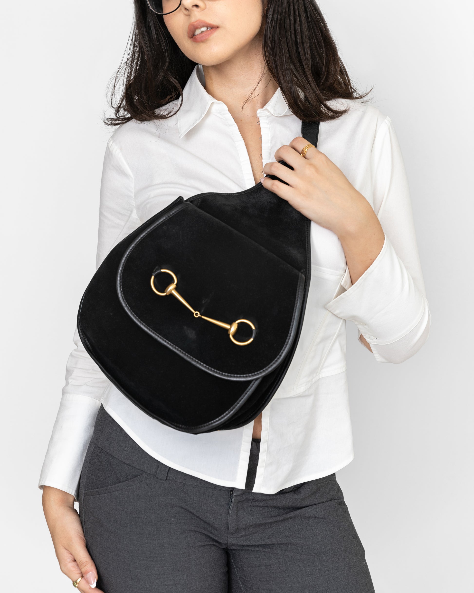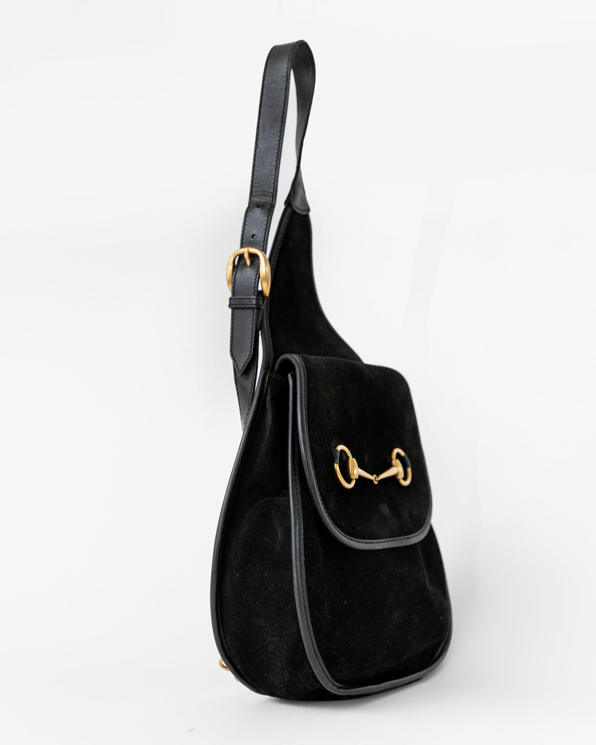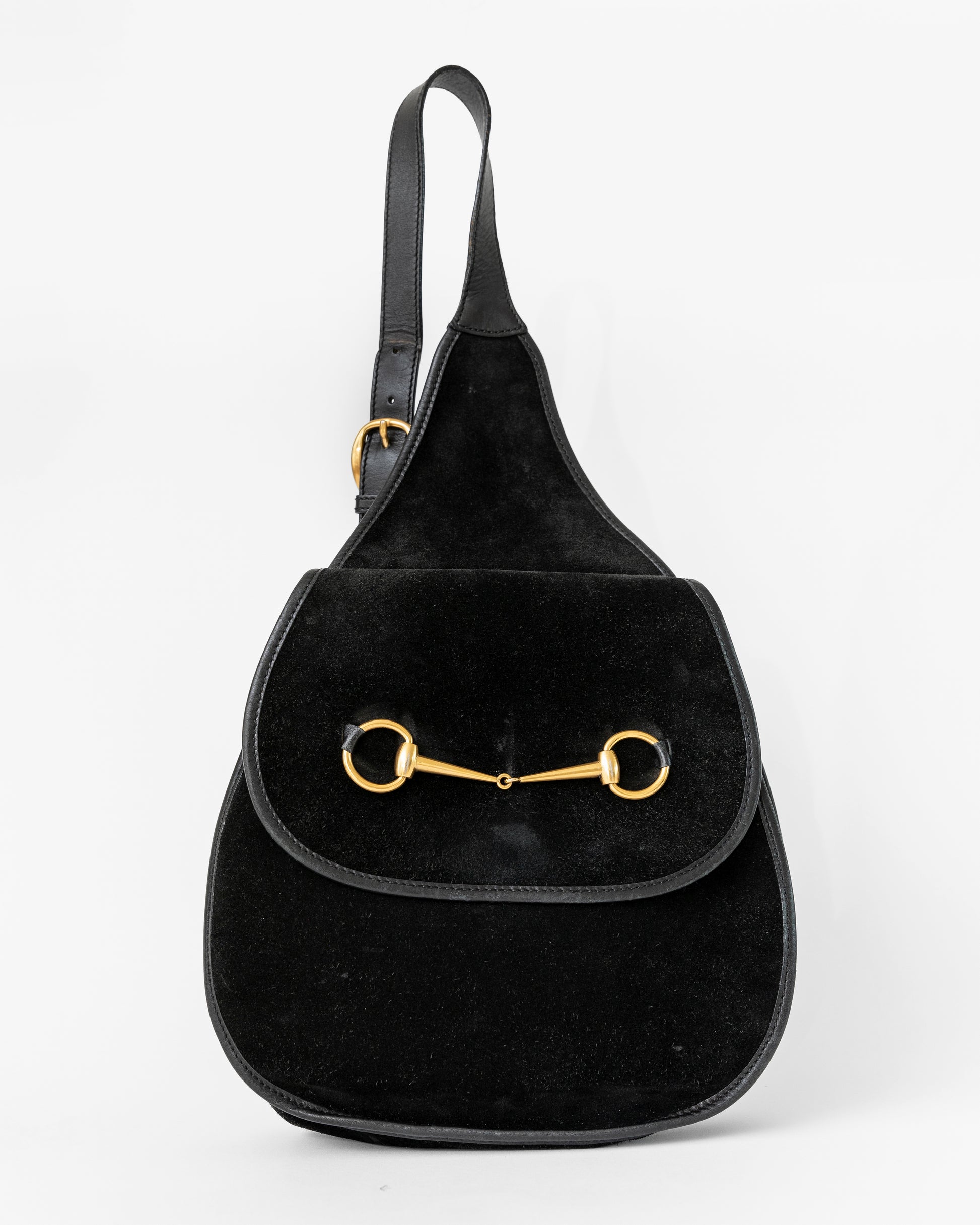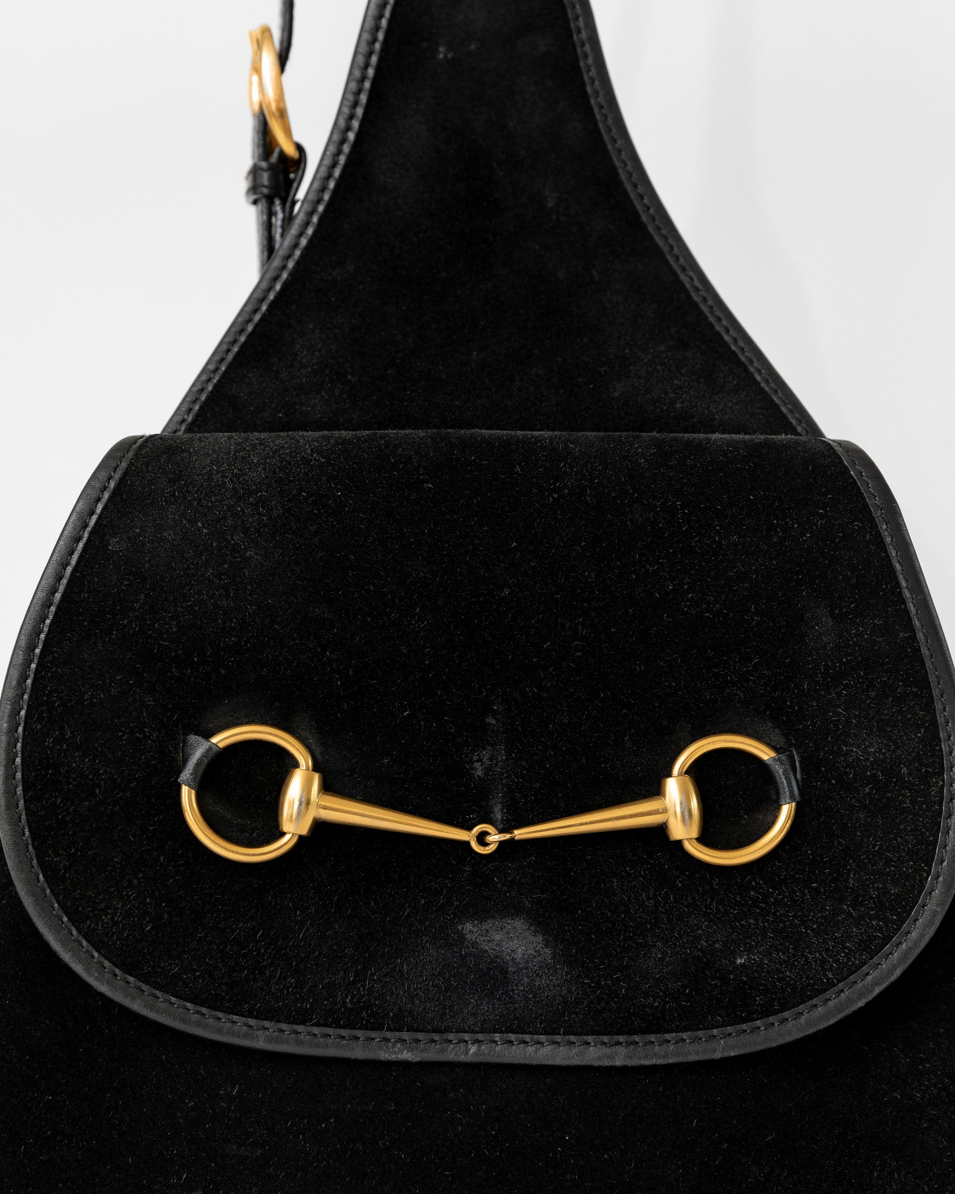 - From the iconic Tom Ford for Gucci era, this extremely RARE bag from 1999 is one of the very few on the resale market. It features black lambskin and suede leather with gold horse bit hardware. Adjustable strap with hook closure which allows you to choose which side you want the bag to rest on.
