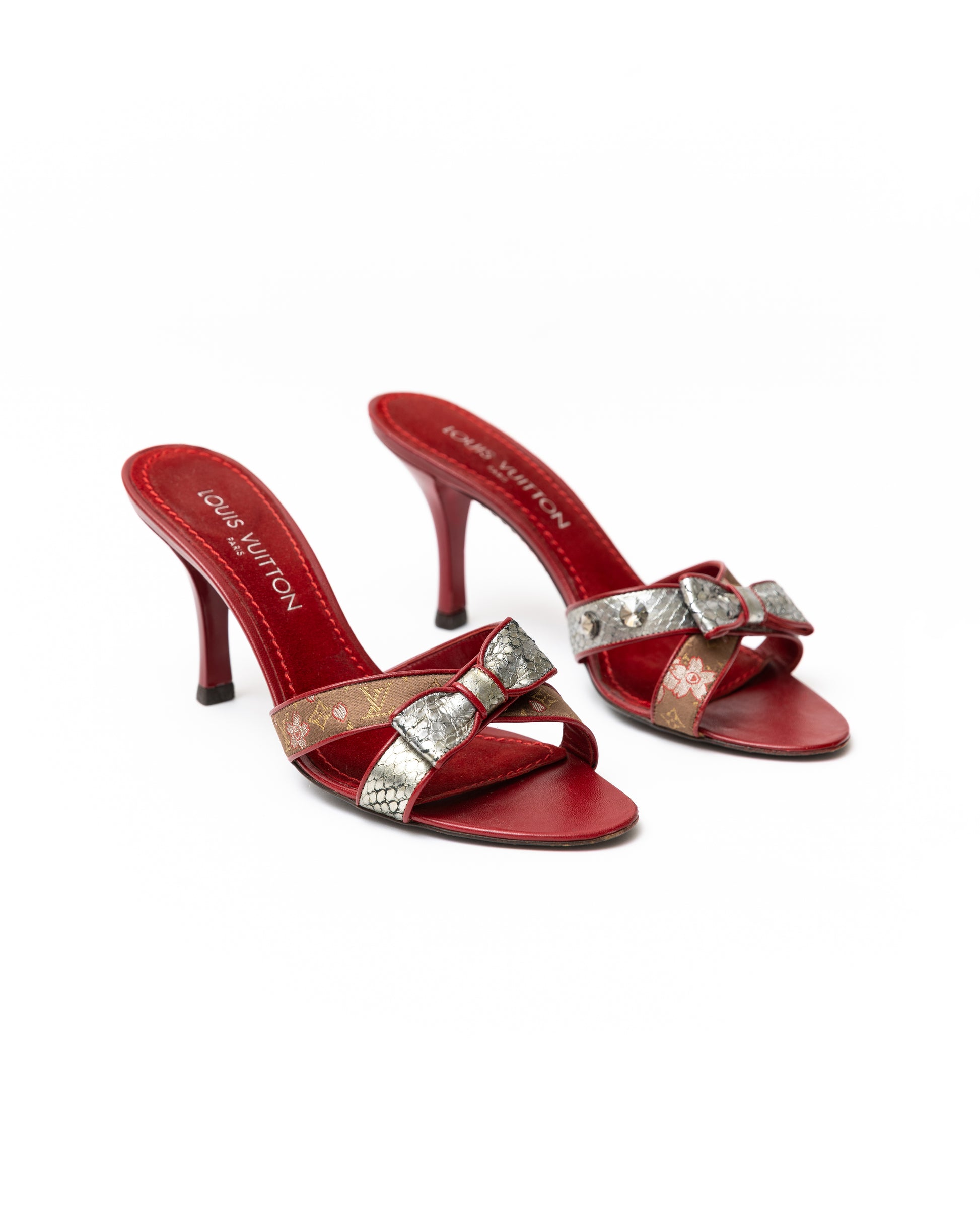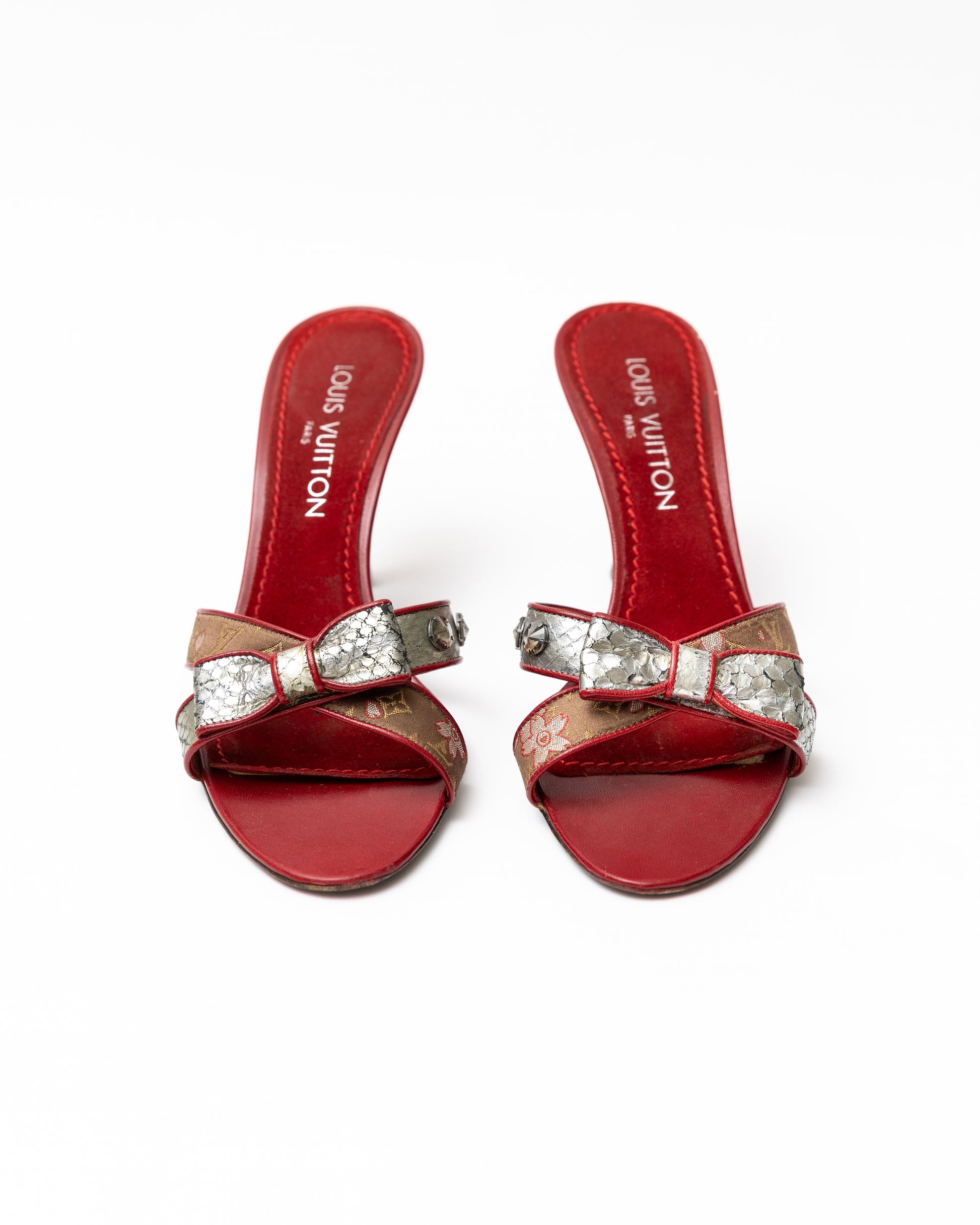 - Featuring the Cherry blossom LV monogram canvas print with red leather trimming and a silver bow accent.