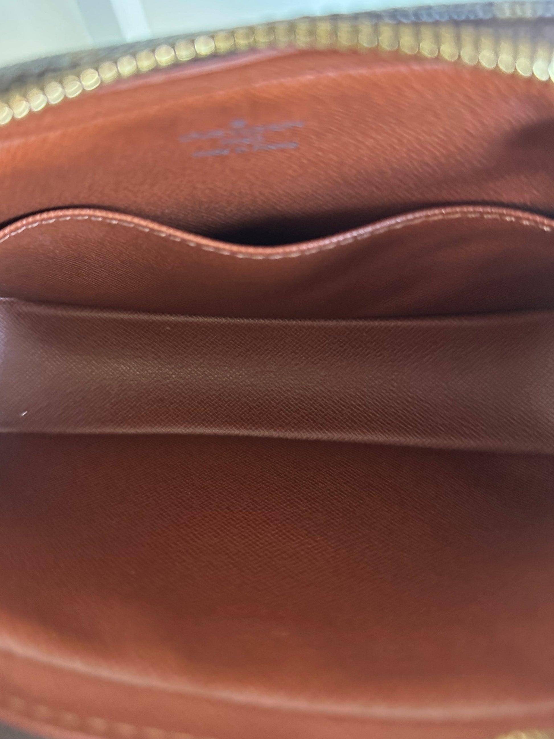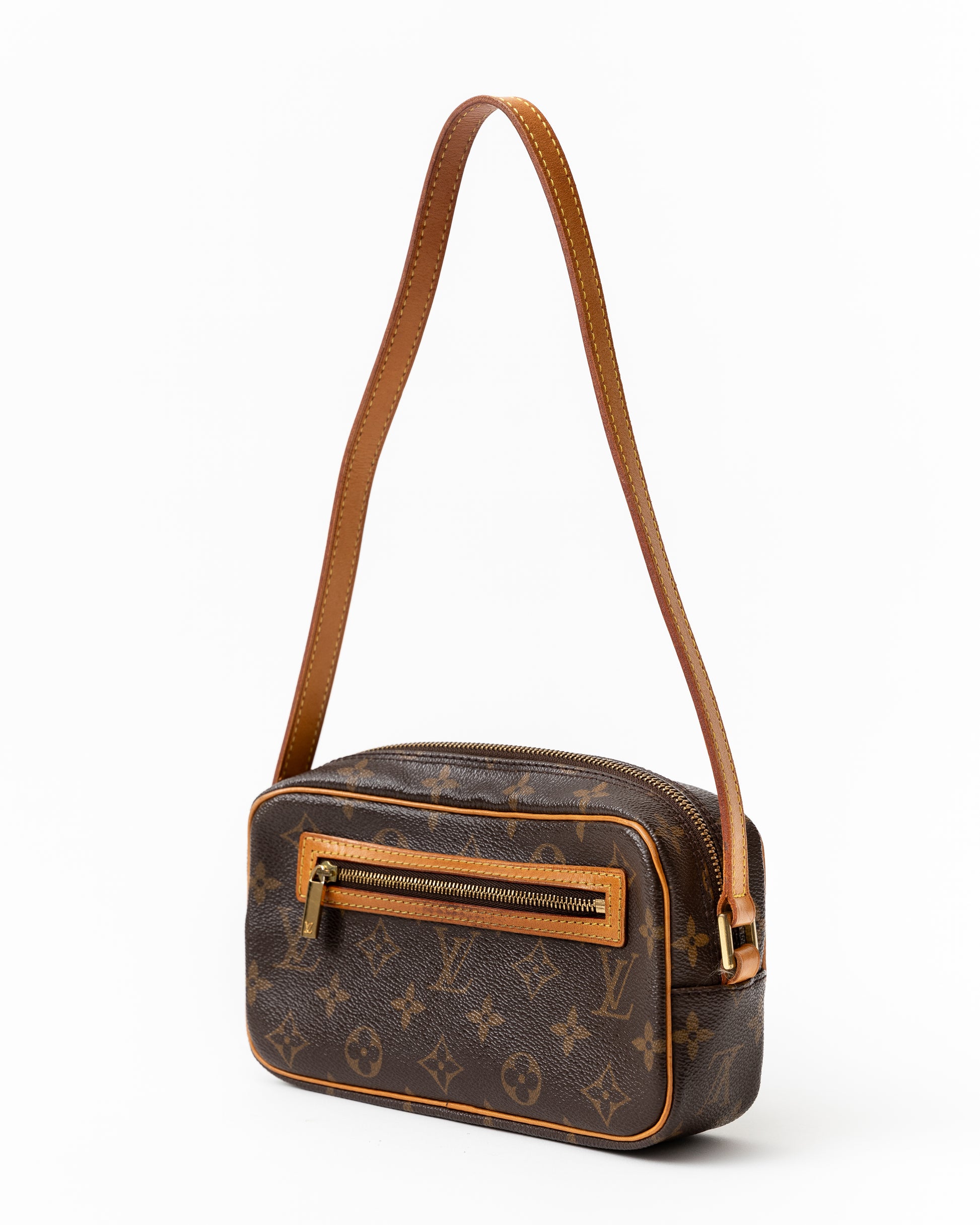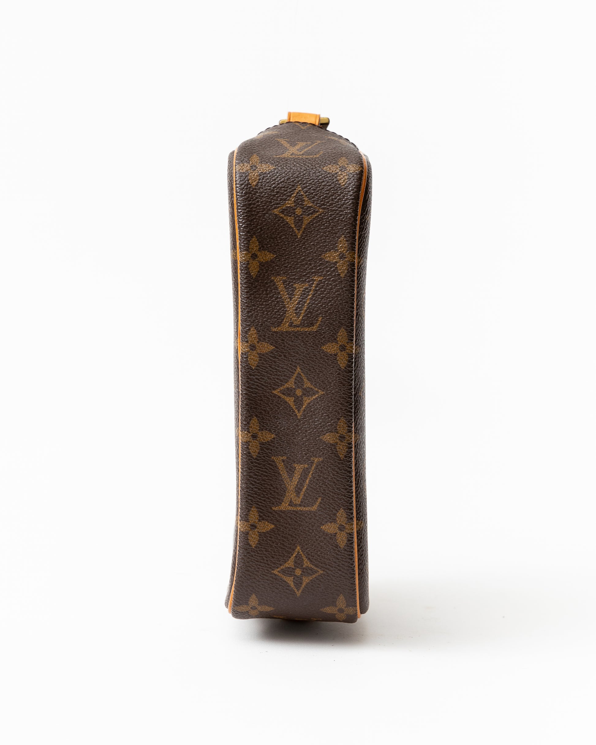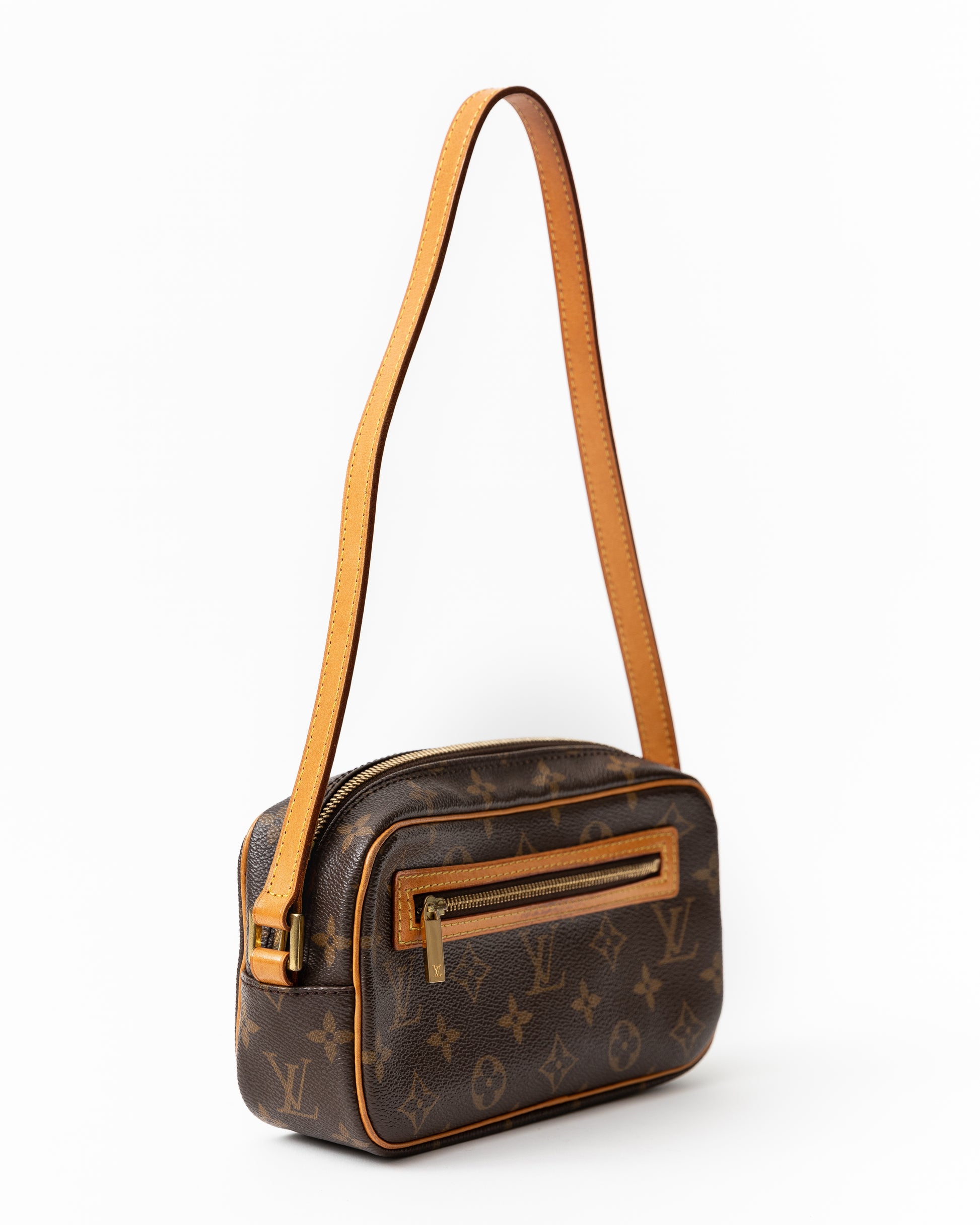 - This rare Louis Vuitton pochette features the classic Louis Vuitton monogram canvas, light honey vachetta shoulder strap, exterior zippered pocket, and a spacious leather interior which fits all the essentials.
