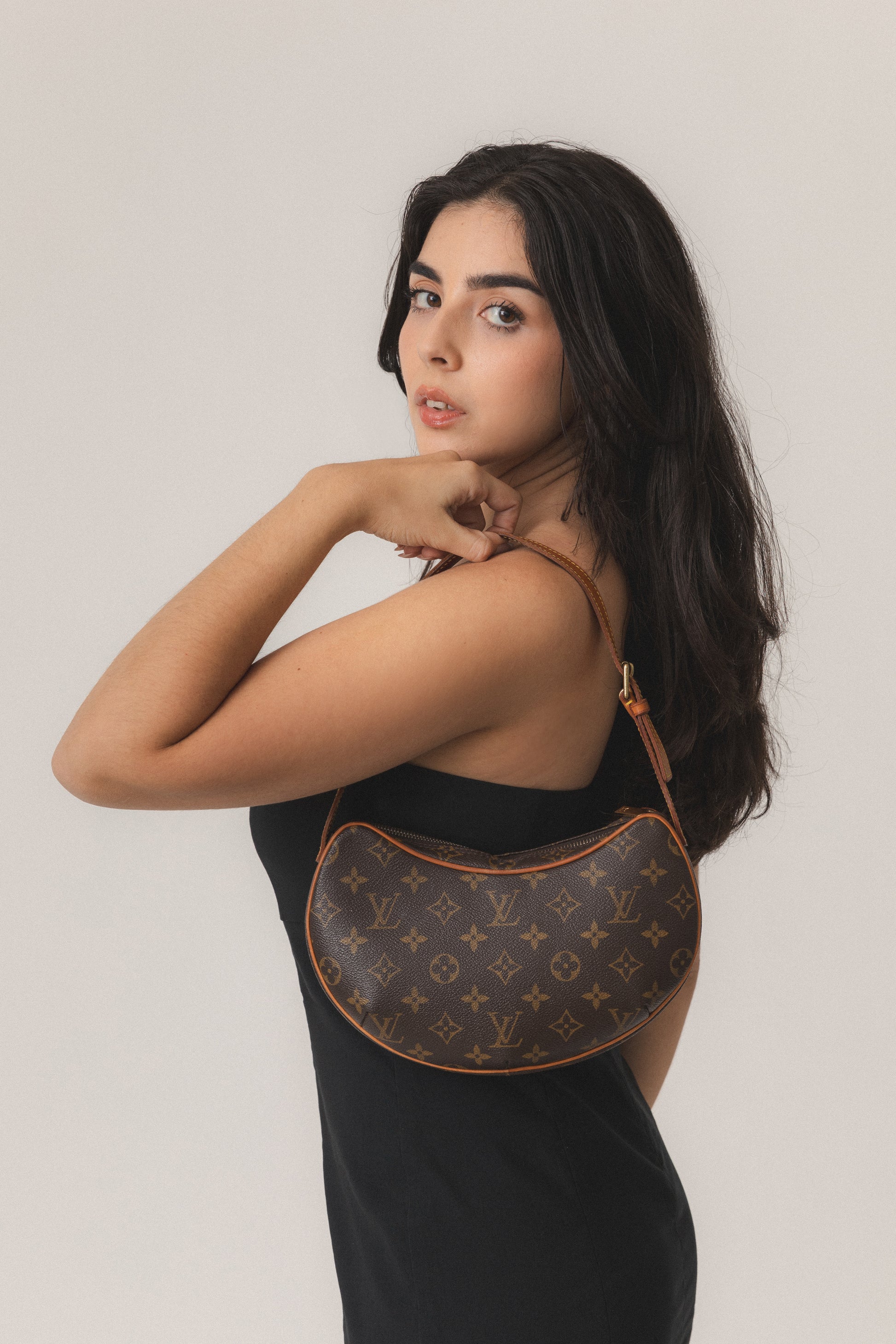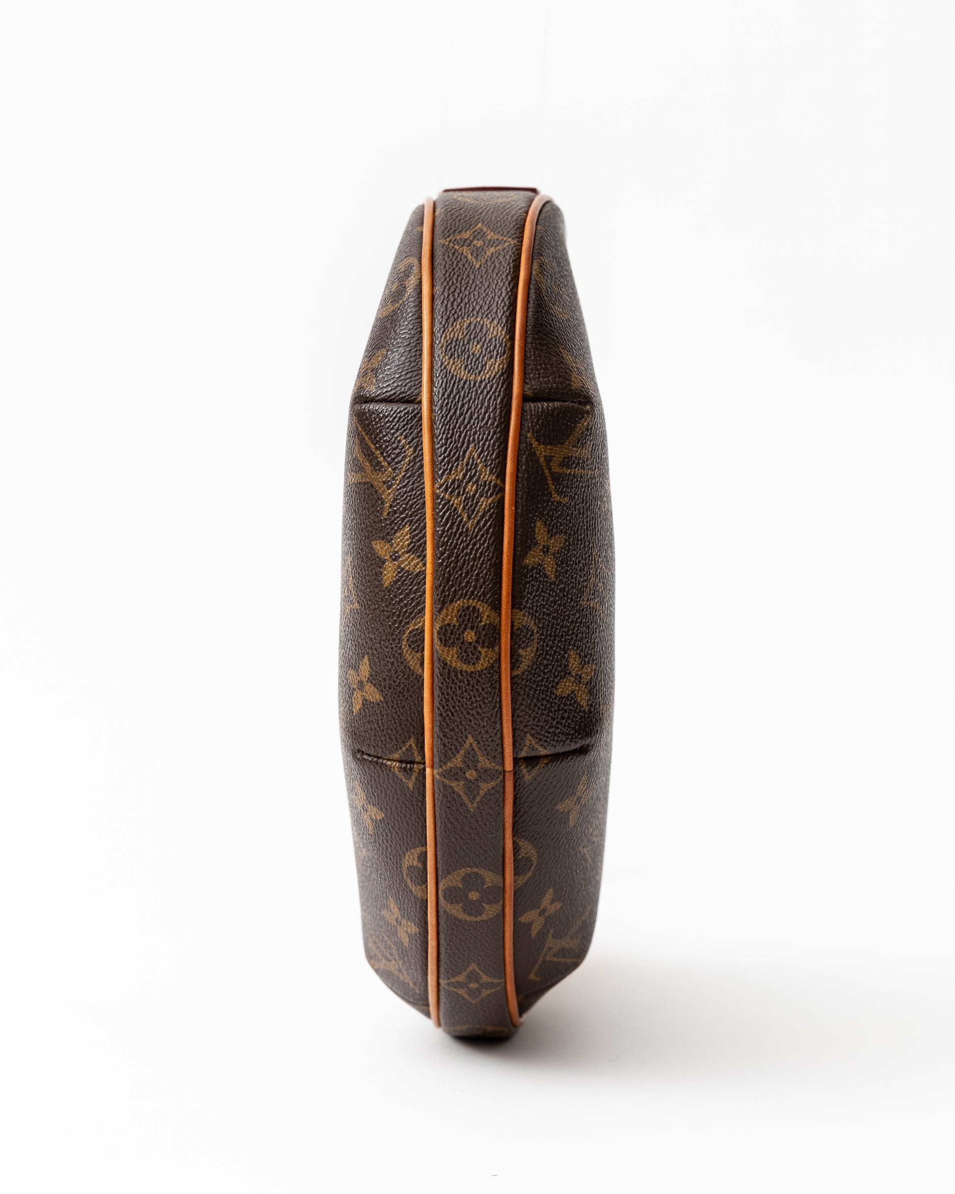 - Features the iconic LV monogram canvas with adjustable honey vachetta strap and spacious red suede interior.