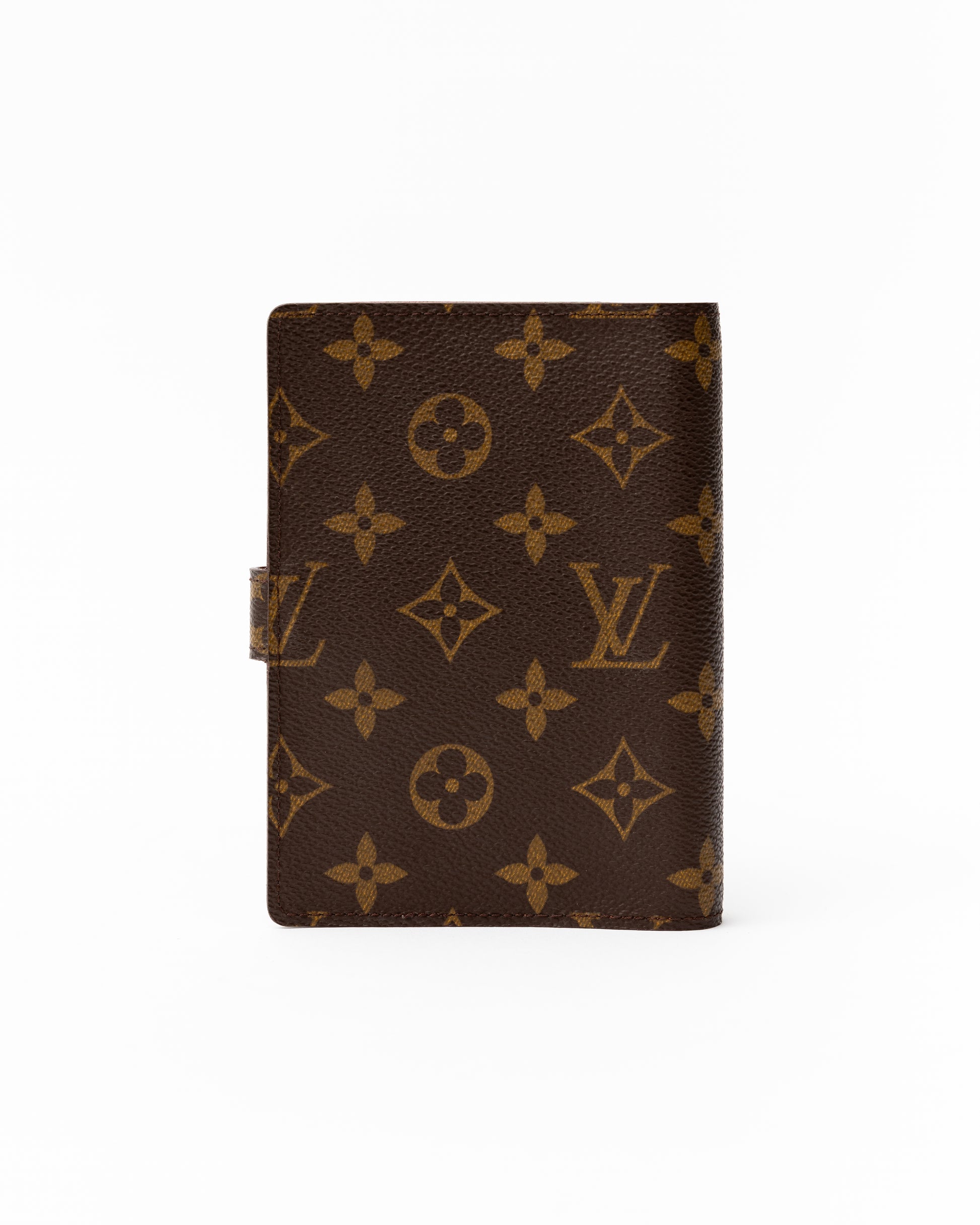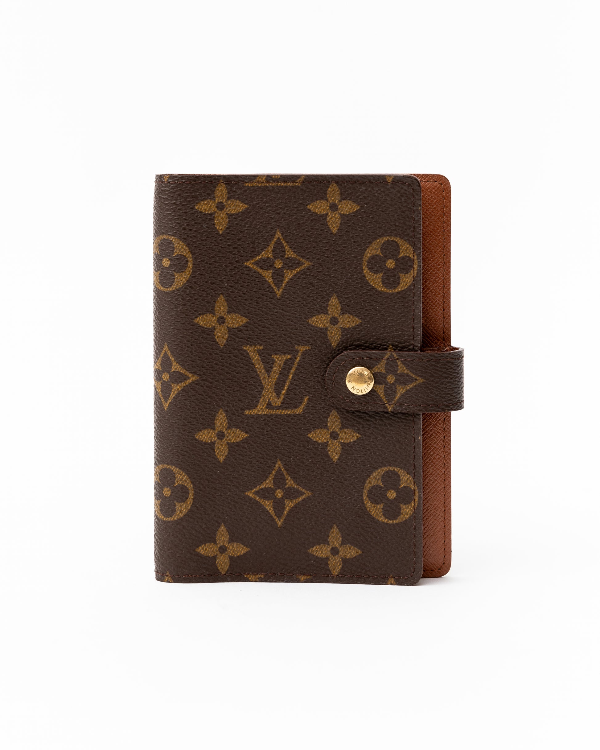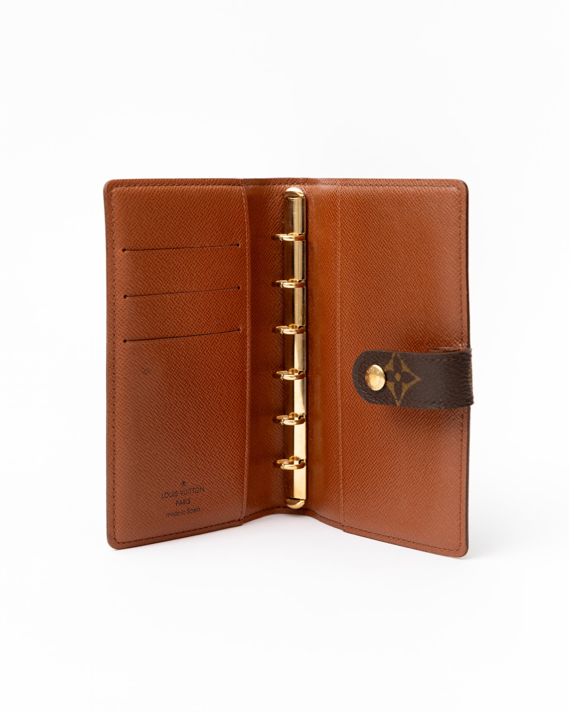 - Has the classic LV monogram canvas, 6 ring binder with clasp closure, 2 large pockets and 3 card slots.