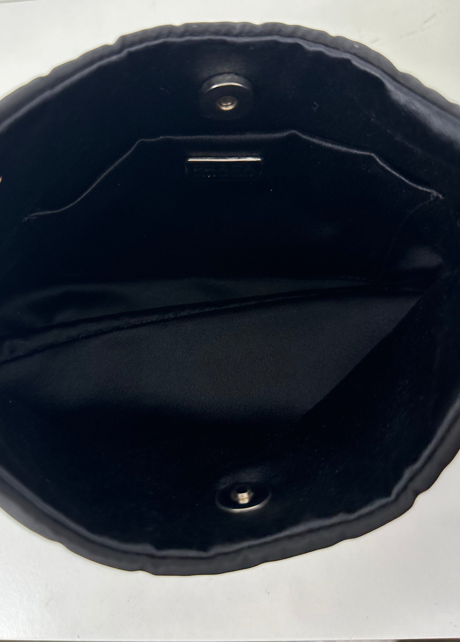 - Features the classic durable nylon exterior with Prada plaque and a satin interior.