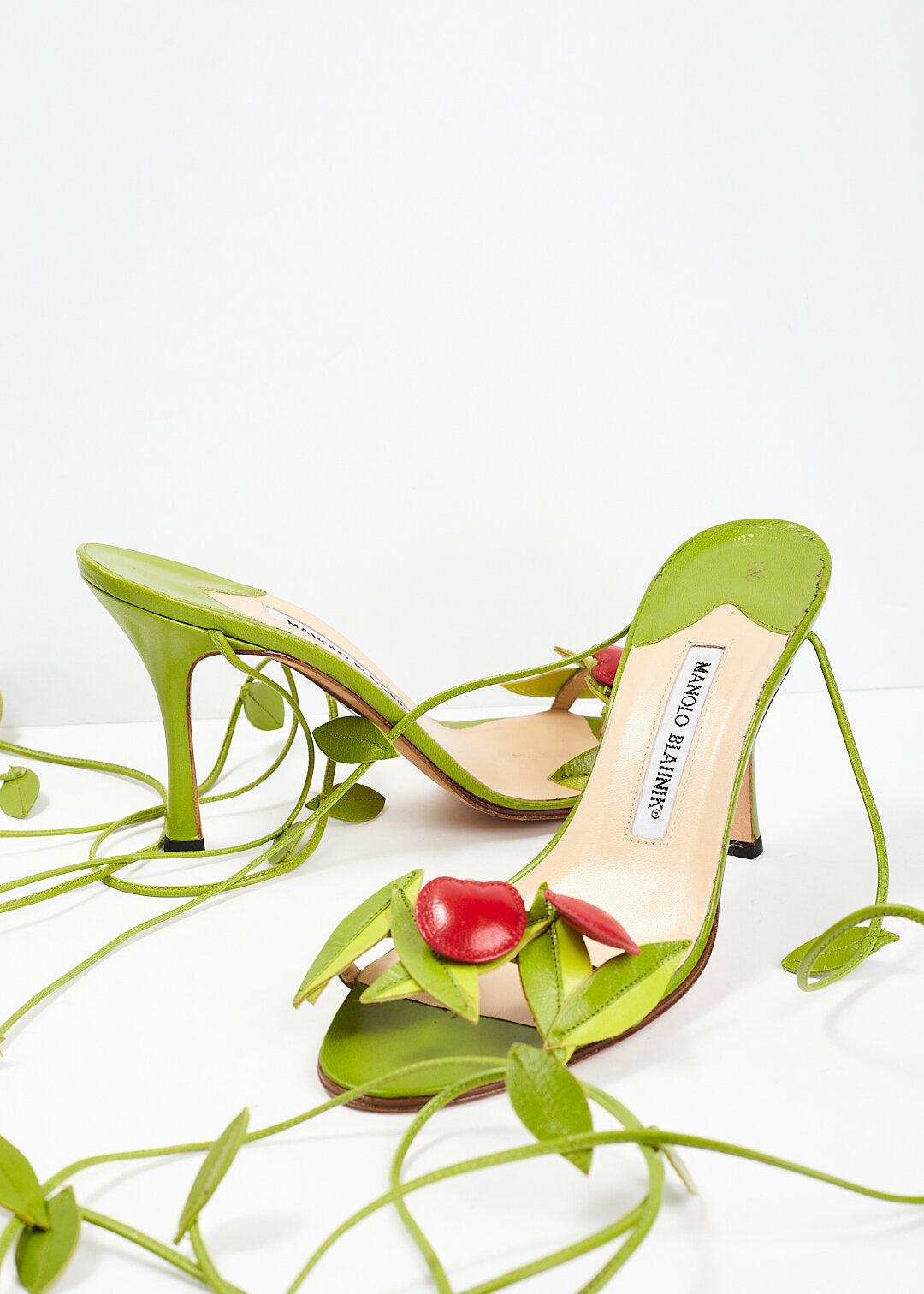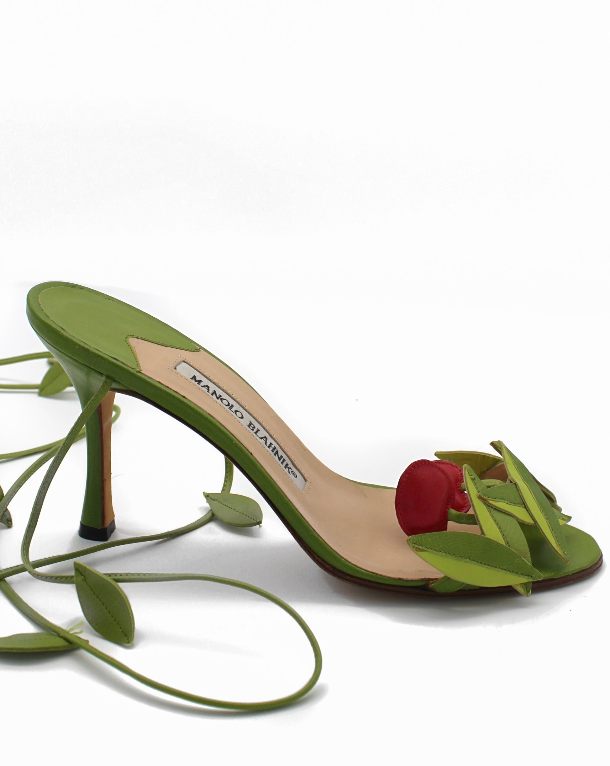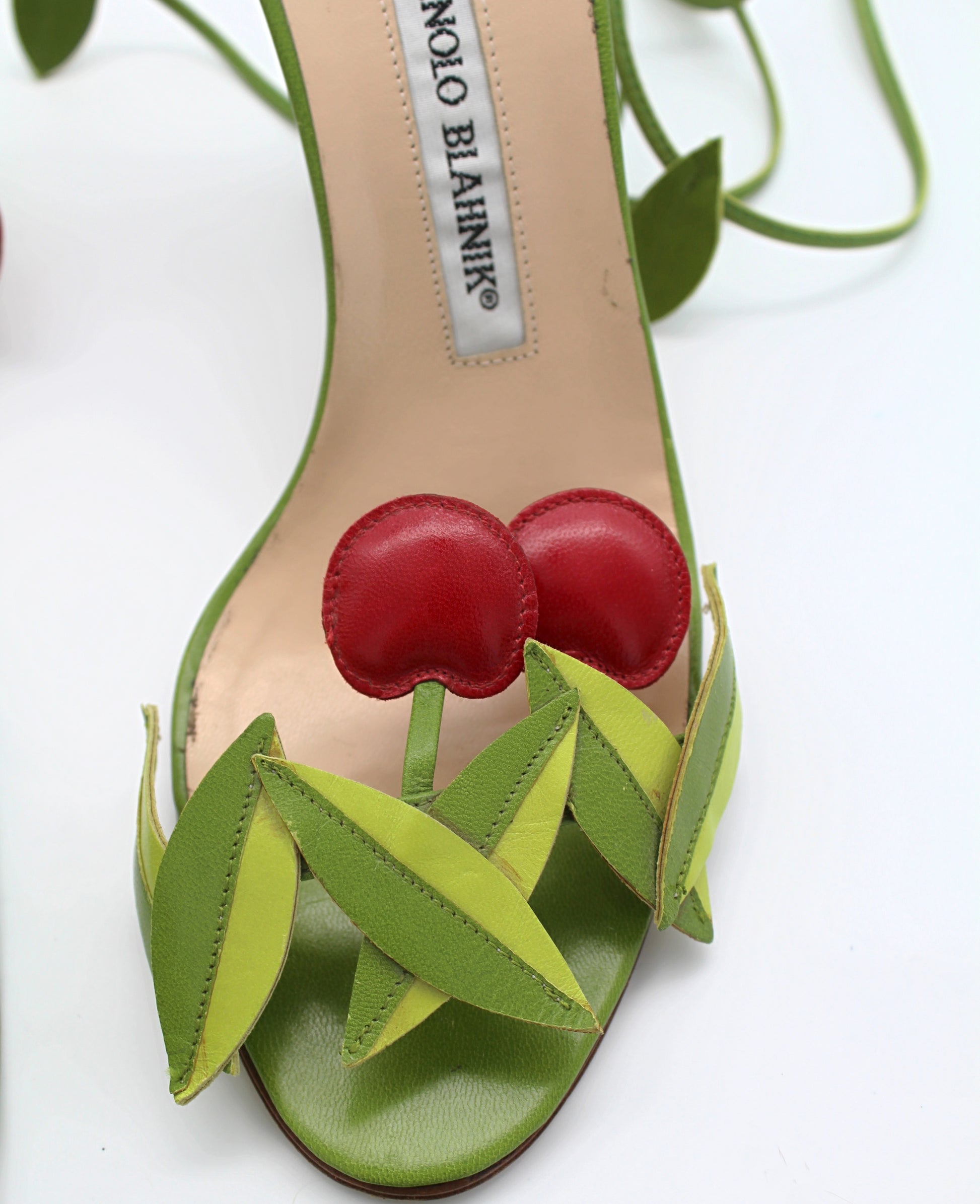 - The extremely RARE cherry vine sandal heels designed by Manolo Blahnik. These cuties are extremely hard to come by - especially in this condition!